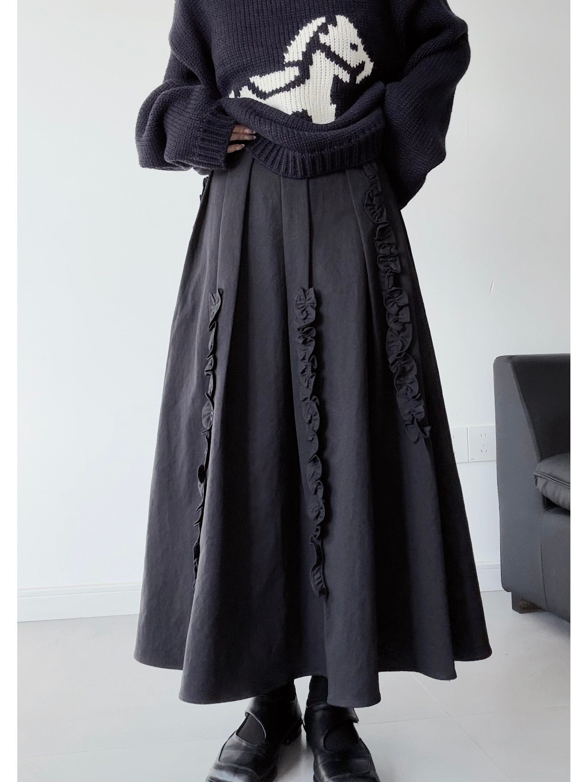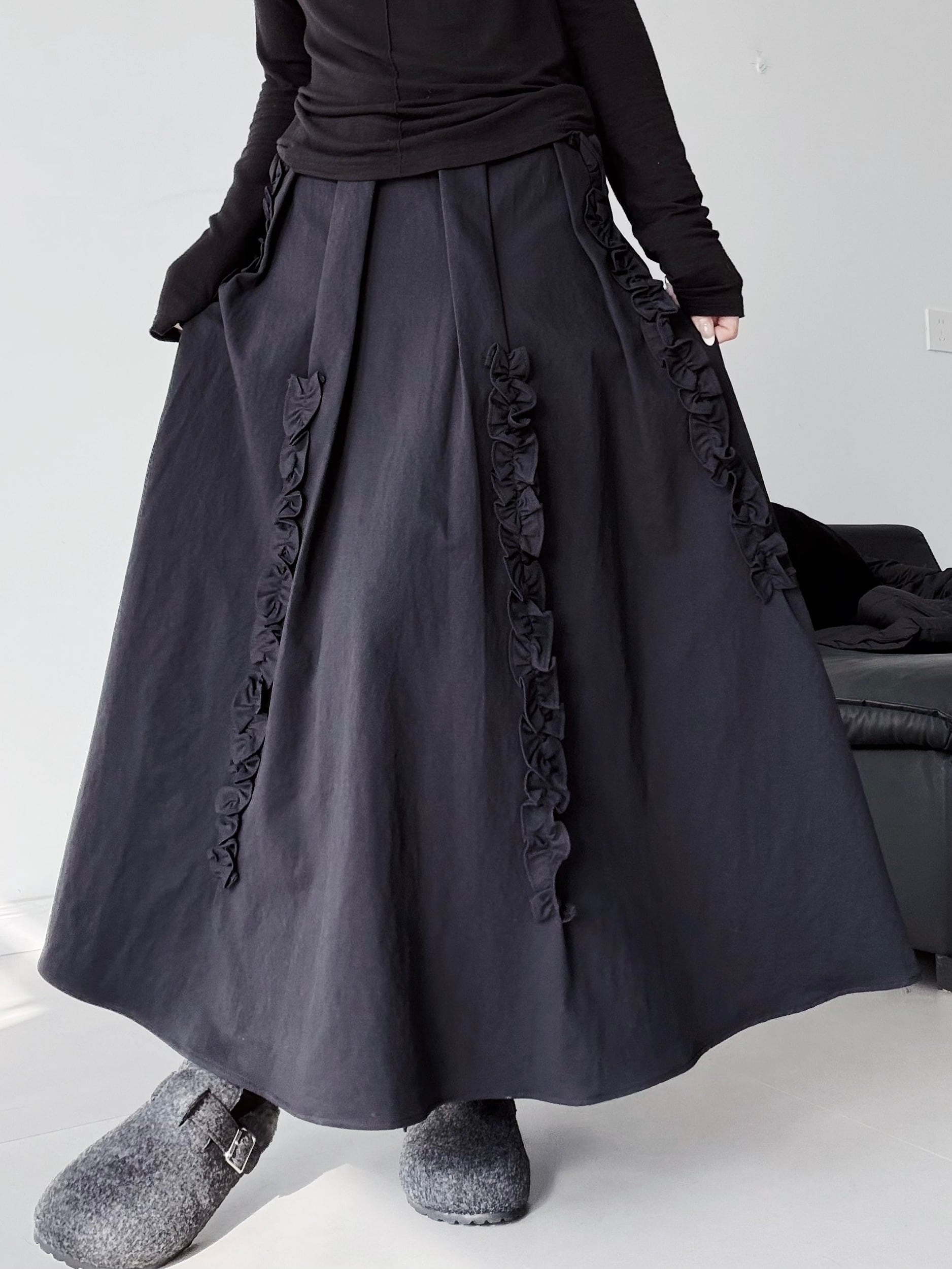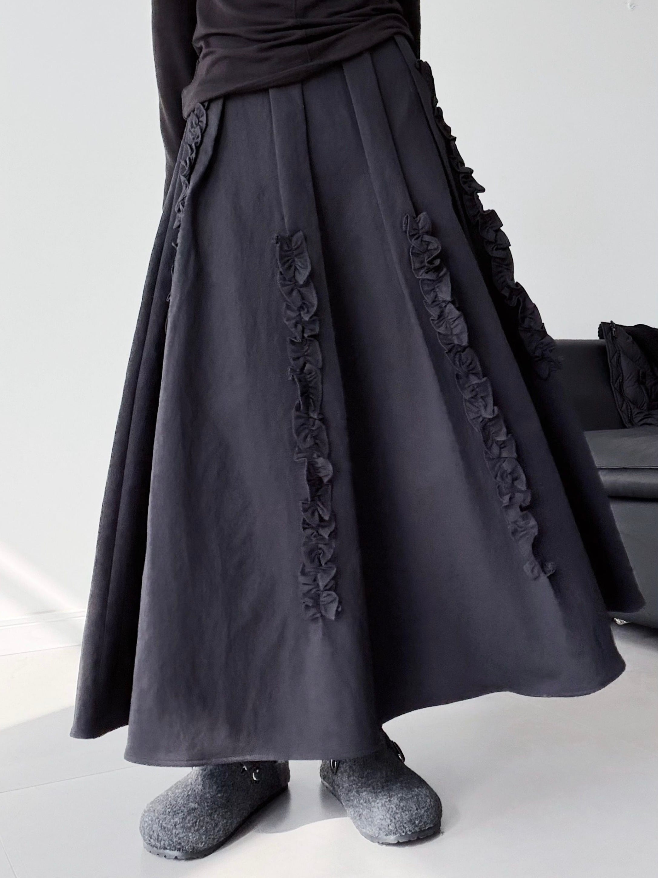 フリルラインデザインセミフレアロングスカート。 歩くたびにドラマが始まる揺れ感スカート。 甘さも大人っぽさも欲張れる今欲しい一本。 - Size - S スカート丈:79cm ウエスト:66cm M スカート丈:80cm ウエスト:70cm L スカート丈:81cm ウエスト:74cm ※1~3cmの誤差がある場合がございます model date 160cm/43kg - Color - ブラック - Material - ポリエステル他 - お届けについて - こちらの商品は海外店舗より直接発送となる為、 ご入金から1~3週間前後で発送致します。 ※商品の状況によっては、3週間以上かかる場合も ございます。 ------------------------------------------------------- - Lilie全商品はこちらから - https://www.lilie.style/ - 人気のアイテムはこちら - https://www.lilie.style/categories/3884141 - ご購入前にこちらをお読みください - https://www.lilie.style/about -------------------------------------------------------