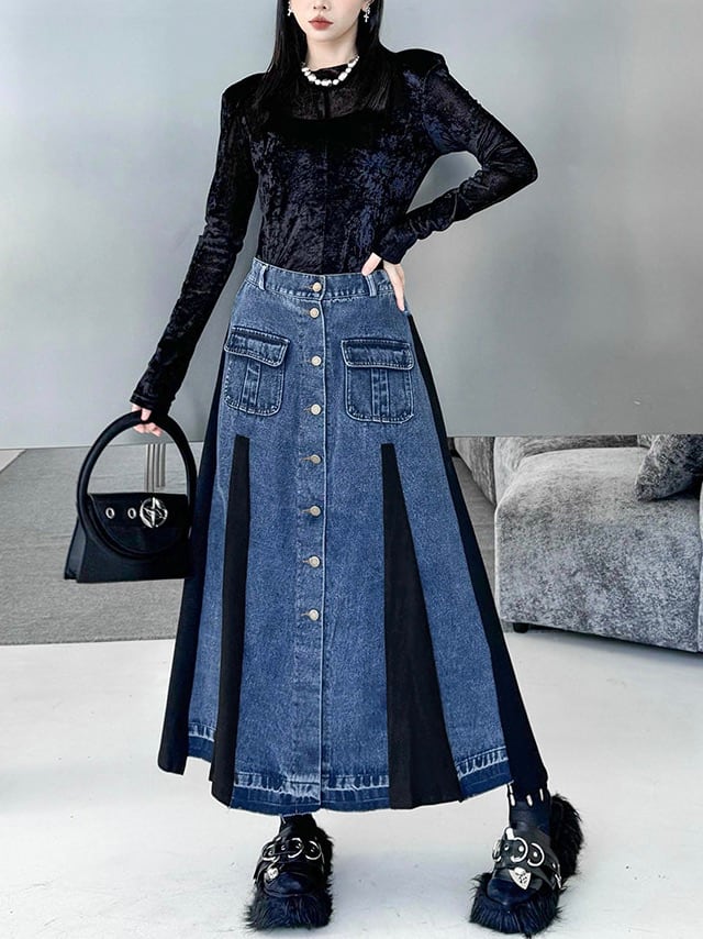 カラーブロックデニムエーラインスカート。 配色デザインでコーデが一瞬で今っぽく更新される。 カジュアルにもクールにも振れて自分らしさが際立つ。 - Size - M スカート丈:87cm ウエスト:70-88cm ヒップ:122cm L スカート丈:88cm ウエスト:74-92cm ヒップ:126cm XL スカート丈:89cm ウエスト:78-96cm ヒップ:130cm ※1~3cmの誤差がある場合がございます model date 169cm/53kg - Color - ブラック - Material - デニム他 - お届けについて - こちらの商品は海外店舗より直接発送となる為、 ご入金から1~3週間前後で発送致します。 ※商品の状況によっては、3週間以上かかる場合も ございます。 ------------------------------------------------------- - Lilie全商品はこちらから - https://www.lilie.style/ - 人気のアイテムはこちら - https://www.lilie.style/categories/3884141 - ご購入前にこちらをお読みください - https://www.lilie.style/about -------------------------------------------------------