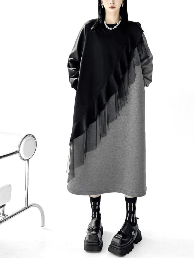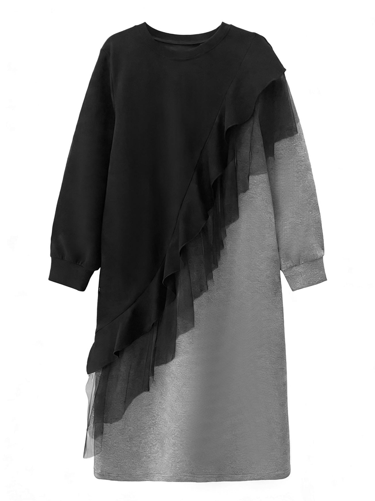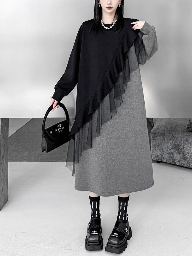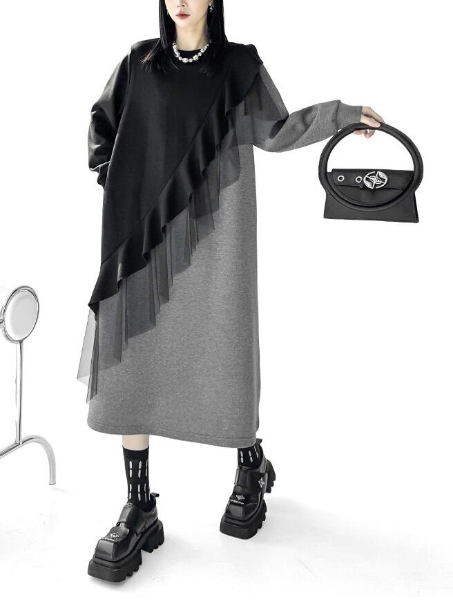 ツートーンラッフルスウィッチングカジュアルワンピース。