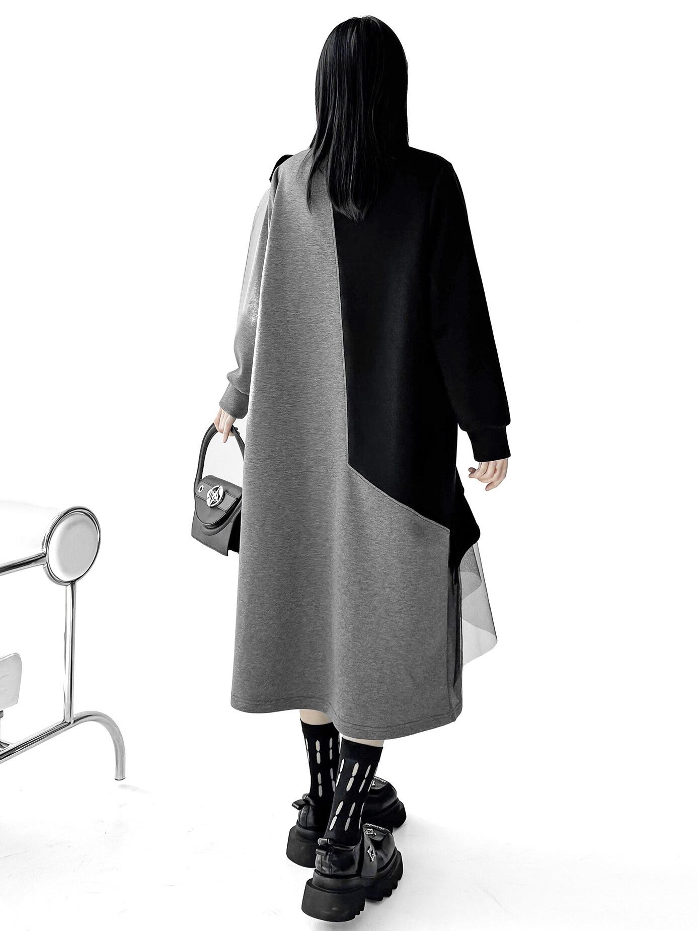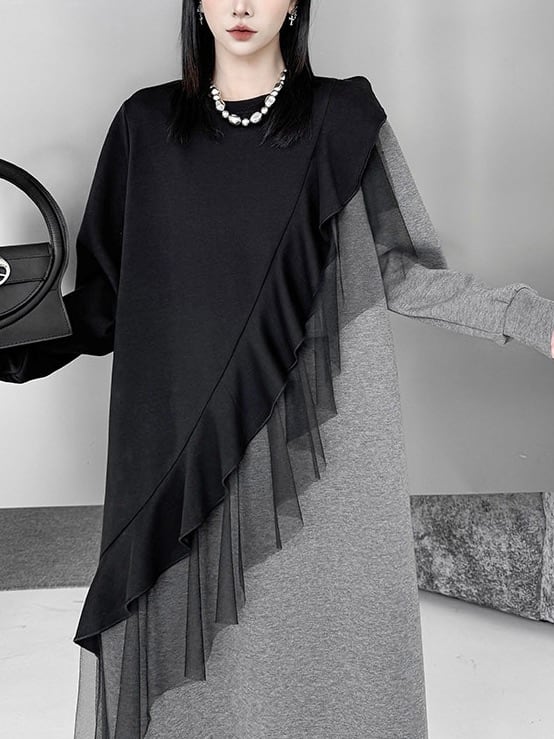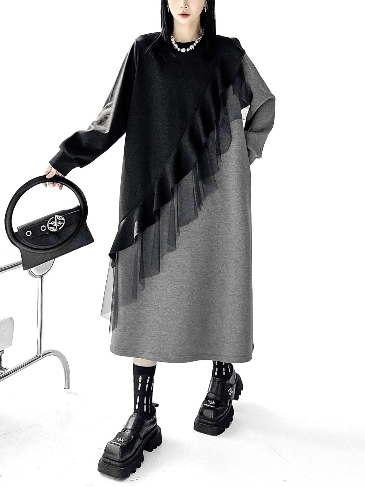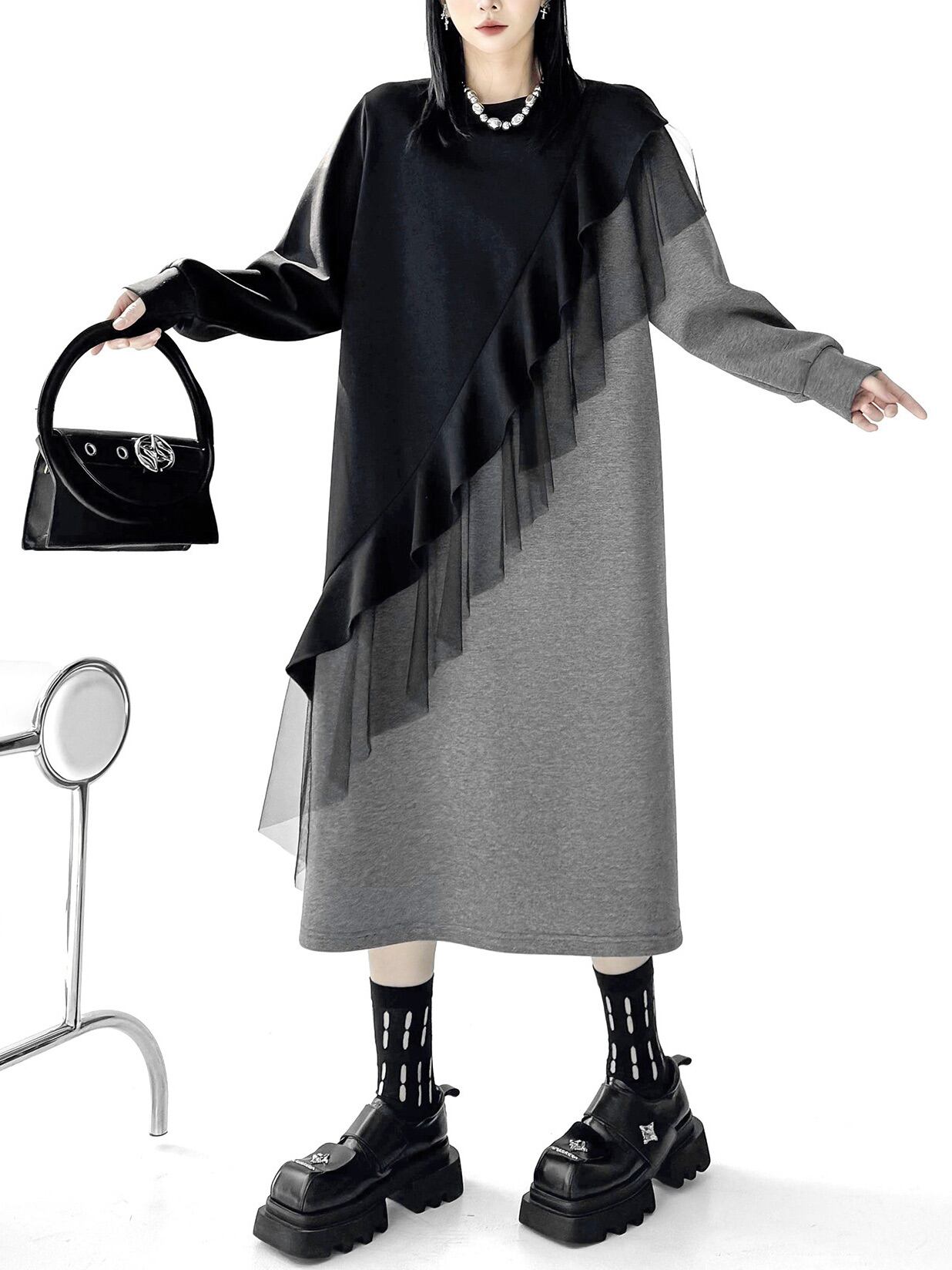 ツートーンラッフルスウィッチングカジュアルワンピース。
