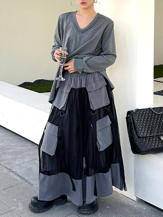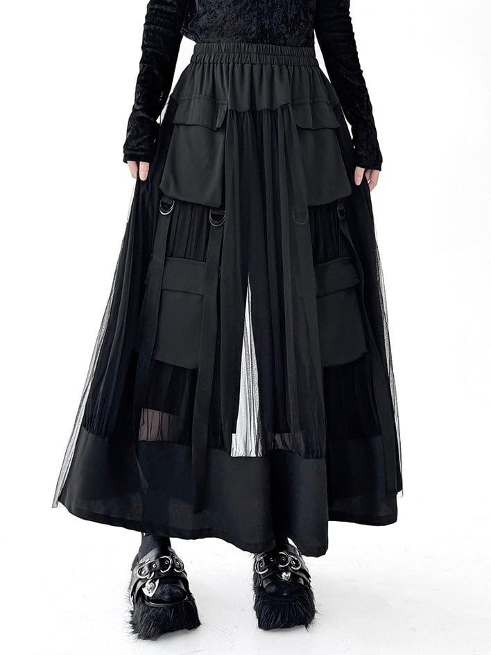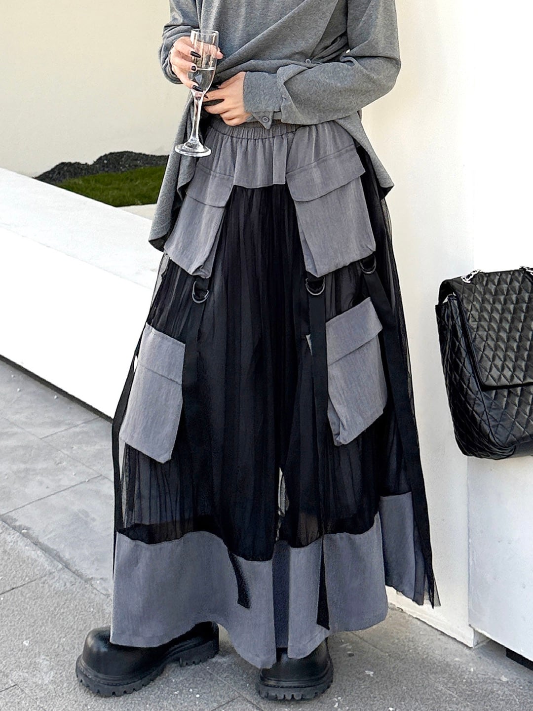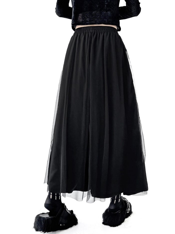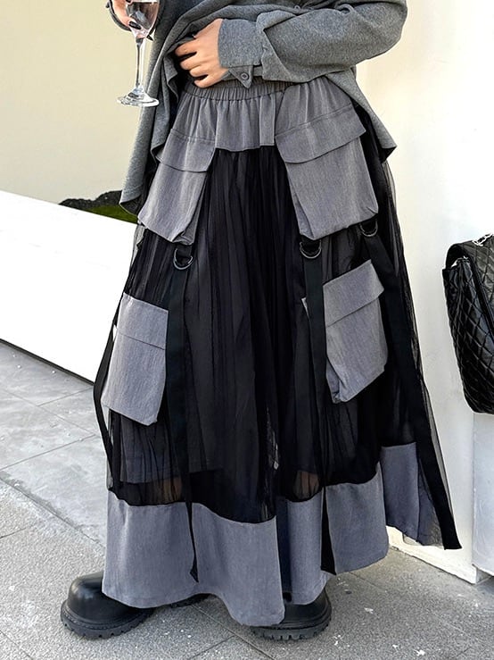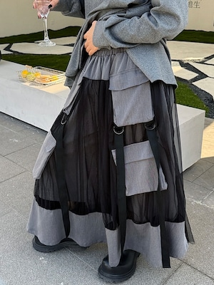 レイヤードメッシュパッチワークスカートアンドパンツ。