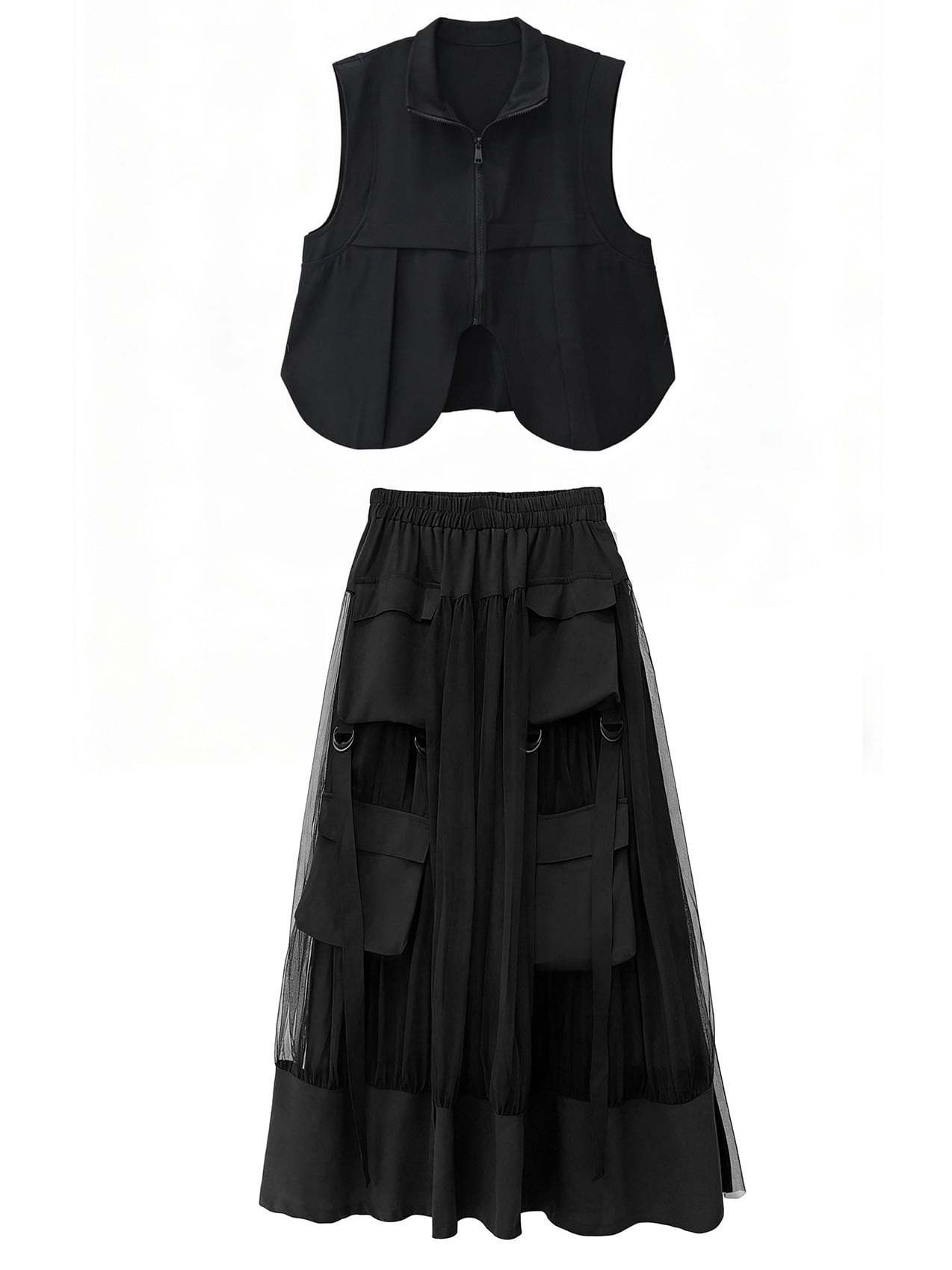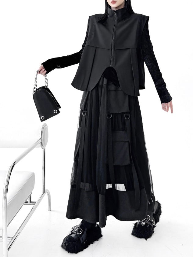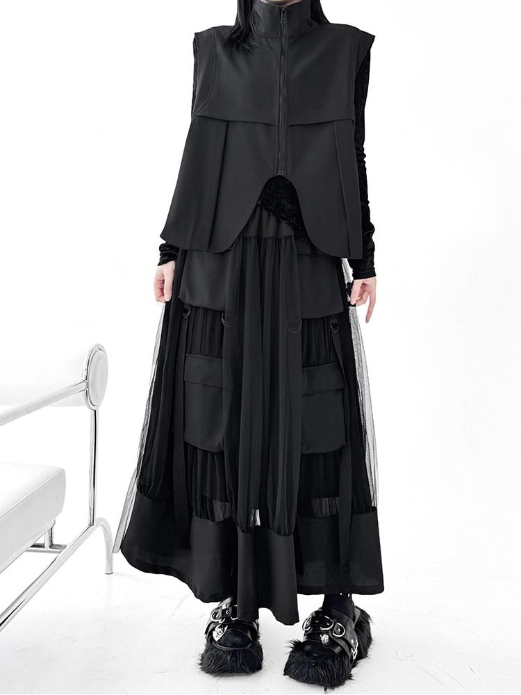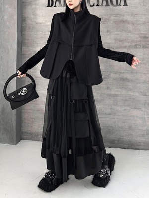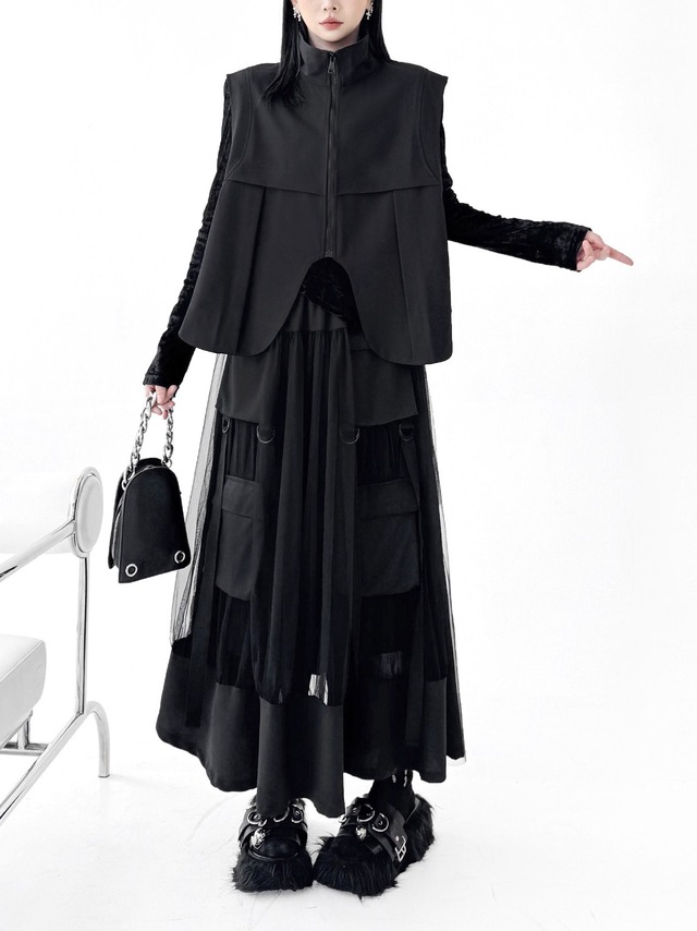 レイヤードメッシュパッチワークスカートアンドパンツ。