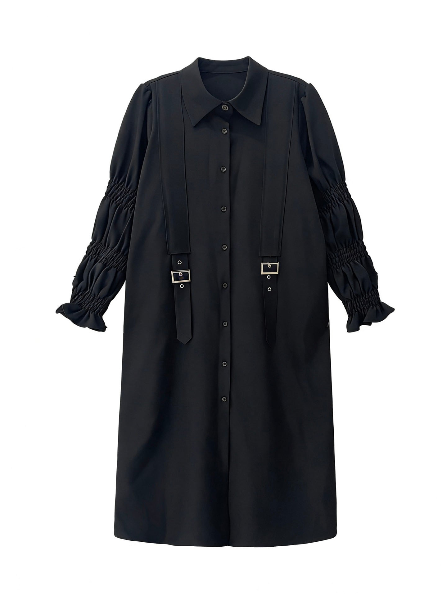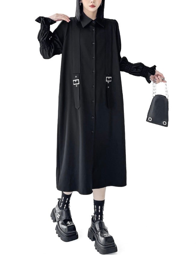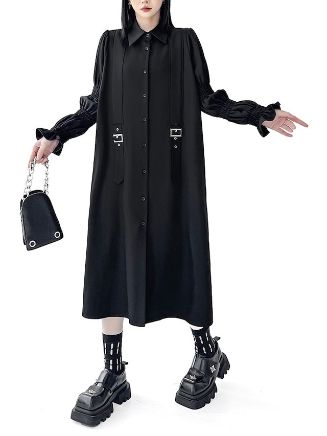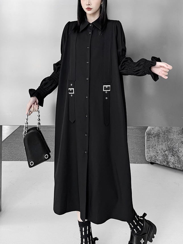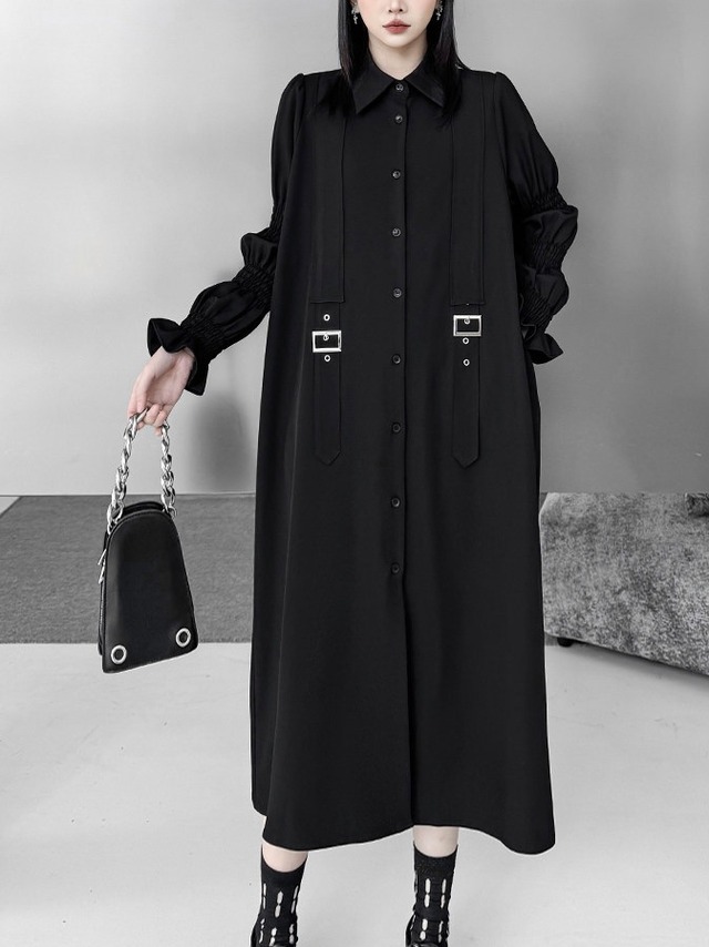 ニッチデザインダークカラーシャツワンピース。 視線を引き寄せる奥行きのあるダークトーン。 着るだけでムードが決まる都会派スタイル。 - Size - M 肩幅:37cm 胸囲:118cm 着丈:118cm 袖丈:59cm ウエスト:120cm L 肩幅:38cm 胸囲:122cm 着丈:119cm 袖丈:60cm ウエスト:124cm XL 肩幅:39cm 胸囲:126cm 着丈:120cm 袖丈:61cm ウエスト:128cm ※1~3cmの誤差がある場合がございます model date 169cm/53kg - Color - ブラック - お届けについて - こちらの商品は海外店舗より直接発送となる為、 ご入金から1~3週間前後で発送致します。 ※商品の状況によっては、3週間以上かかる場合も ございます。 ------------------------------------------------------- - Lilie全商品はこちらから - https://www.lilie.style/ - 人気のアイテムはこちら - https://www.lilie.style/categories/3884141 - ご購入前にこちらをお読みください - https://www.lilie.style/about -------------------------------------------------------