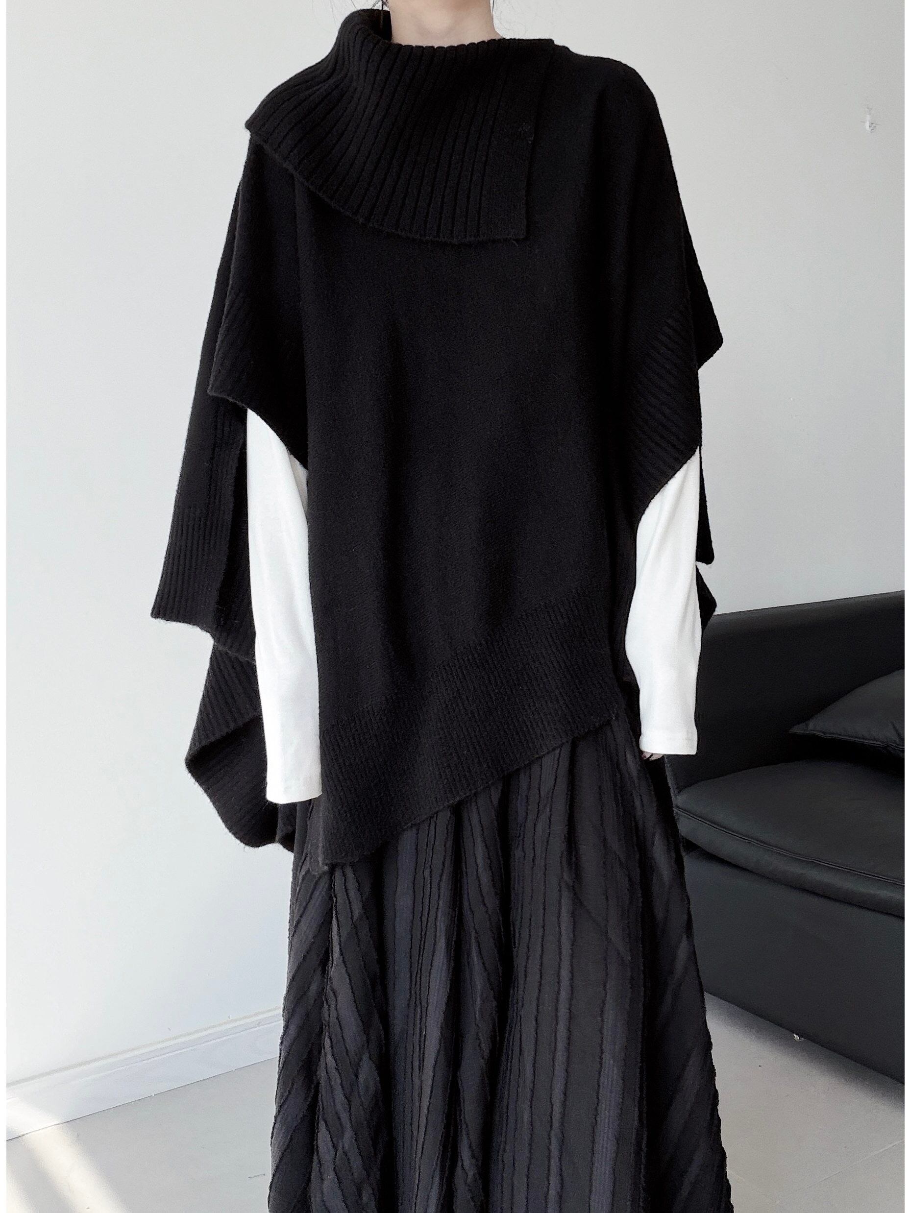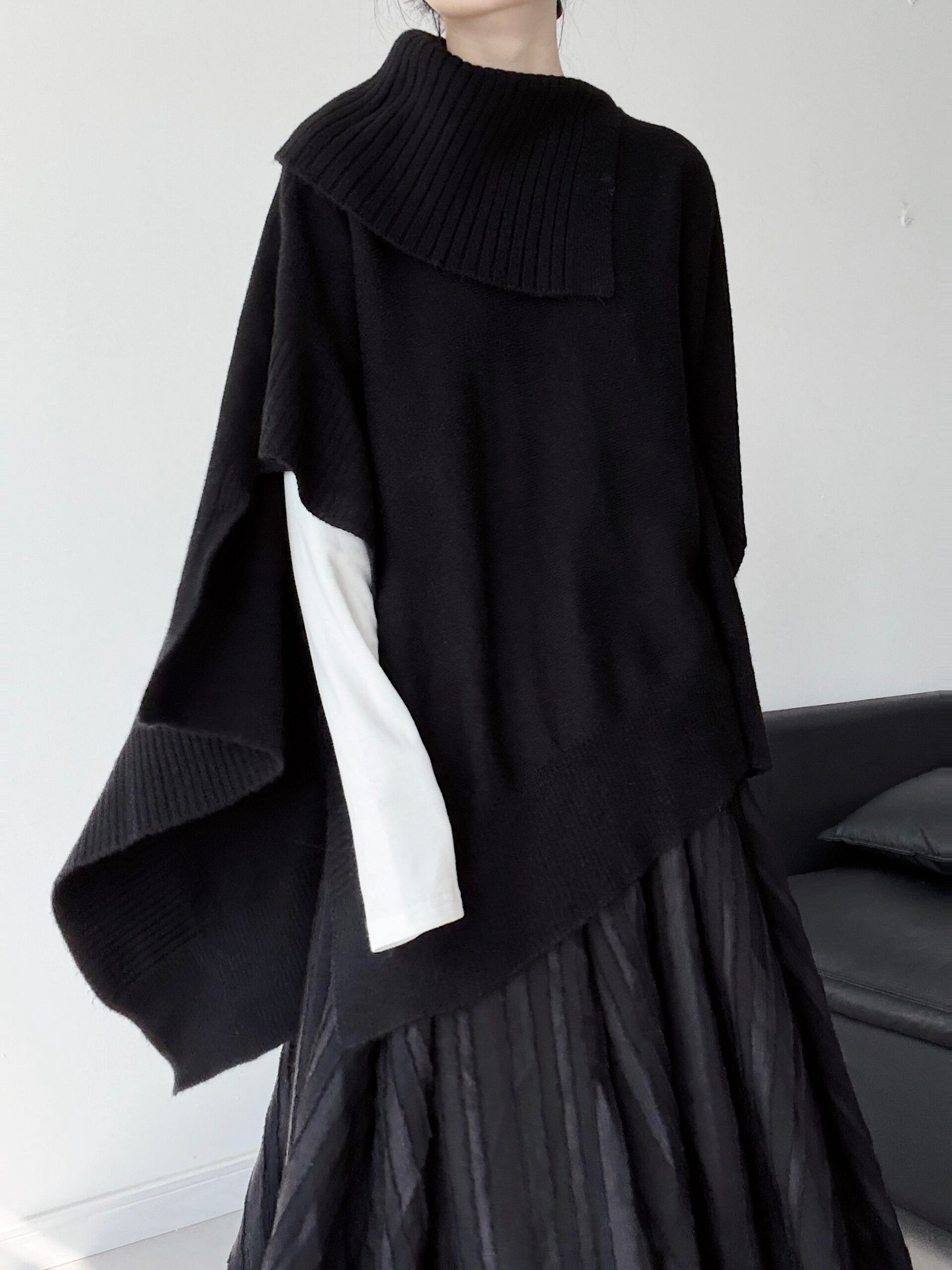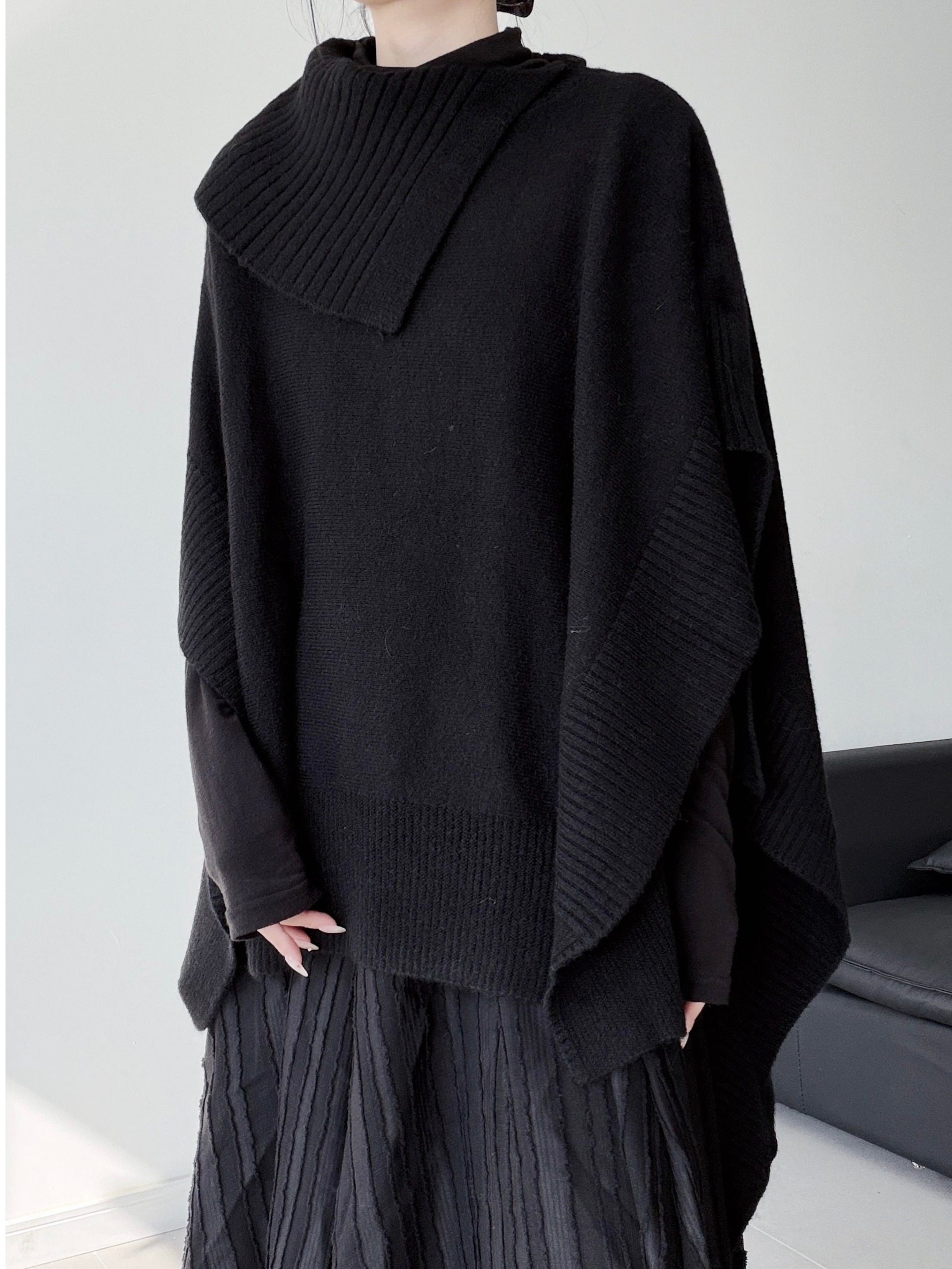 Irregular cape loose knit [T2752]