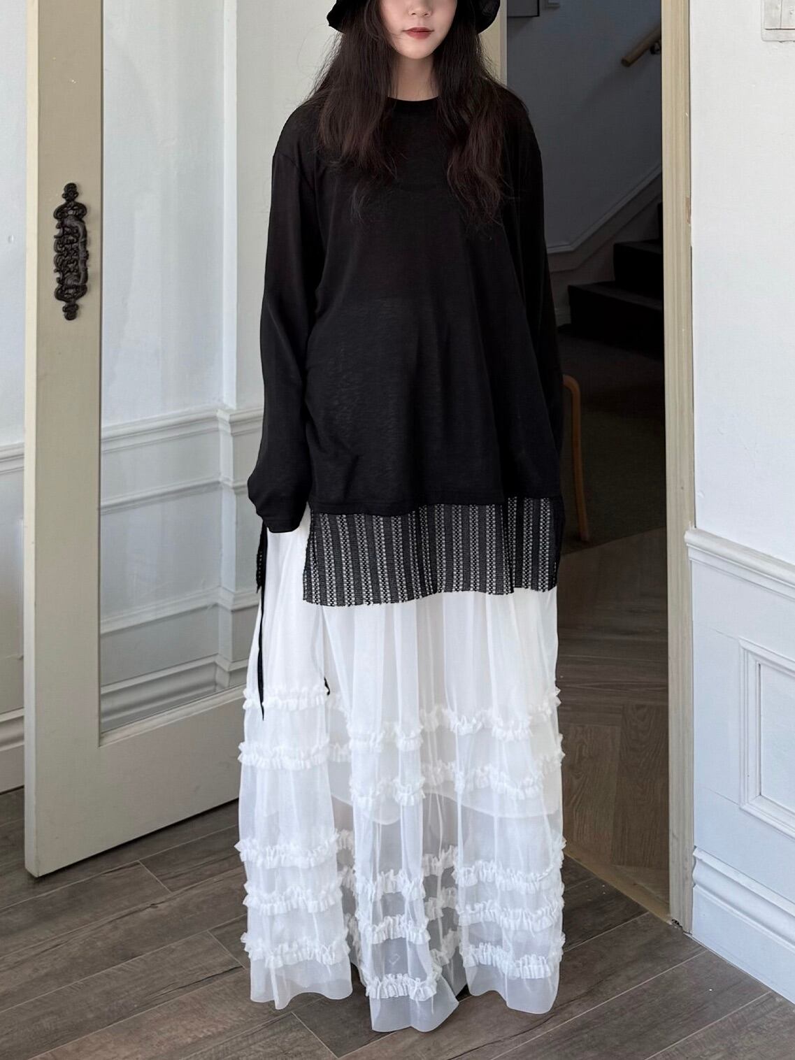 透け感ある素材で一枚で映える旬なアイテム。