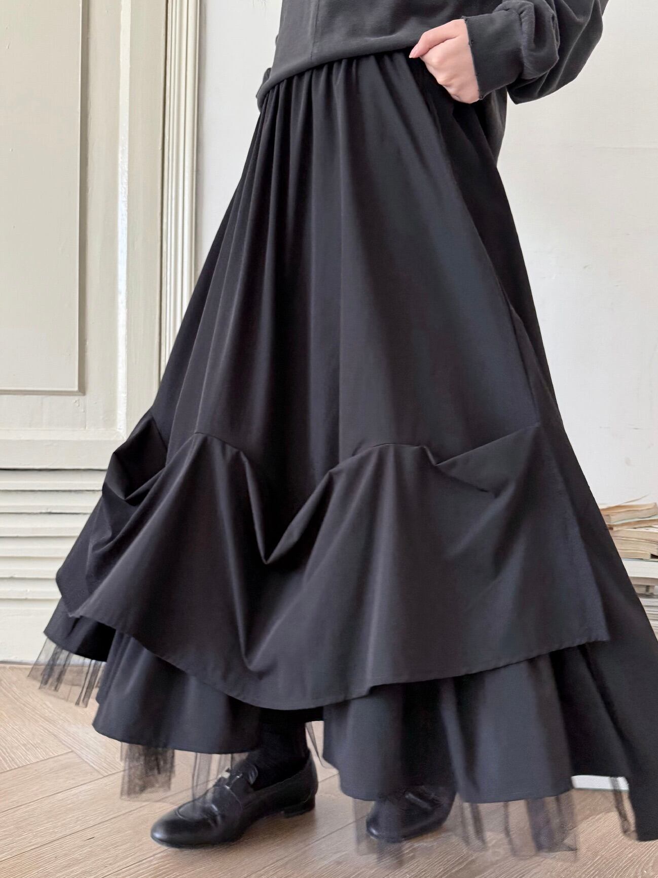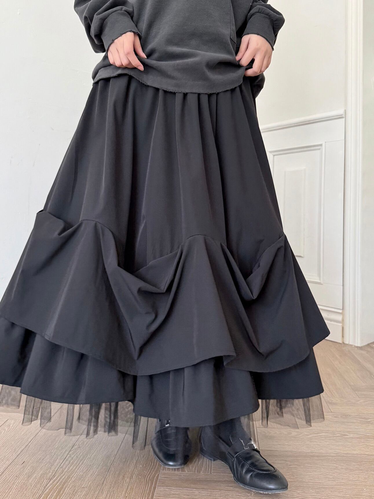 チュールレイヤードAラインスカート。