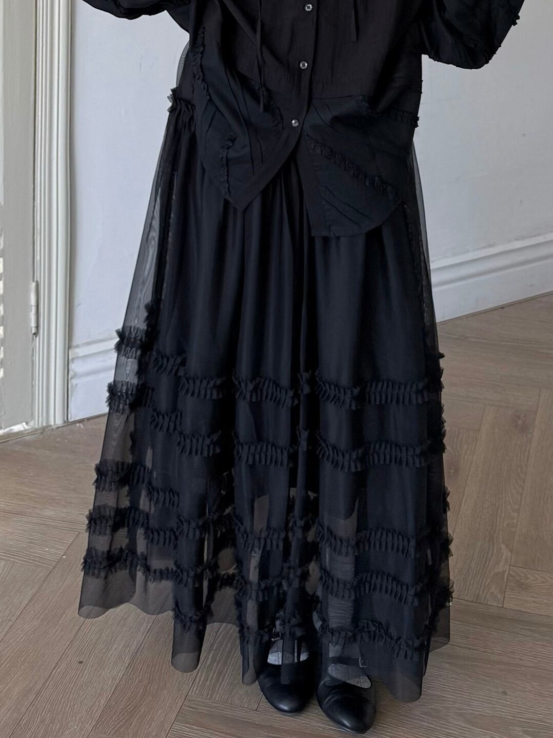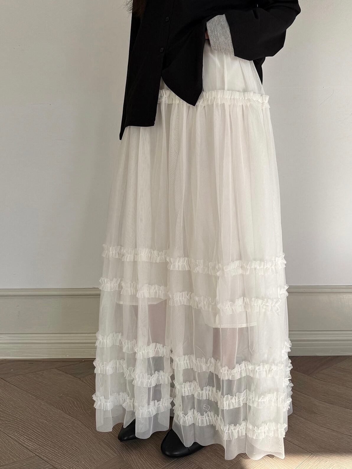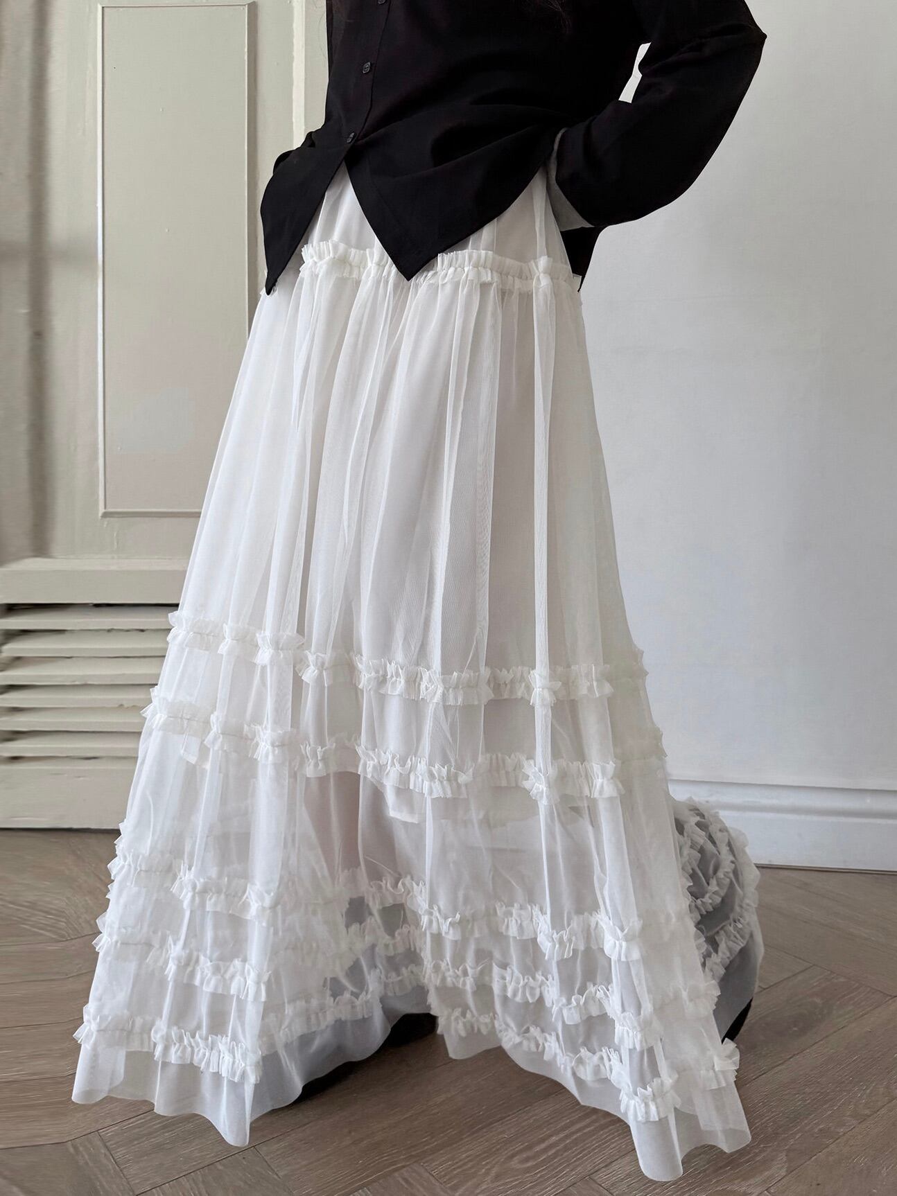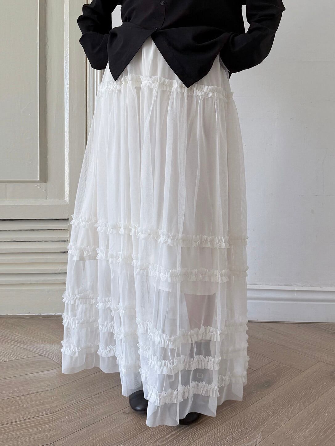 マルチレイヤードチュールラッフルスカート。