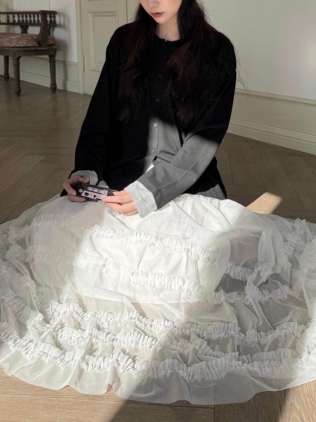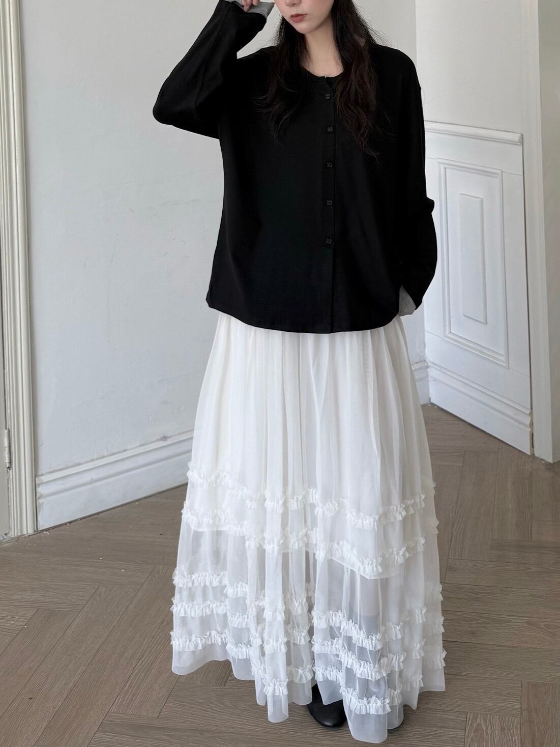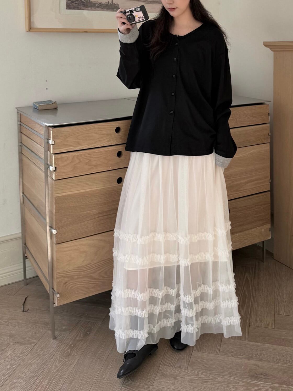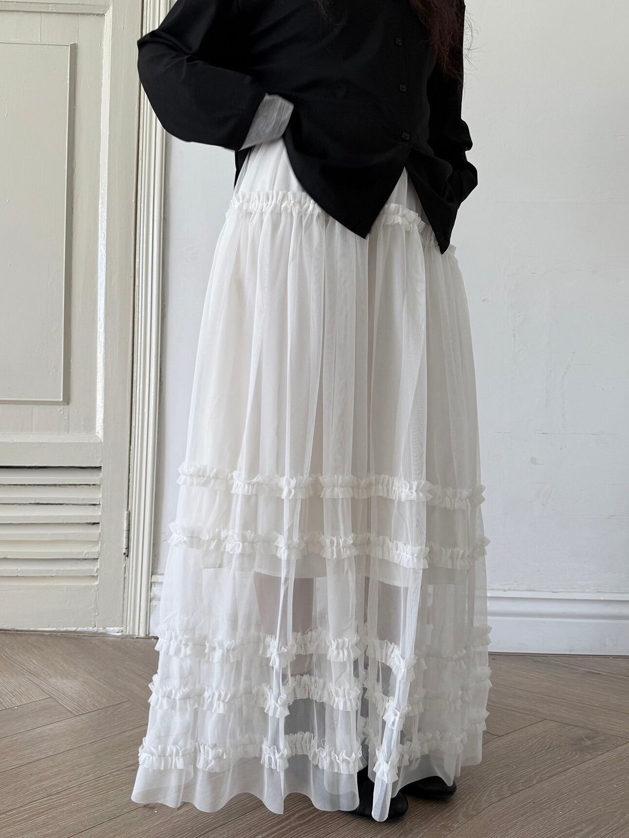 マルチレイヤードチュールラッフルスカート。
