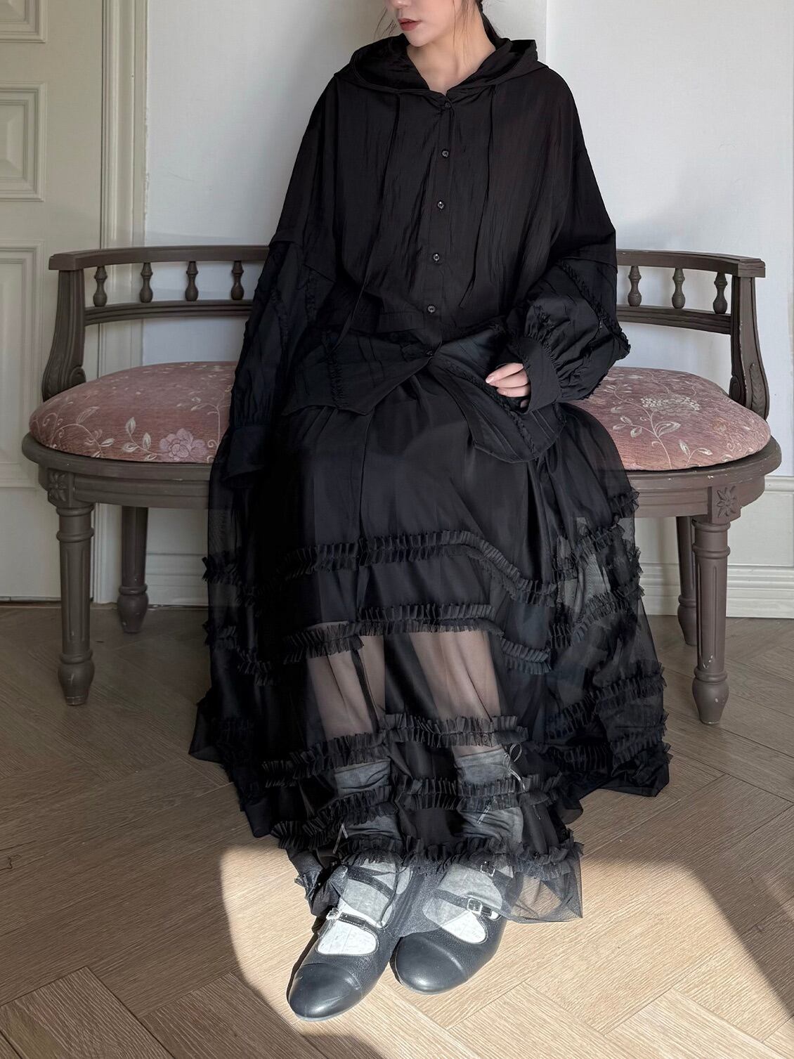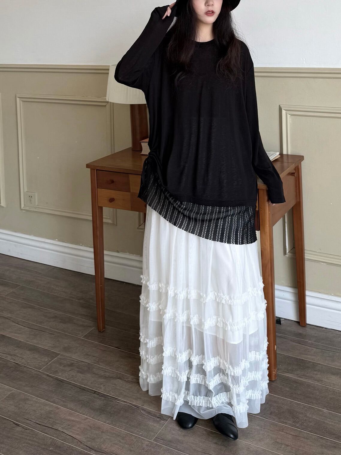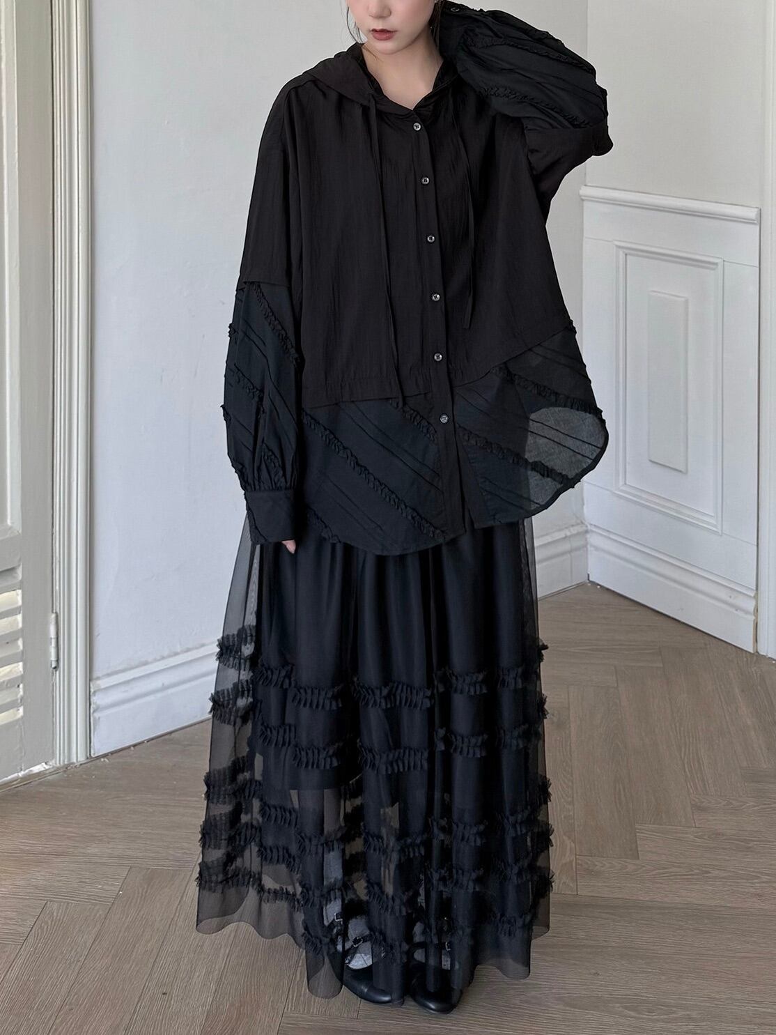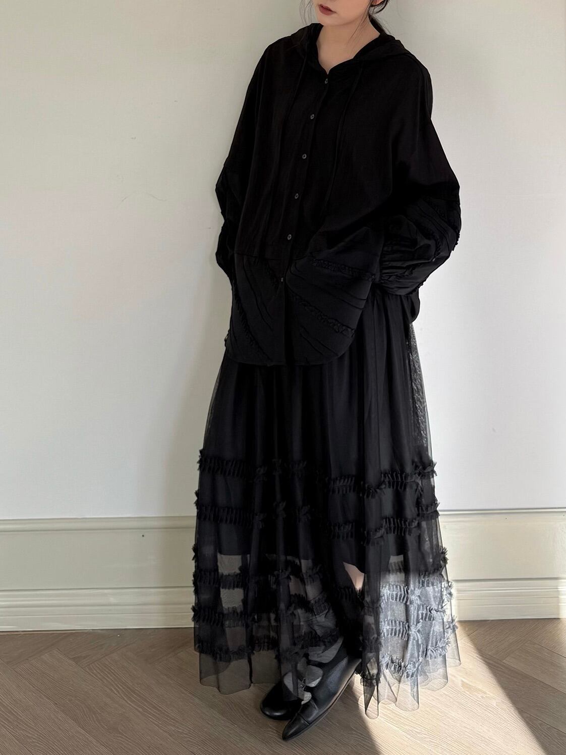 マルチレイヤードチュールラッフルスカート。