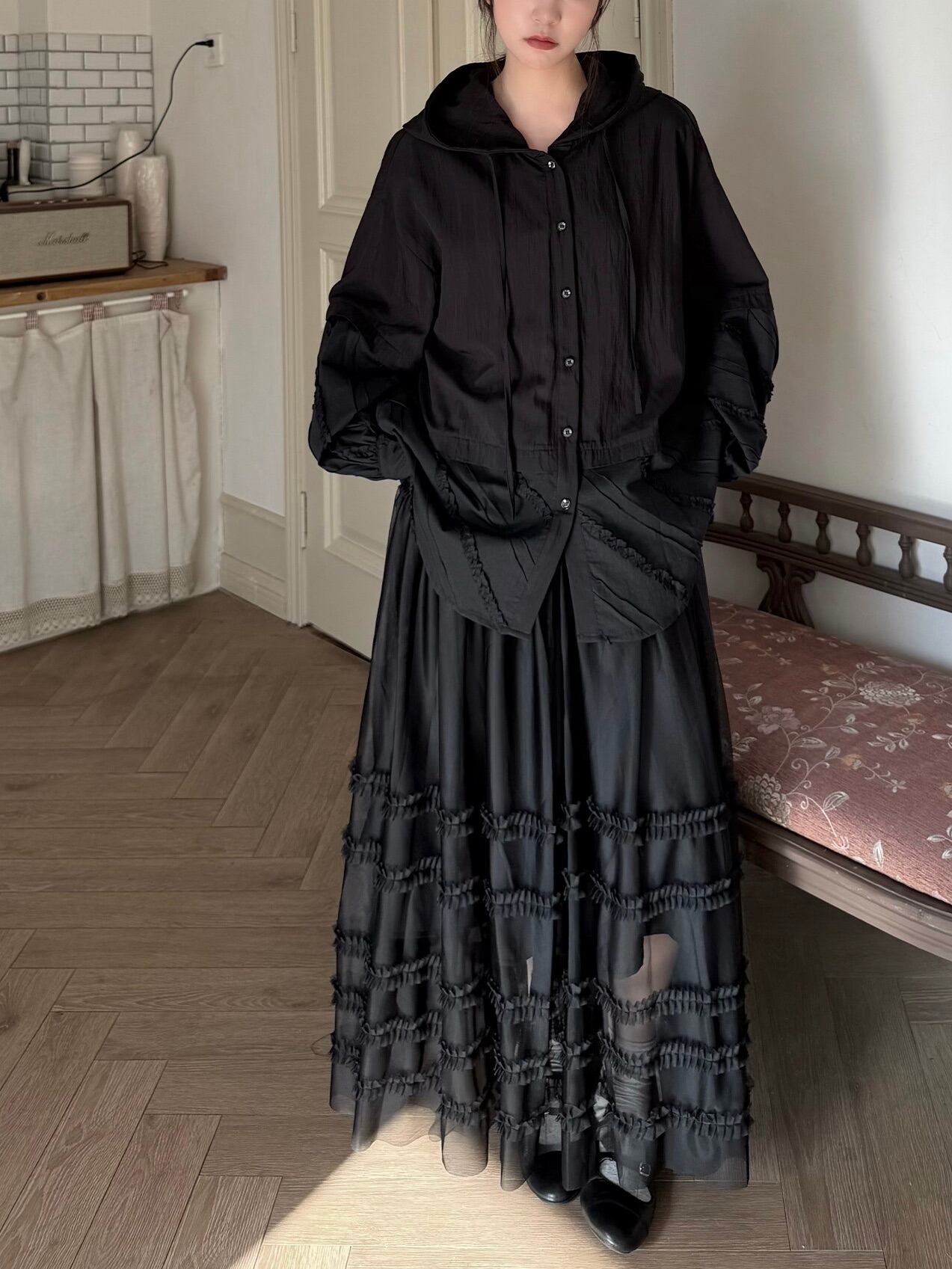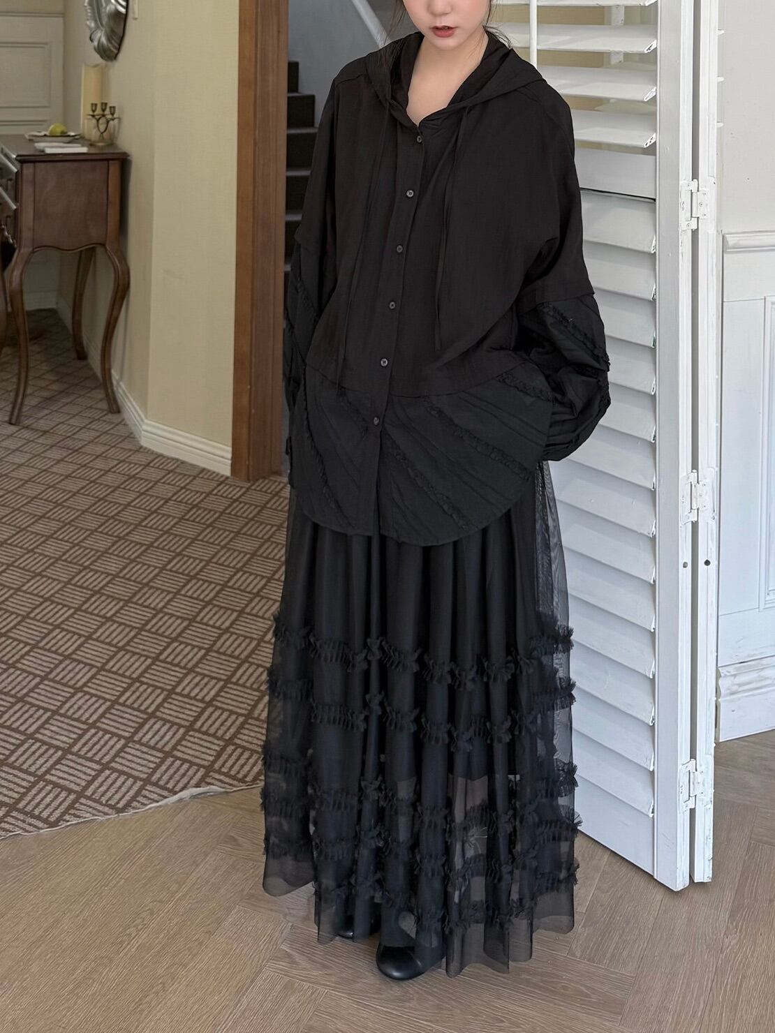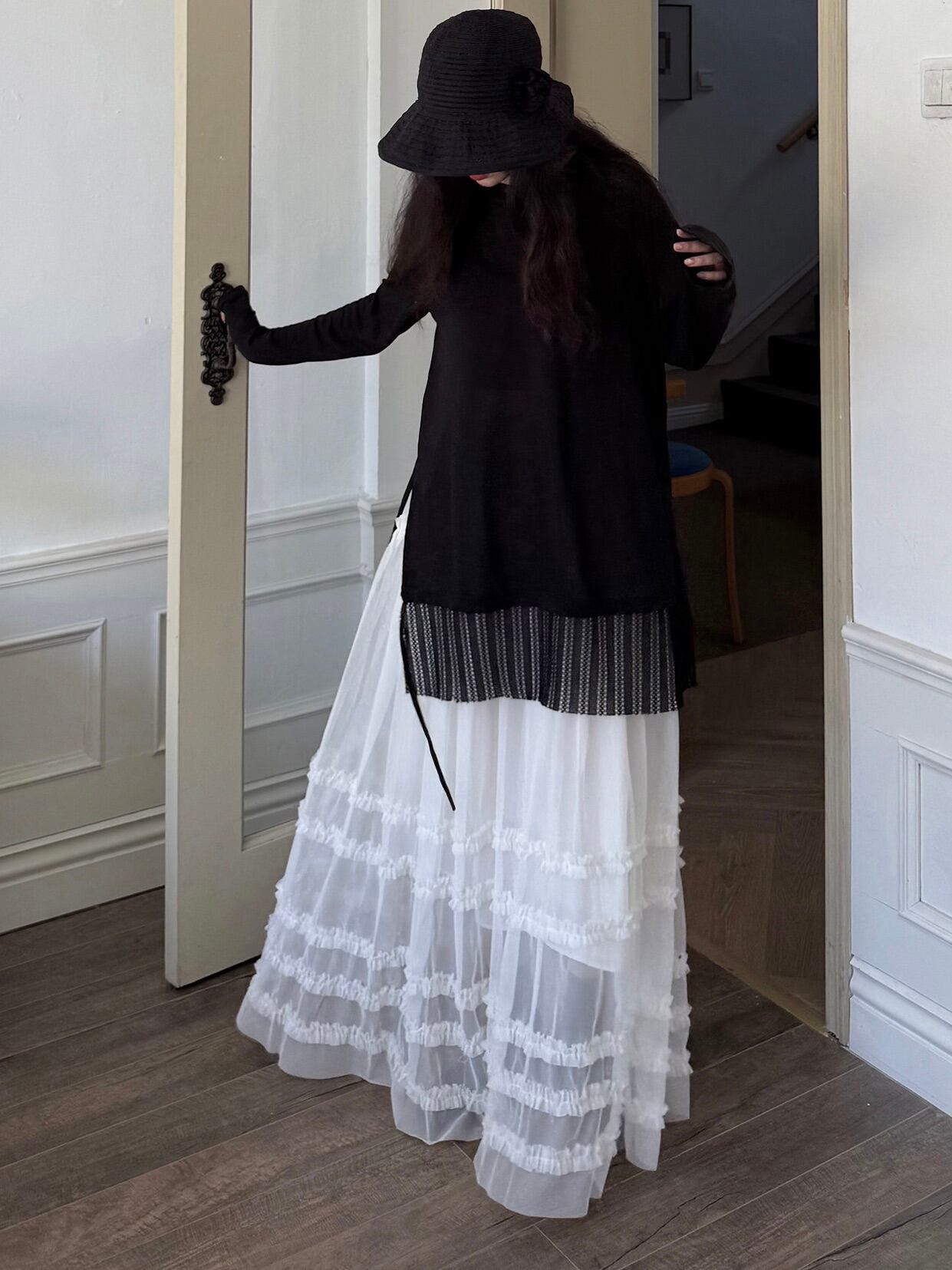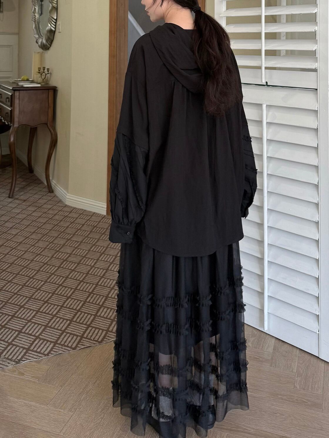マルチレイヤードチュールラッフルスカート。