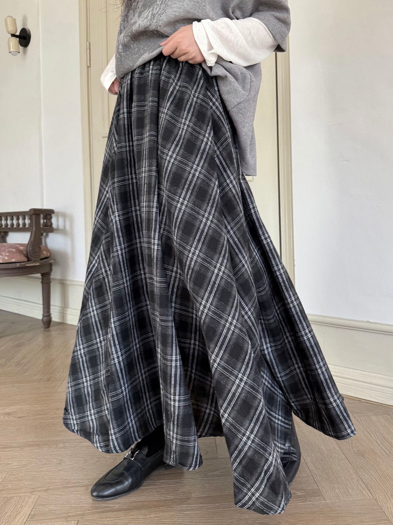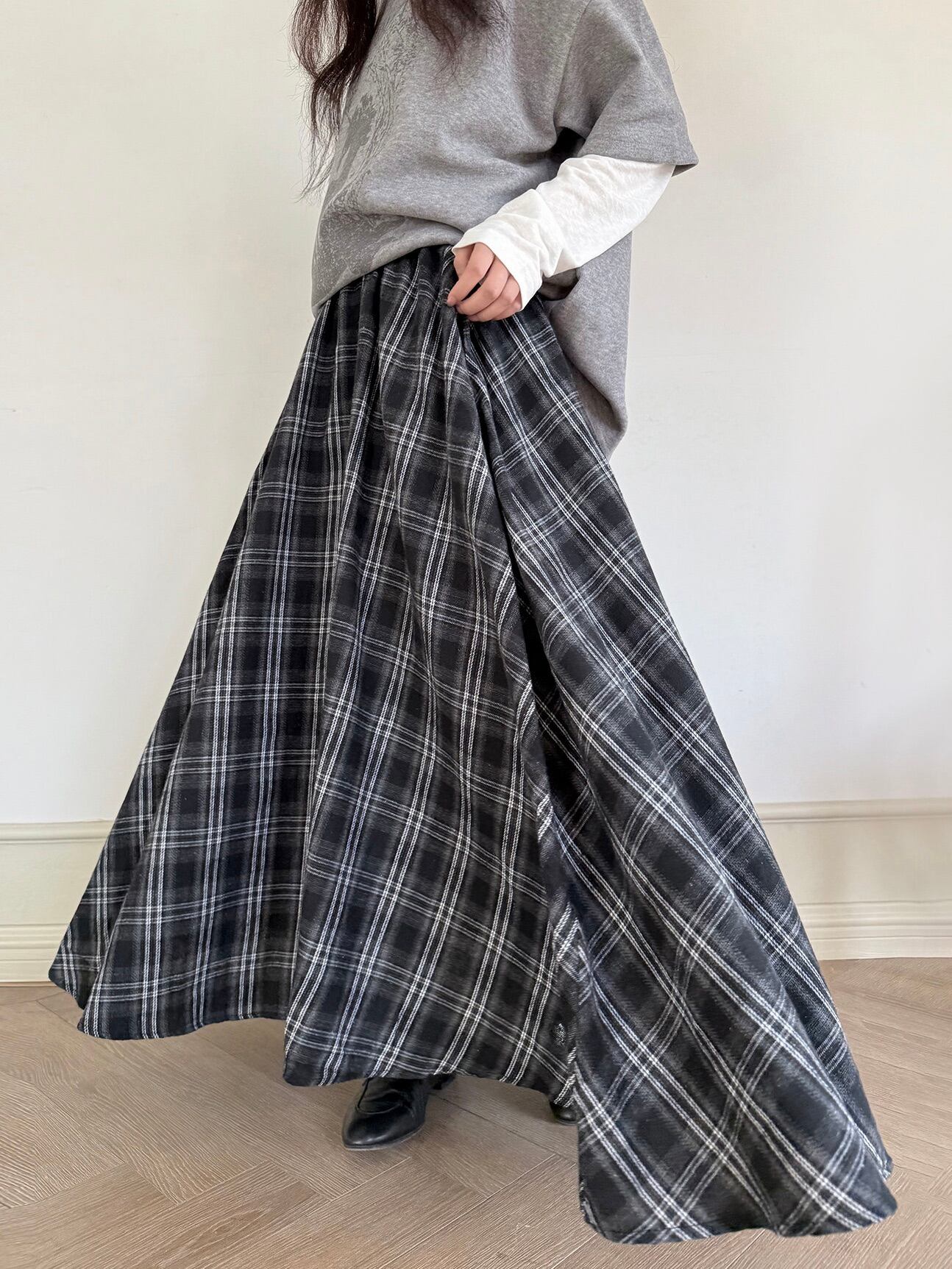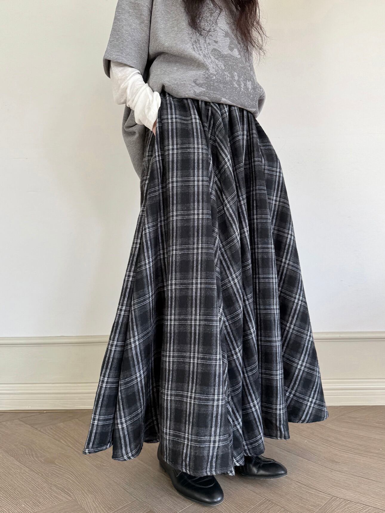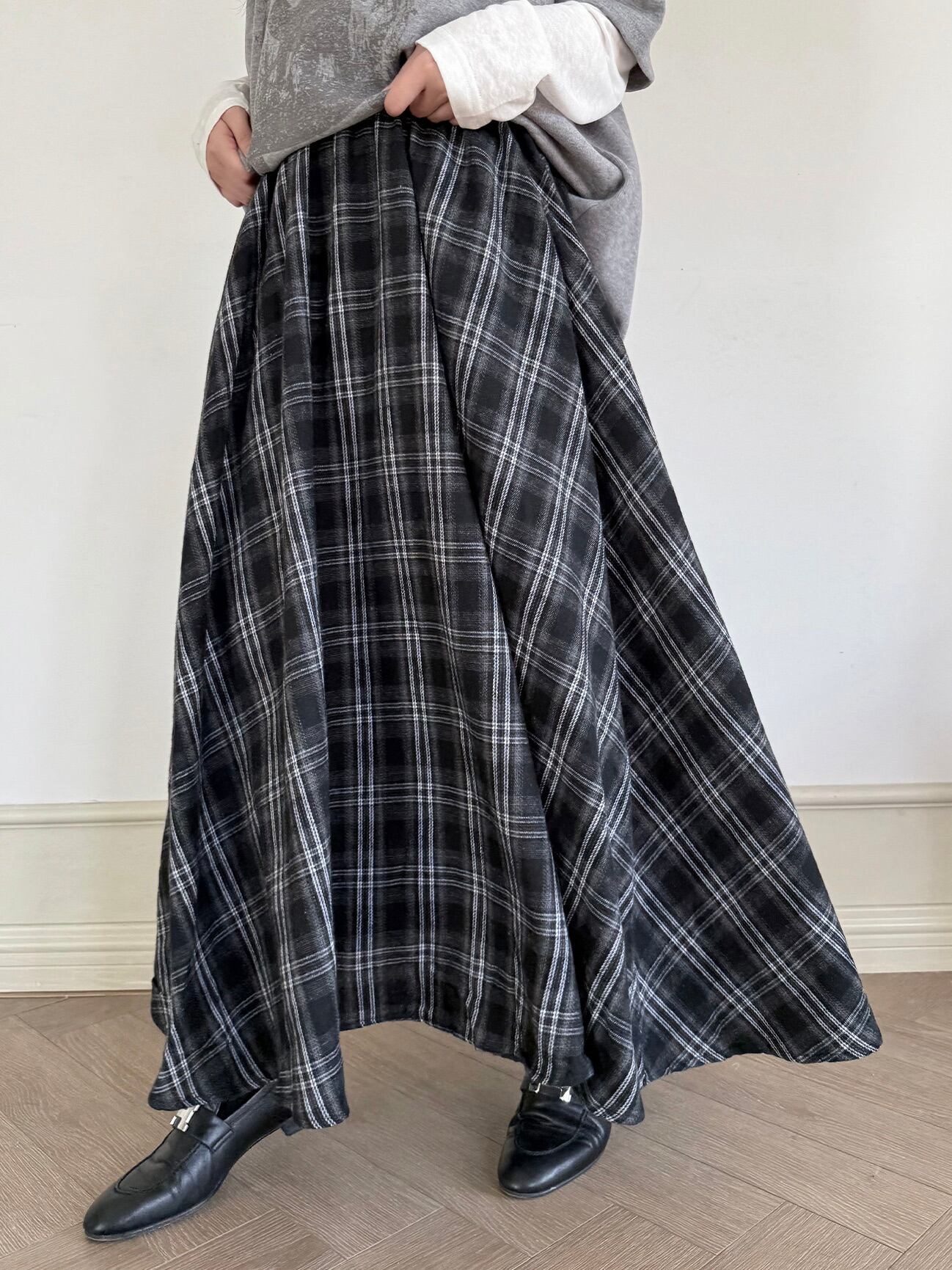 イレギュラーチェックパターンオーバーサイズルーズスカート。