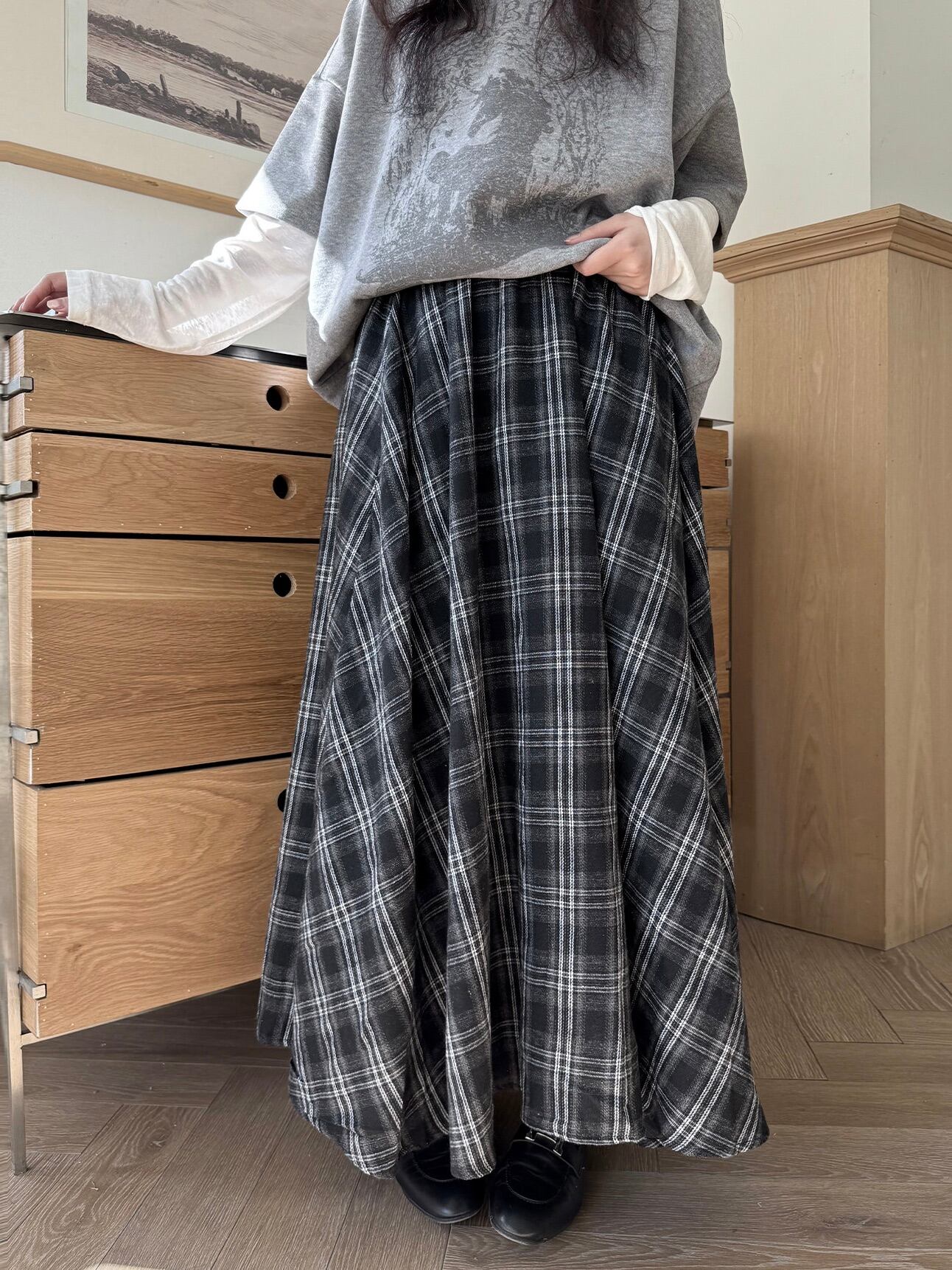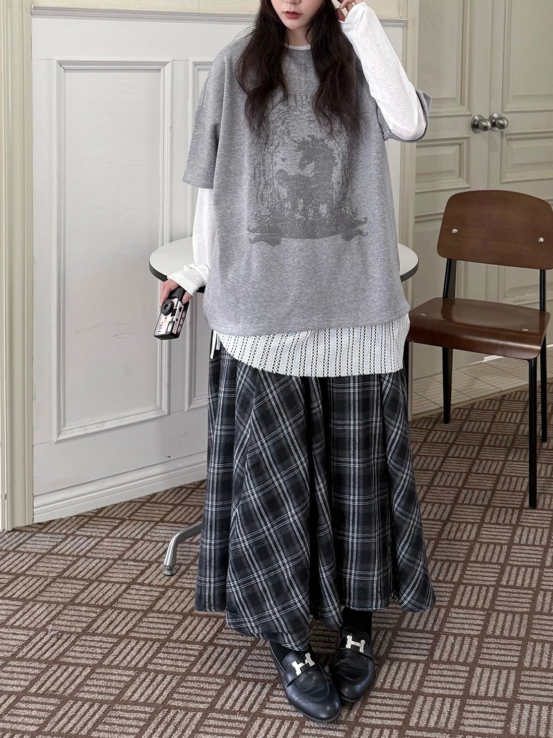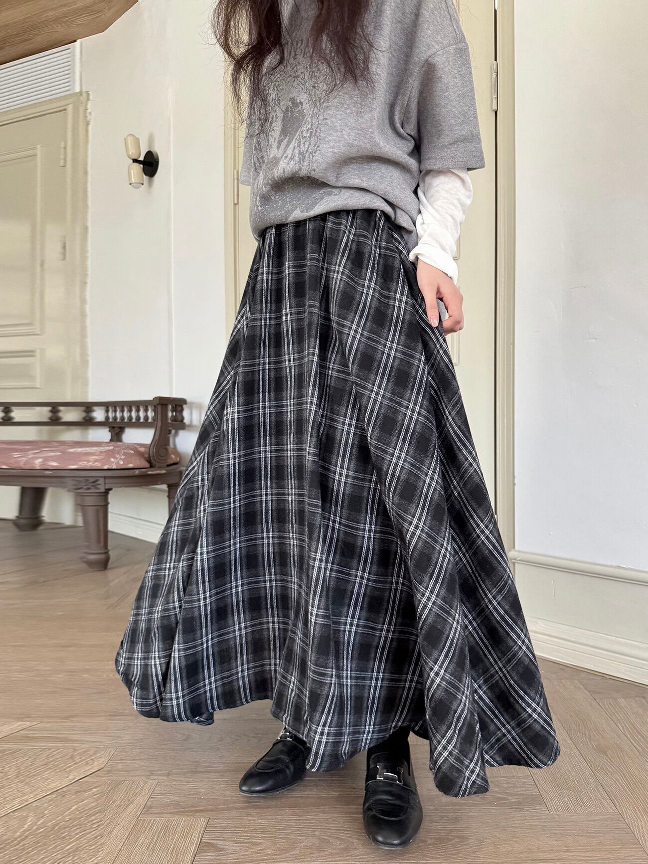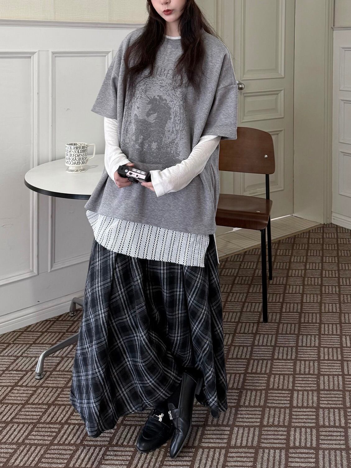イレギュラーチェックパターンオーバーサイズルーズスカート。
