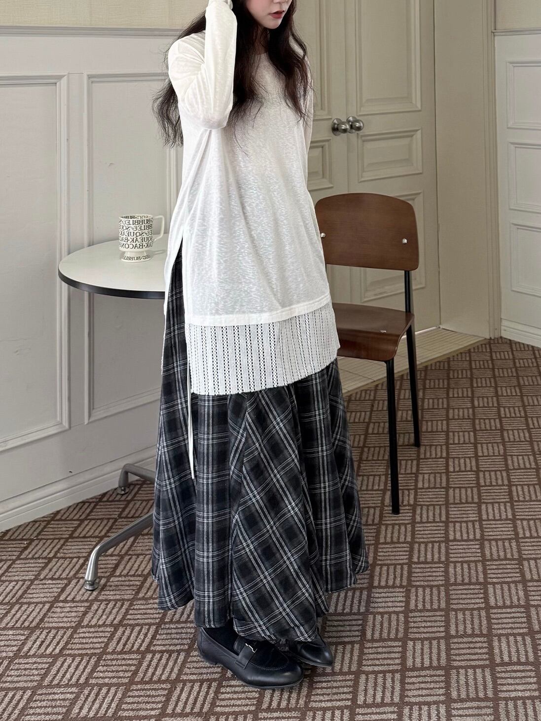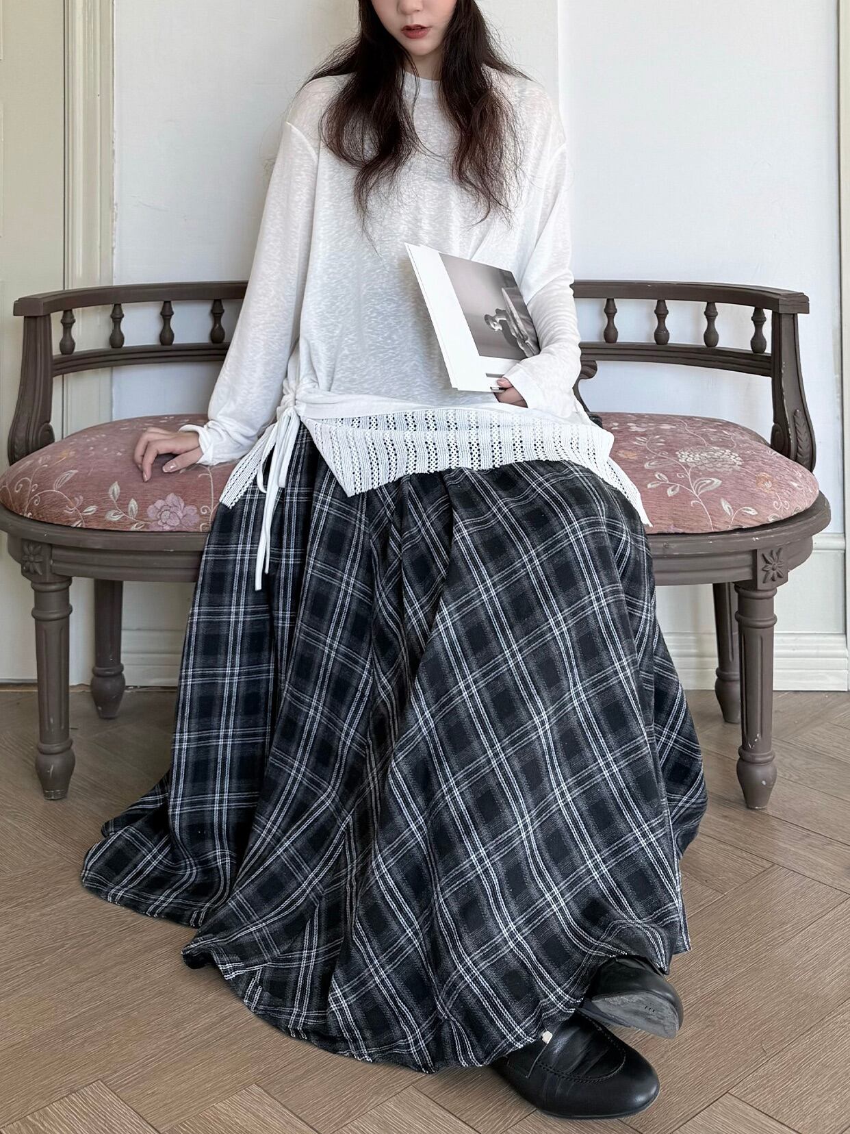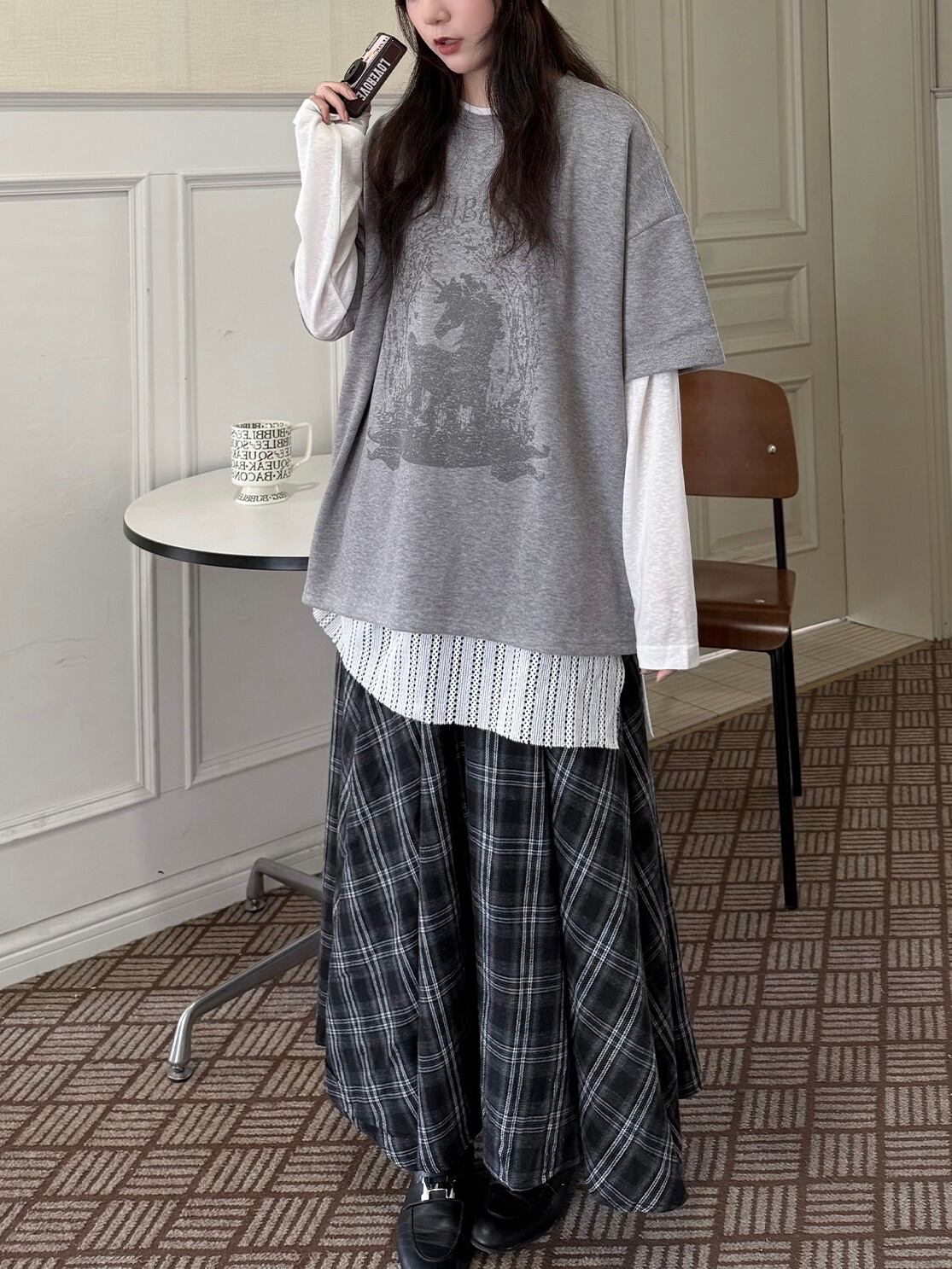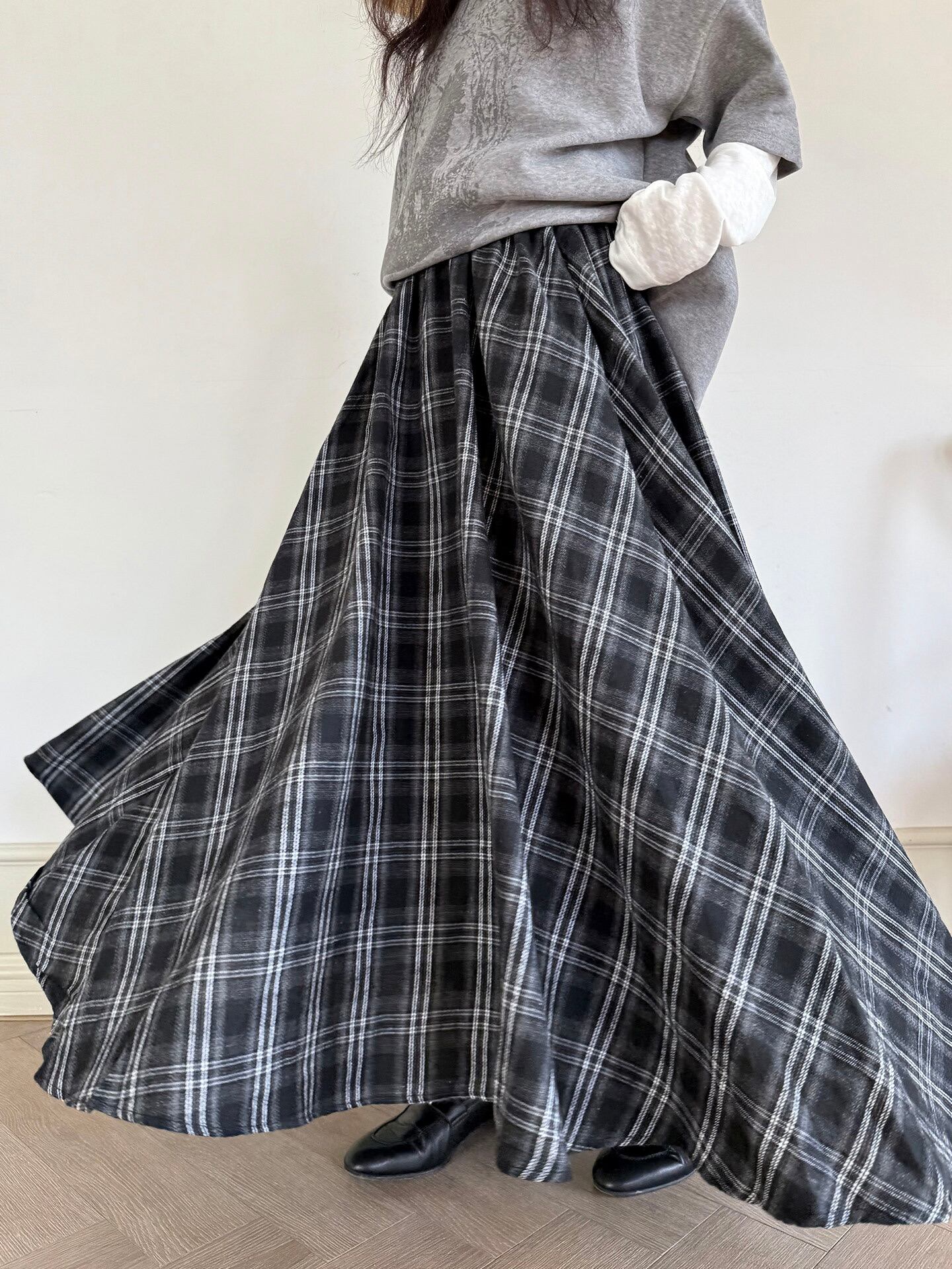 イレギュラーチェックパターンオーバーサイズルーズスカート。
