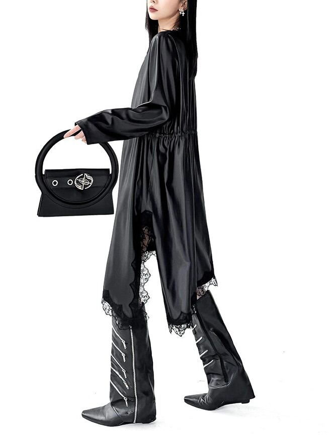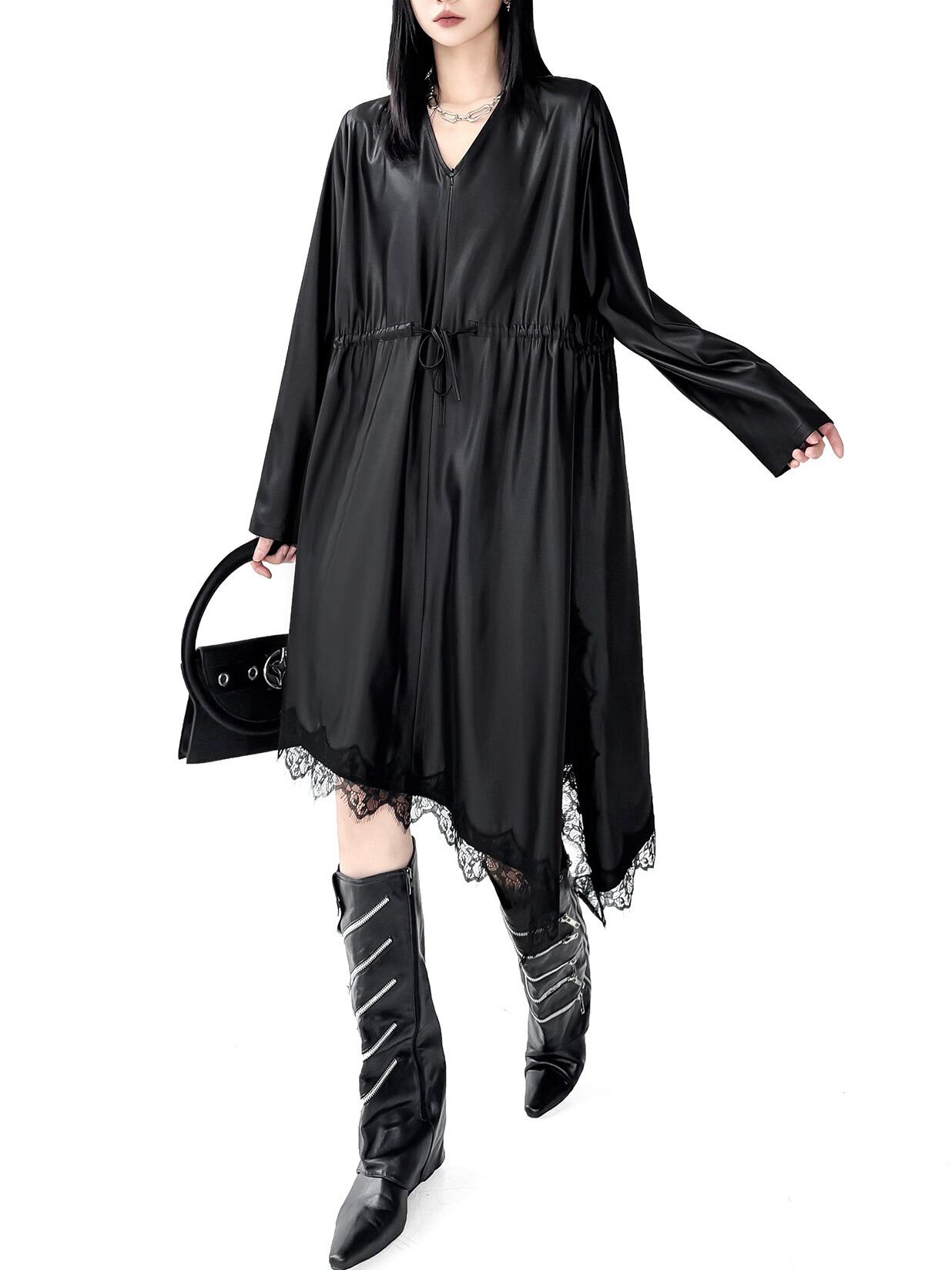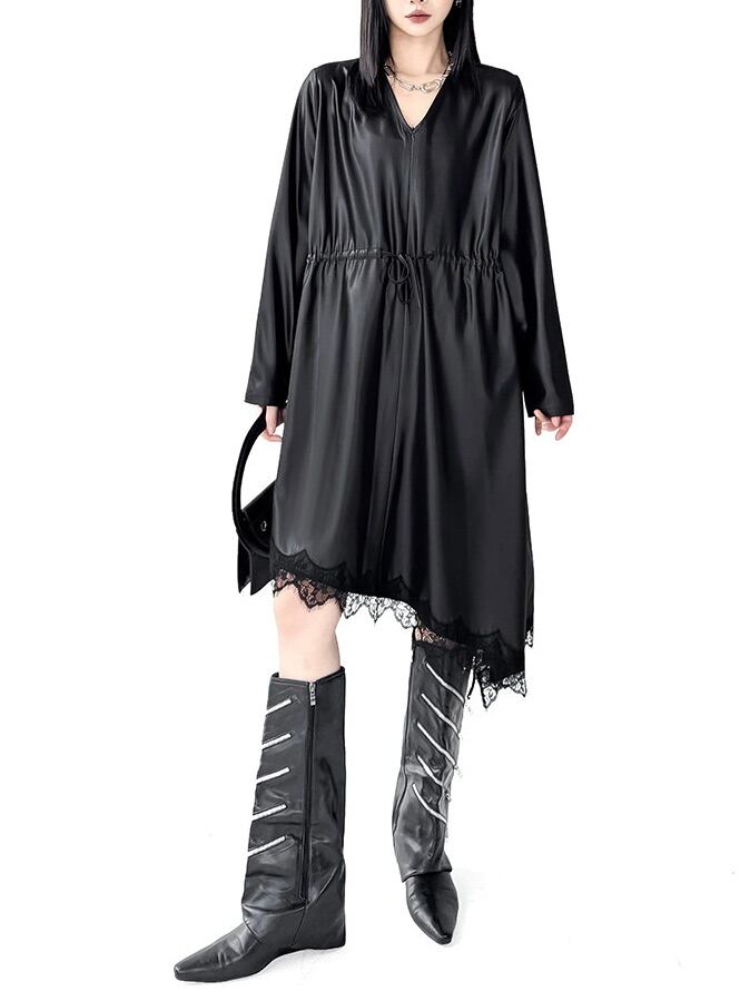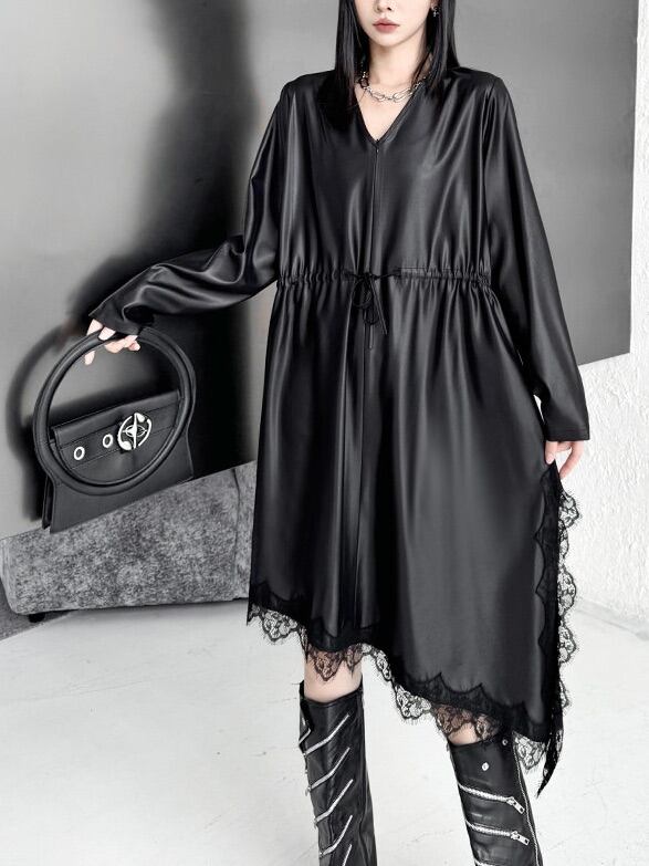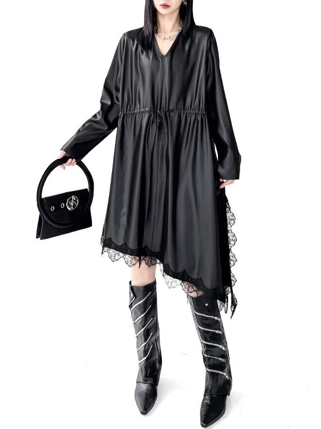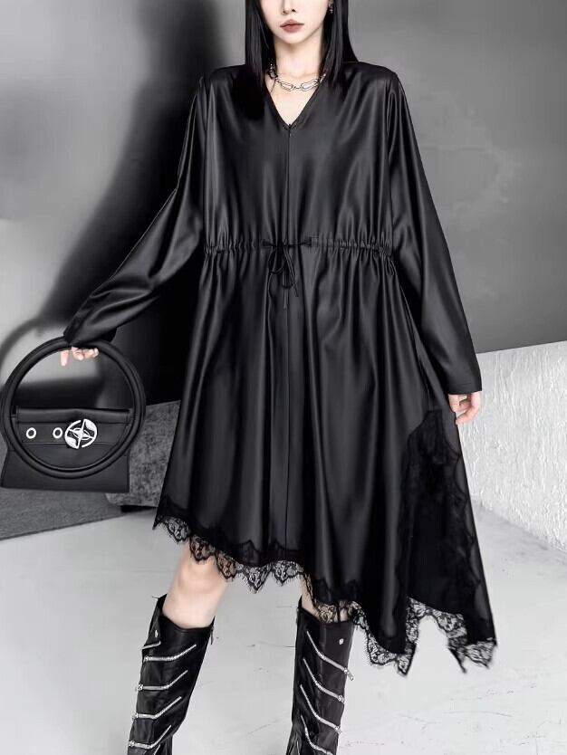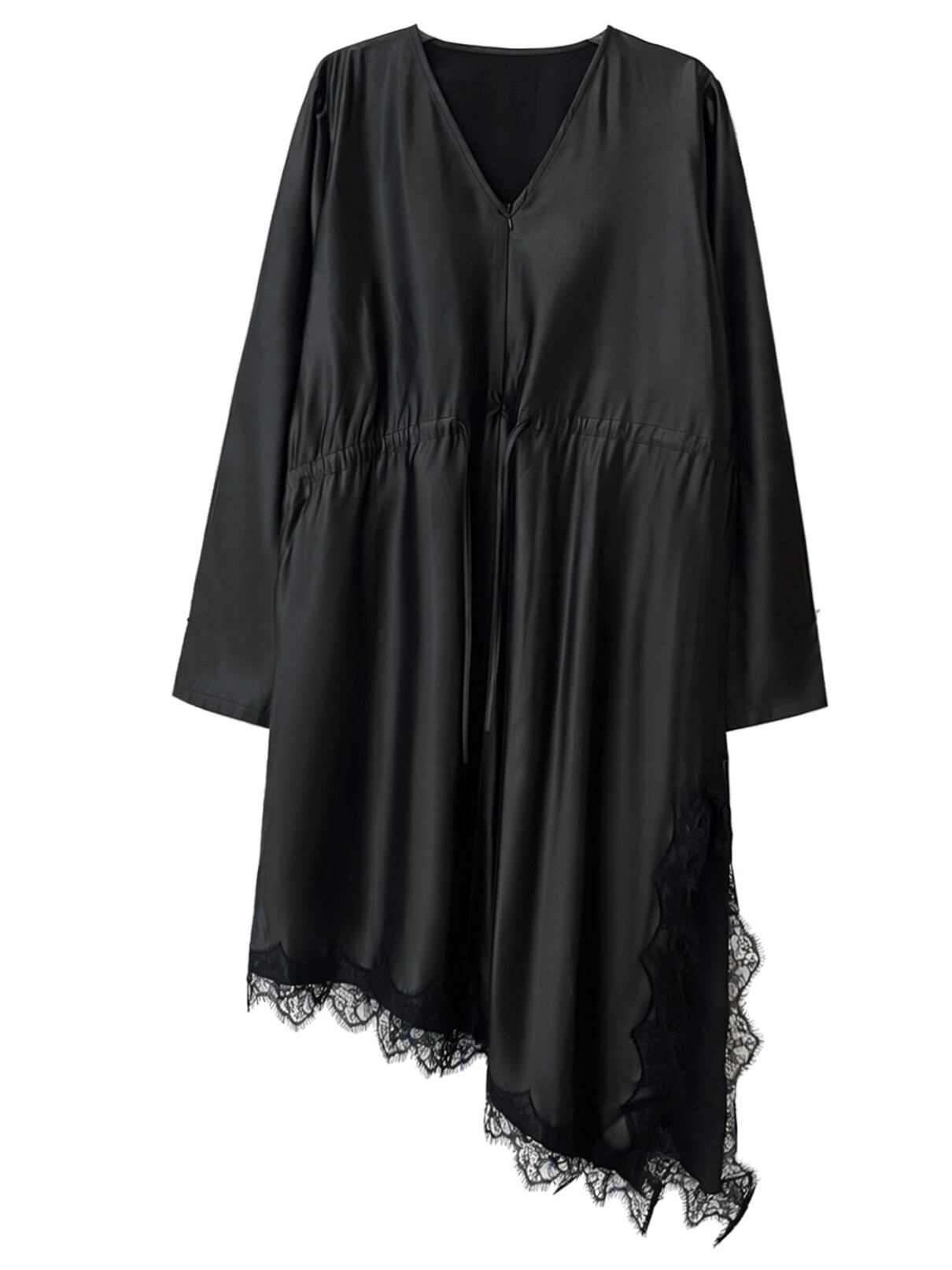 イレギュラーヘムVネックドローストリングブラックワンピース。 揺れる裾で視線を奪うモードな存在感。 一枚で決まる攻めのブラックスタイル。 - Size - M 肩幅:42cm 胸囲:116cm 着丈:98-119cm 袖丈:62cm ウエスト:118cm L 肩幅:43cm 胸囲:120cm 着丈:99-120cm 袖丈:63cm ウエスト:122cm XL 肩幅:44cm 胸囲:124cm 着丈:100-121cm 袖丈:64cm ウエスト:126cm ※1~3cmの誤差がある場合がございます model date 169cm/53kg - Color - ブラック - Material - ポリエステル、レース他 - お届けについて - こちらの商品は海外店舗より直接発送となる為、 ご入金から1~3週間前後で発送致します。 ※商品の状況によっては、3週間以上かかる場合も ございます。 ------------------------------------------------------- - Lilie全商品はこちらから - https://www.lilie.style/ - 人気のアイテムはこちら - https://www.lilie.style/categories/3884141 - ご購入前にこちらをお読みください - https://www.lilie.style/about -------------------------------------------------------