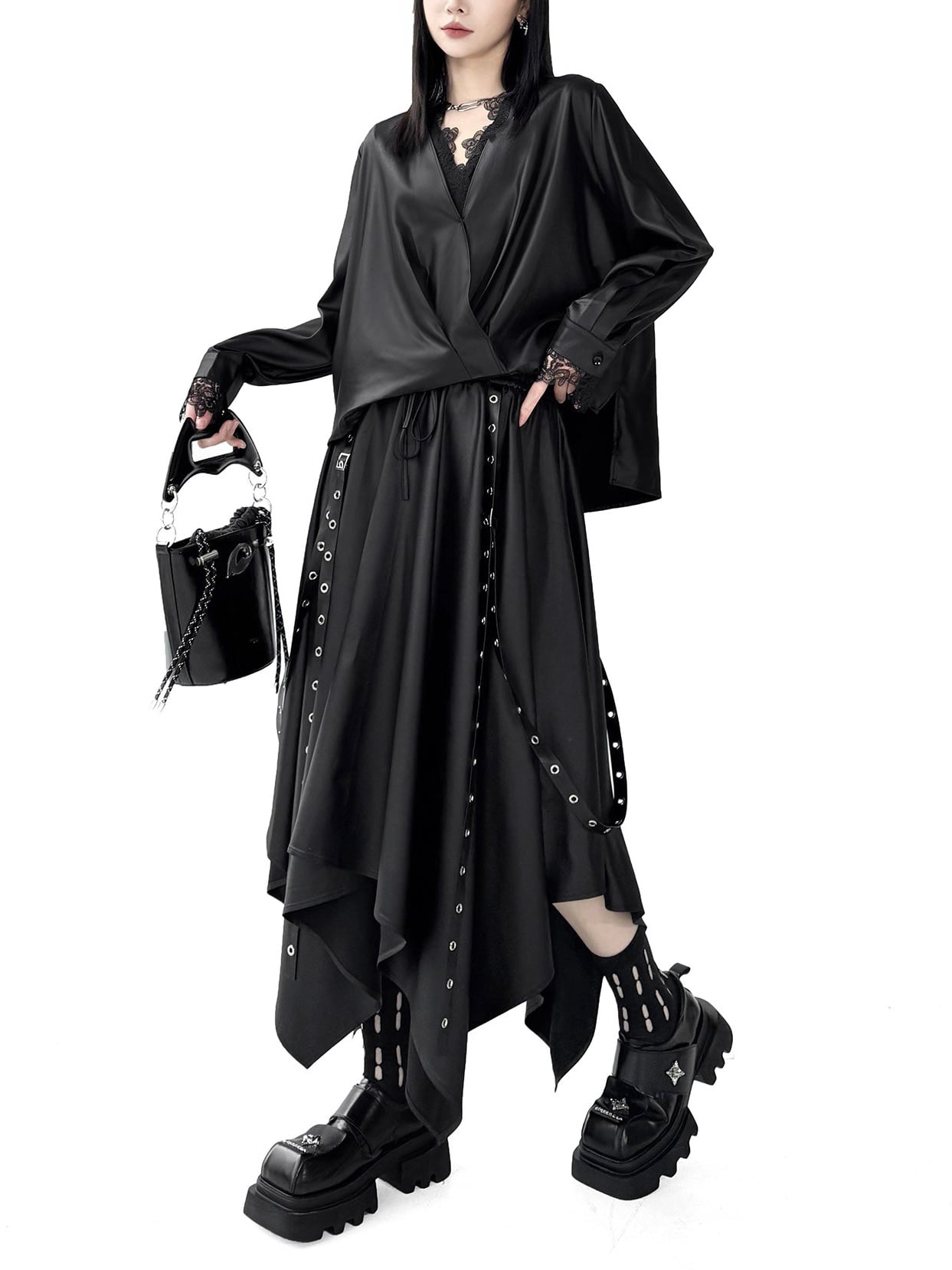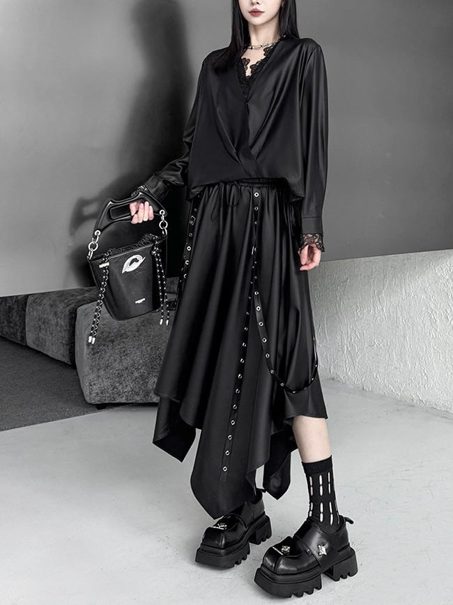 アシンメトリーVネックルーズシャツ。 揺れるラインで差がつくストリート感。 一枚でこなれた今どきコーデ完成。 T2775とセットアップになります。 - Size - M 肩幅:40cm 胸囲:128cm 着丈:57-64cm 袖丈:62cm ウエスト:126cm L 肩幅:41cm 胸囲:132cm 着丈:58-65cm 袖丈:63cm ウエスト:130cm XL 肩幅:c42m 胸囲:136cm 着丈:59-66cm 袖丈:64cm ウエスト:134cm ※1~3cmの誤差がある場合がございます model date 169cm/53kg - Color - ブラック/ブラウン - Material - ポリエステル他 - お届けについて - こちらの商品は海外店舗より直接発送となる為、 ご入金から1~3週間前後で発送致します。 ※商品の状況によっては、3週間以上かかる場合も ございます。 ------------------------------------------------------- - Lilie全商品はこちらから - https://www.lilie.style/ - 人気のアイテムはこちら - https://www.lilie.style/categories/3884141 - ご購入前にこちらをお読みください - https://www.lilie.style/about -------------------------------------------------------