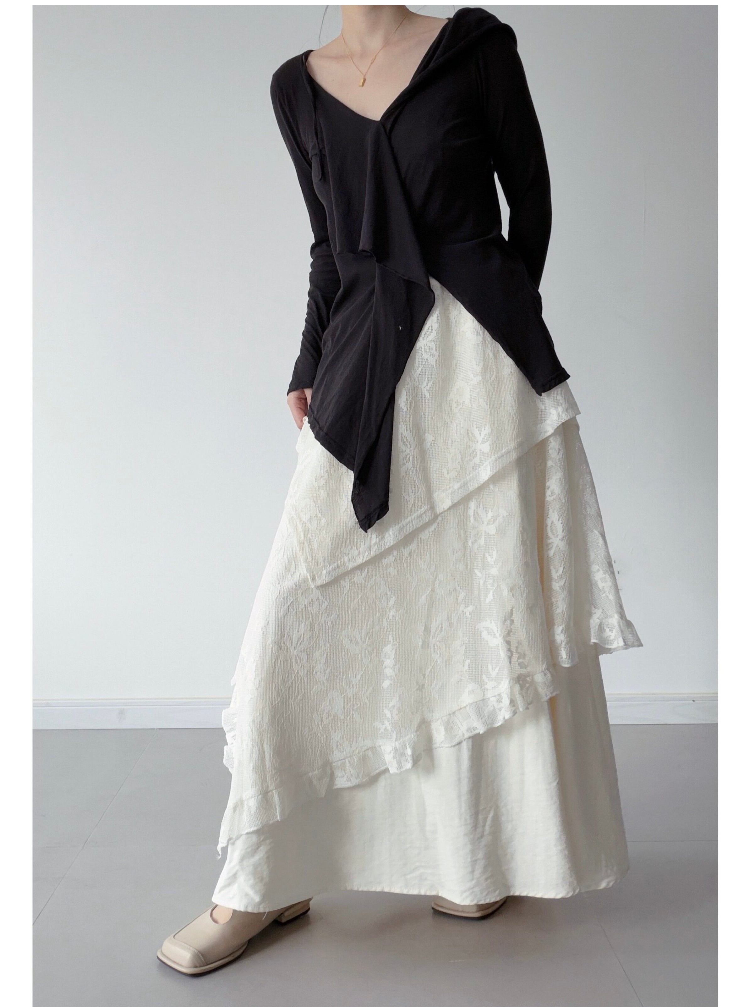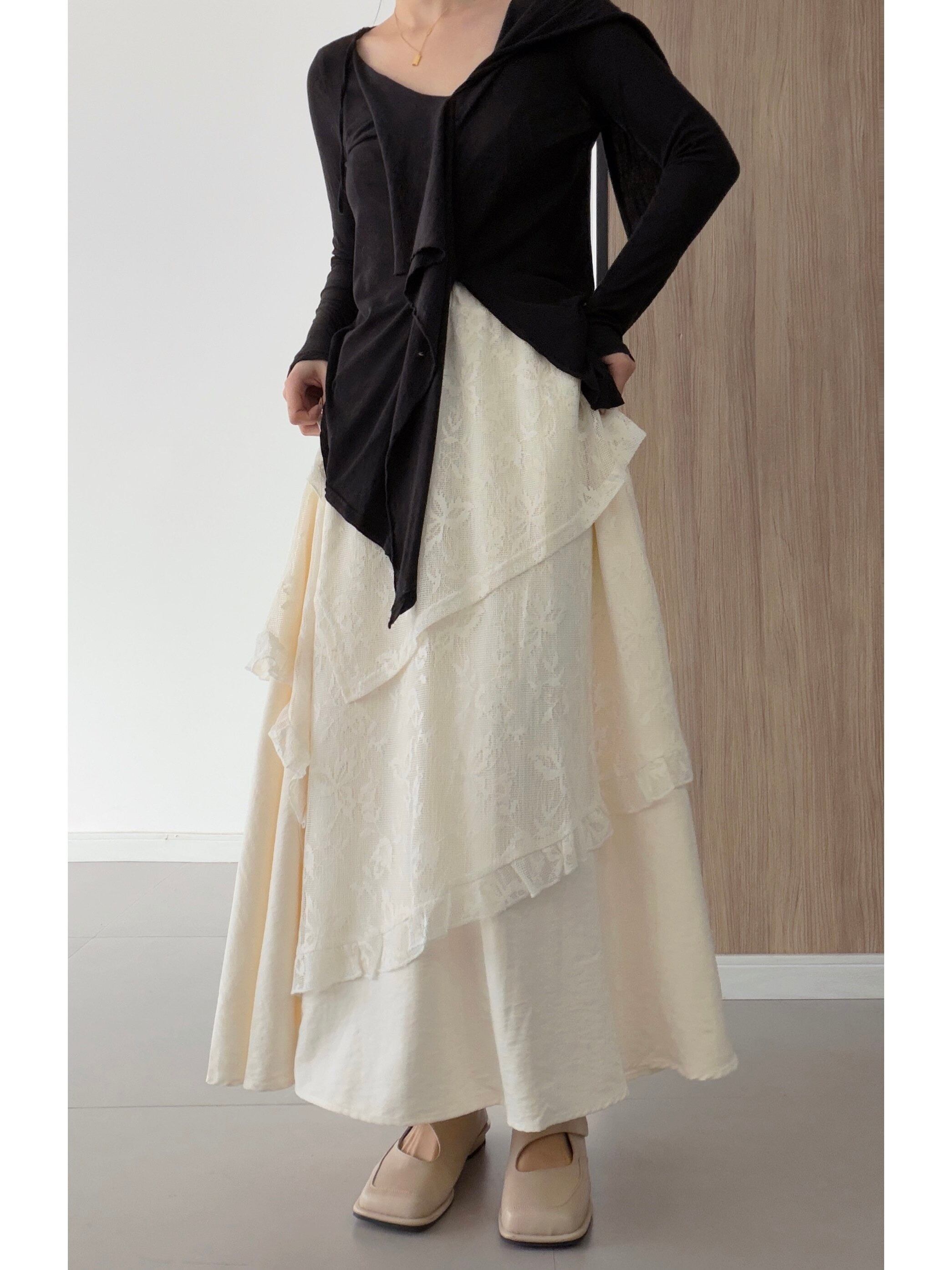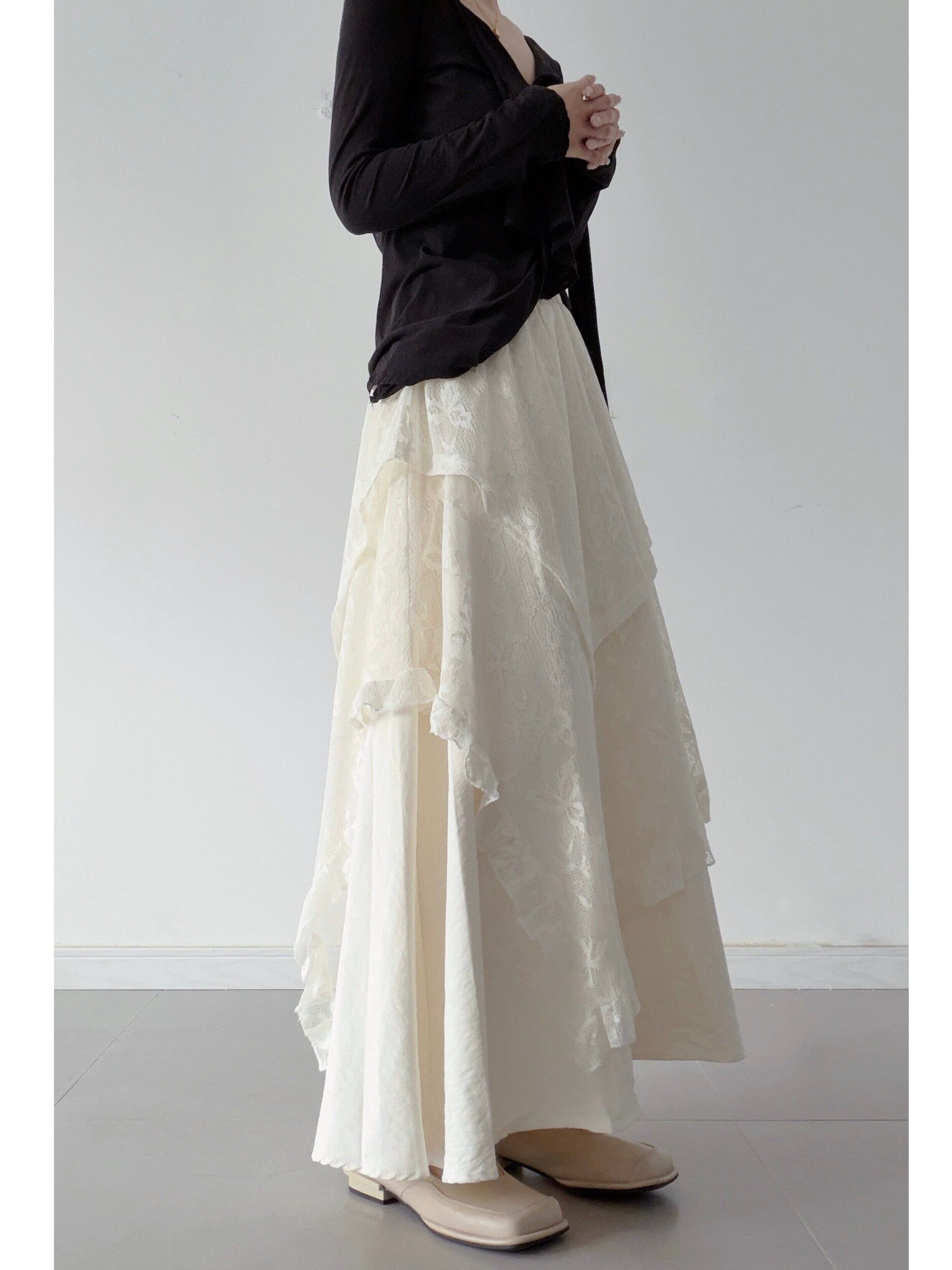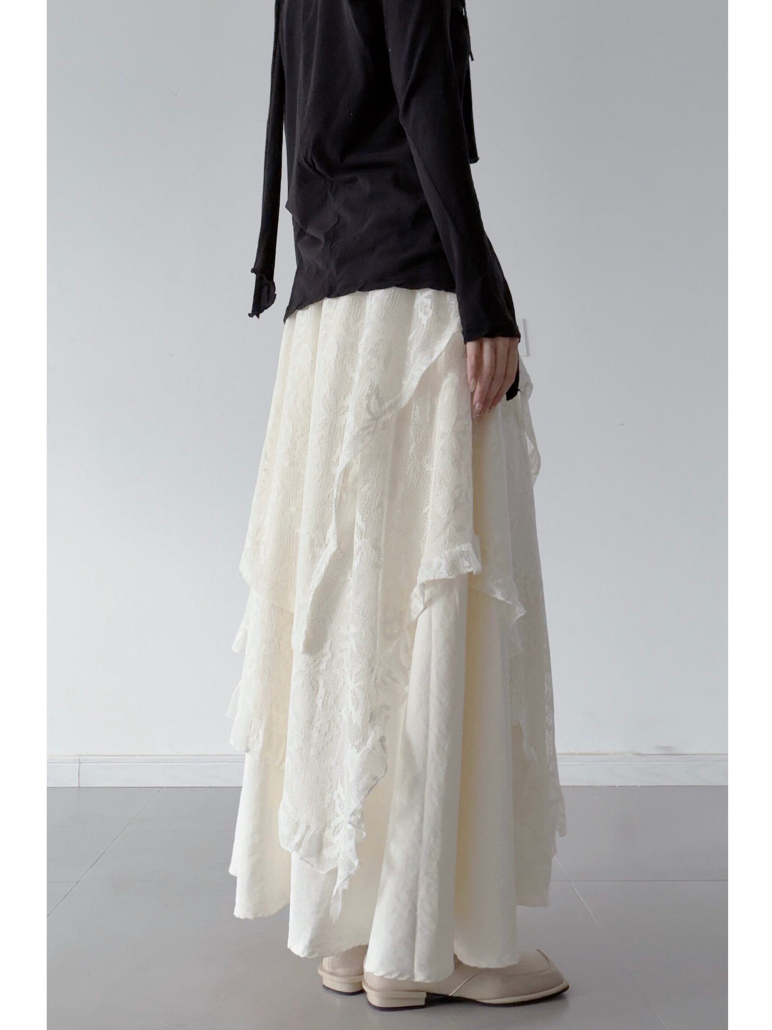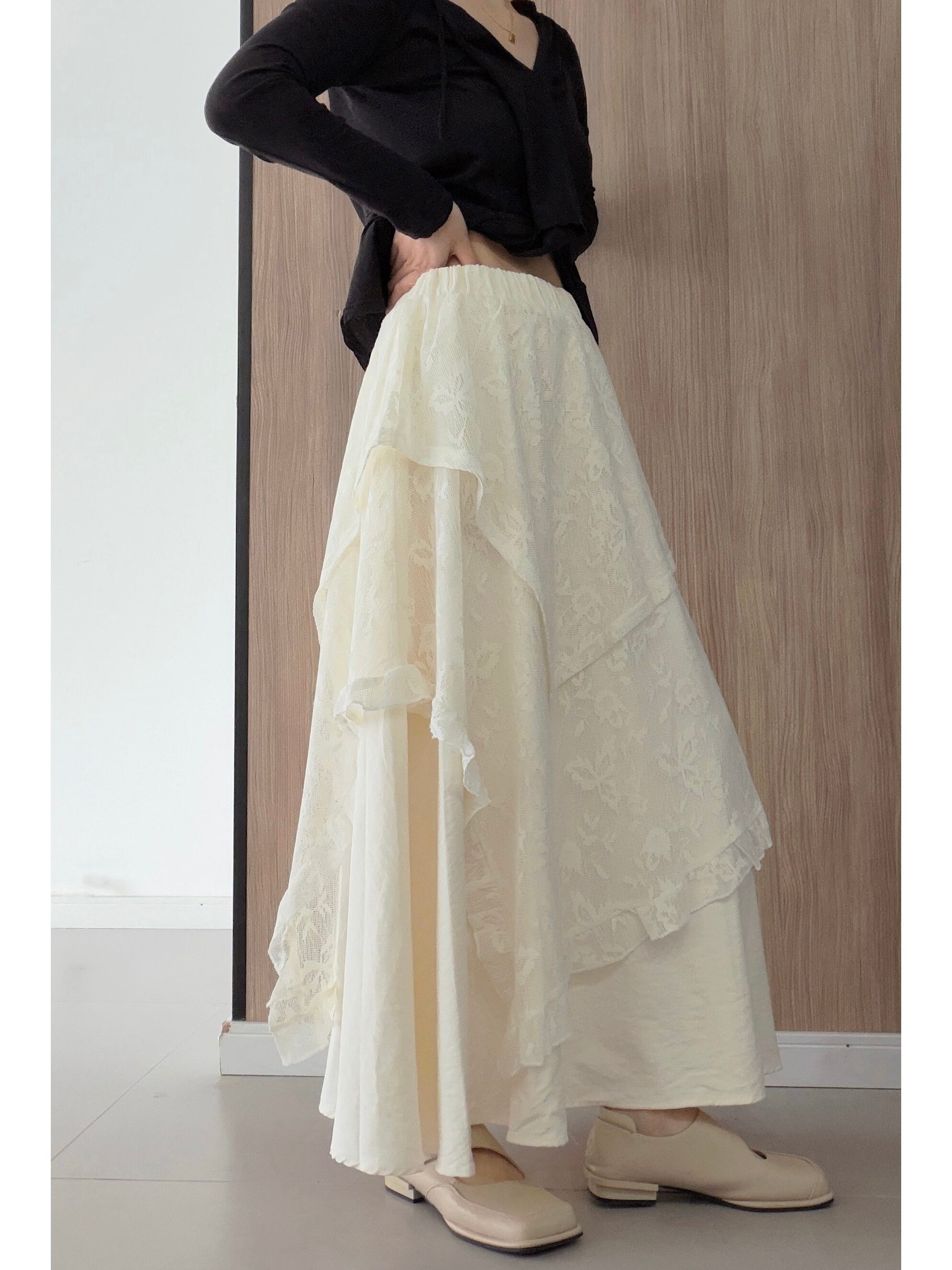 マルチレイヤーレースイレギュラースカート。