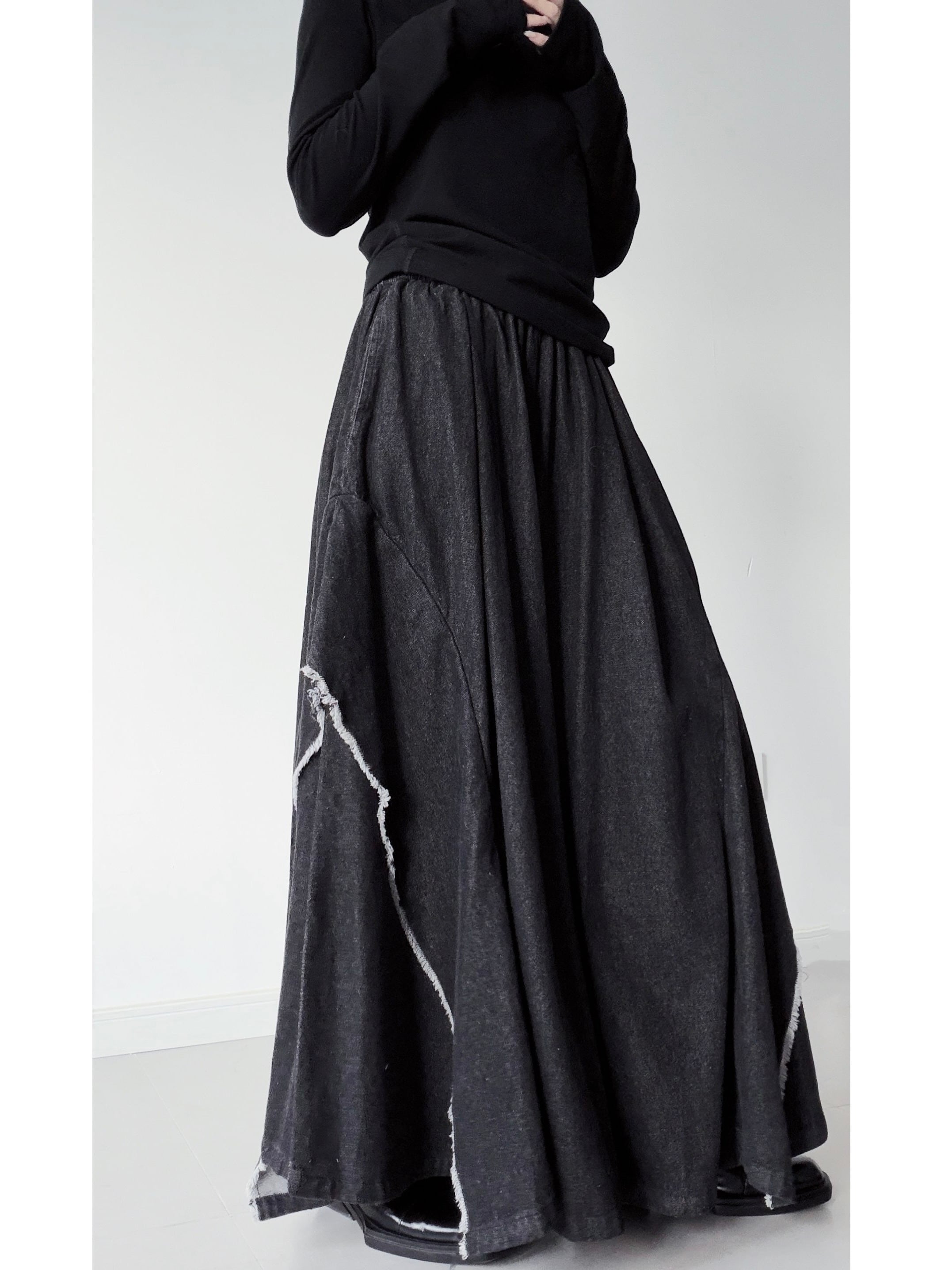 Deconstructed denim wide-leg pants [T2790]