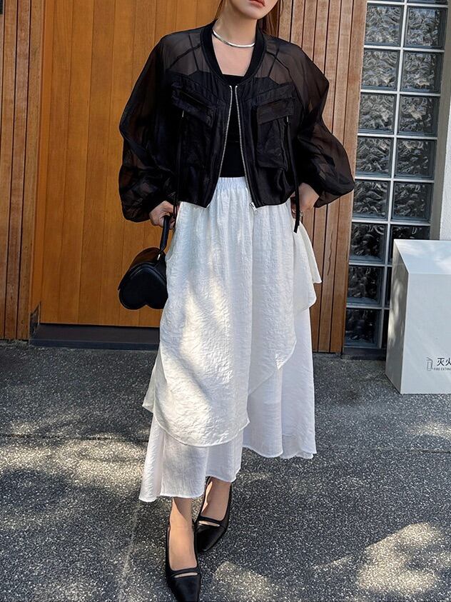 透け感で魅せる軽やかなストリートスタイルが完成する。