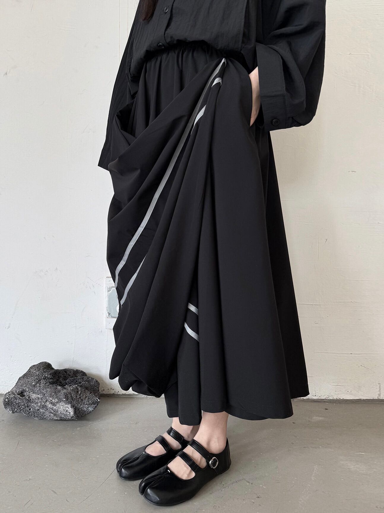 ホワイトラインオーバーサイズスポーティースカート。