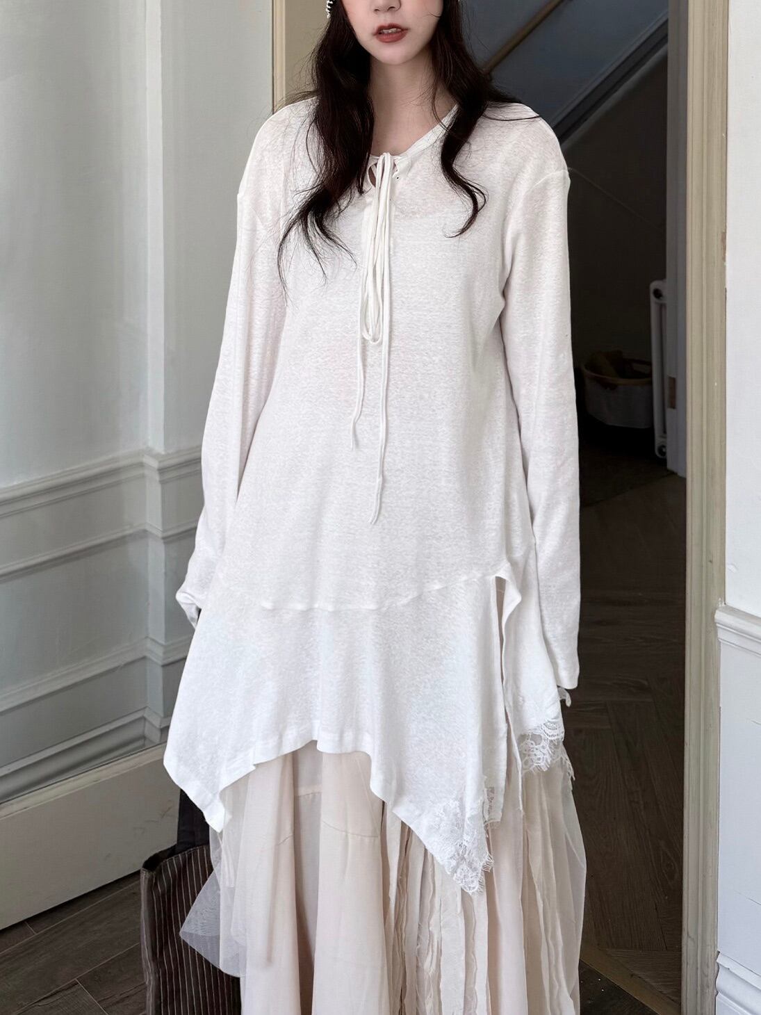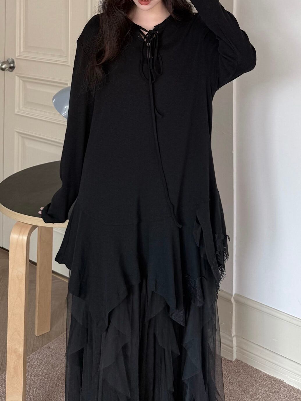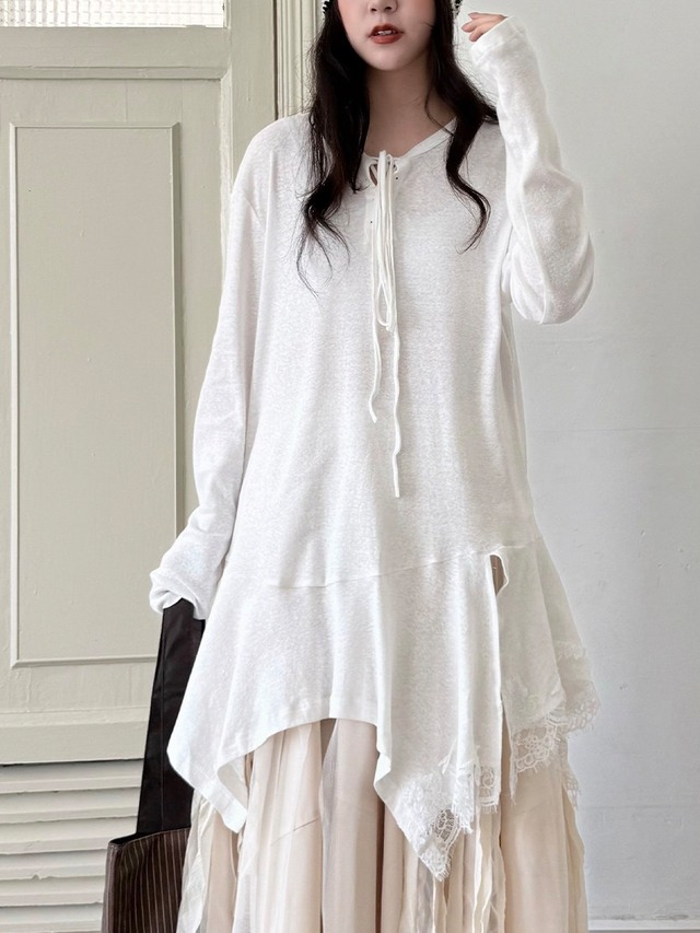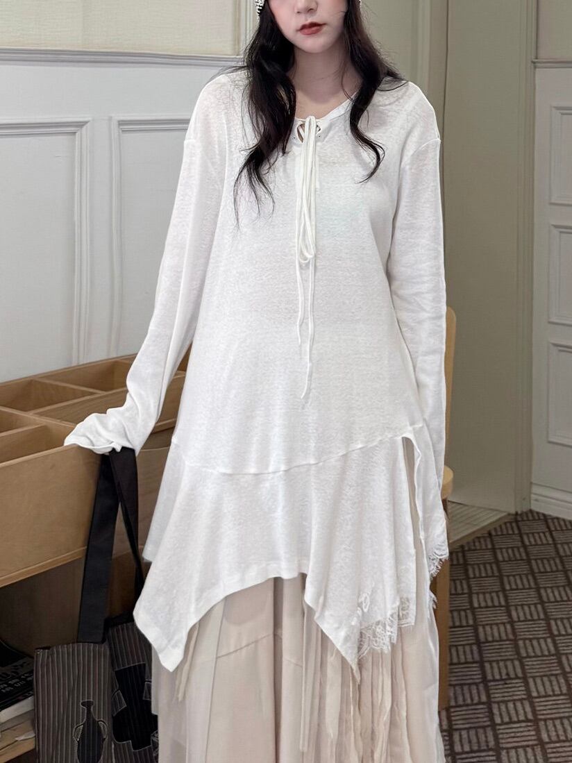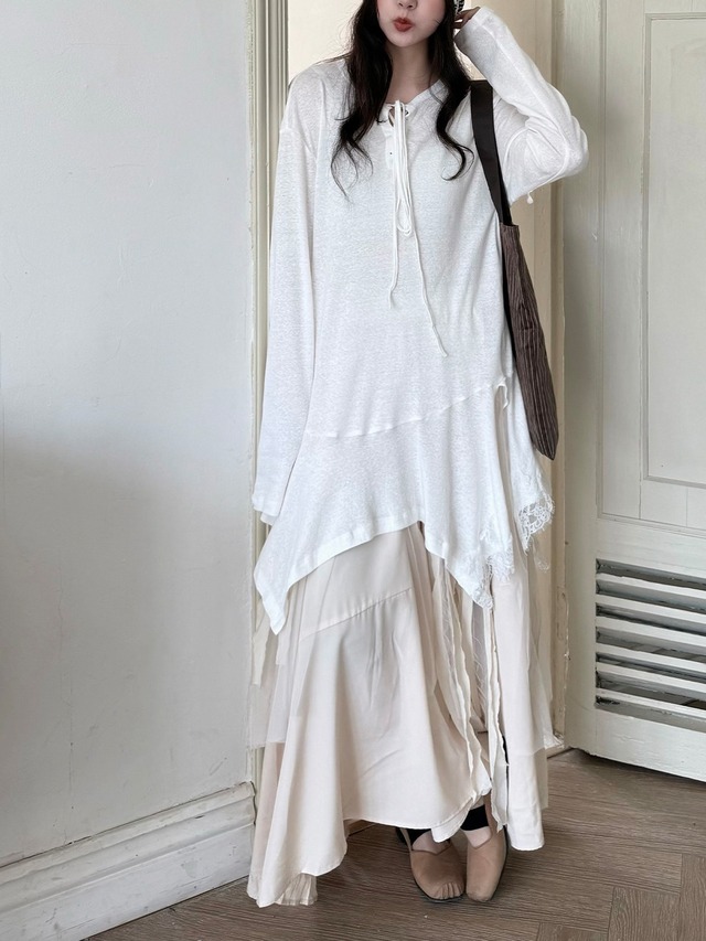 アシンメトリーレイヤードロングスリーブトップ。