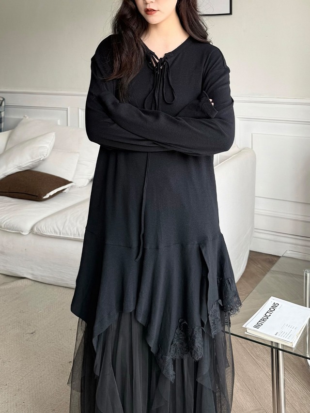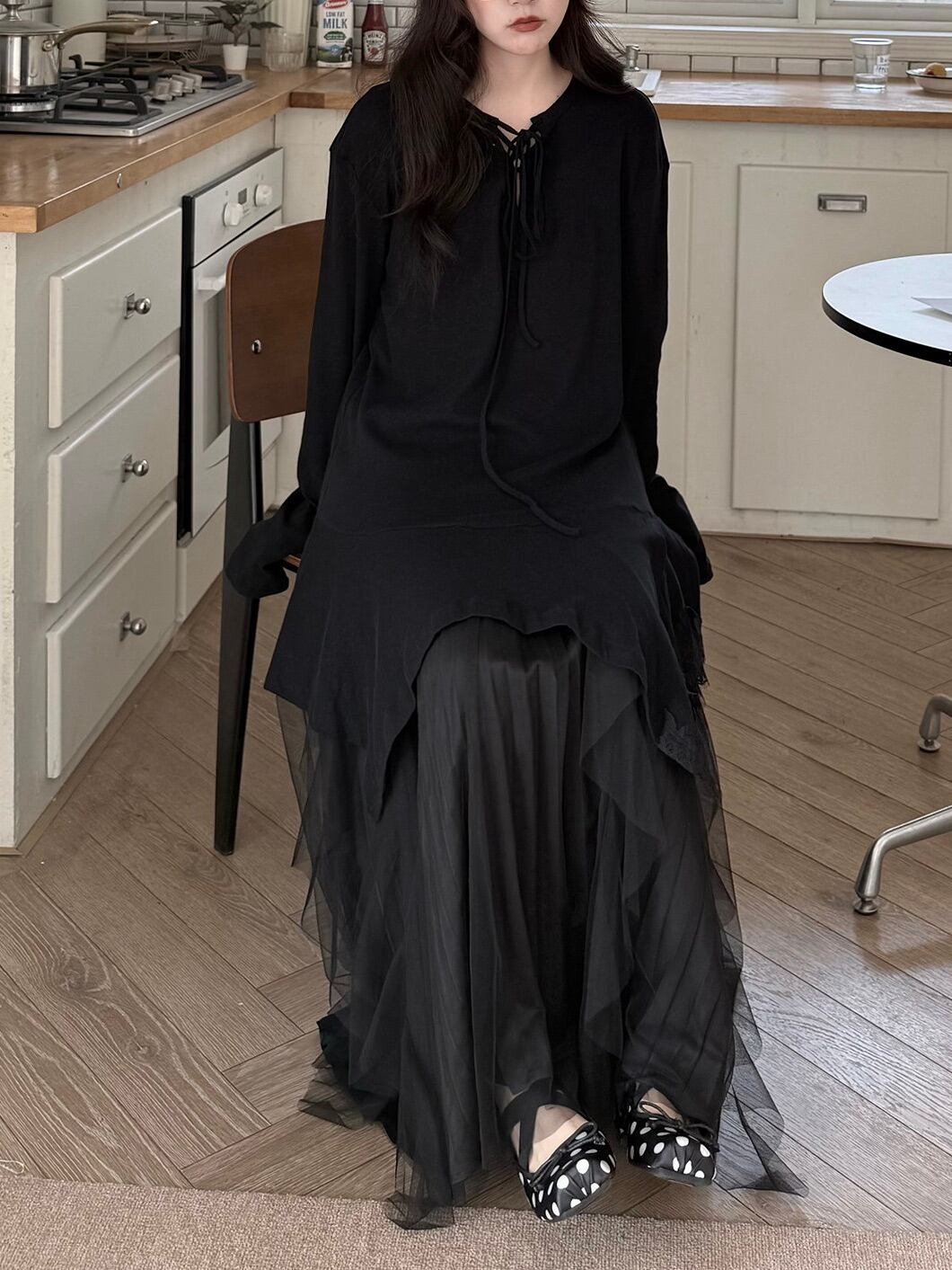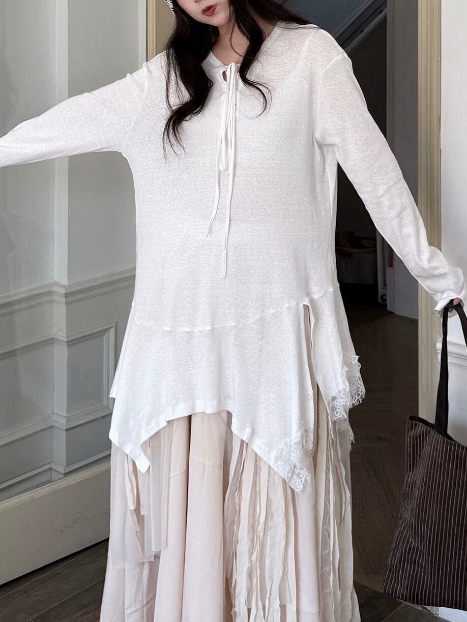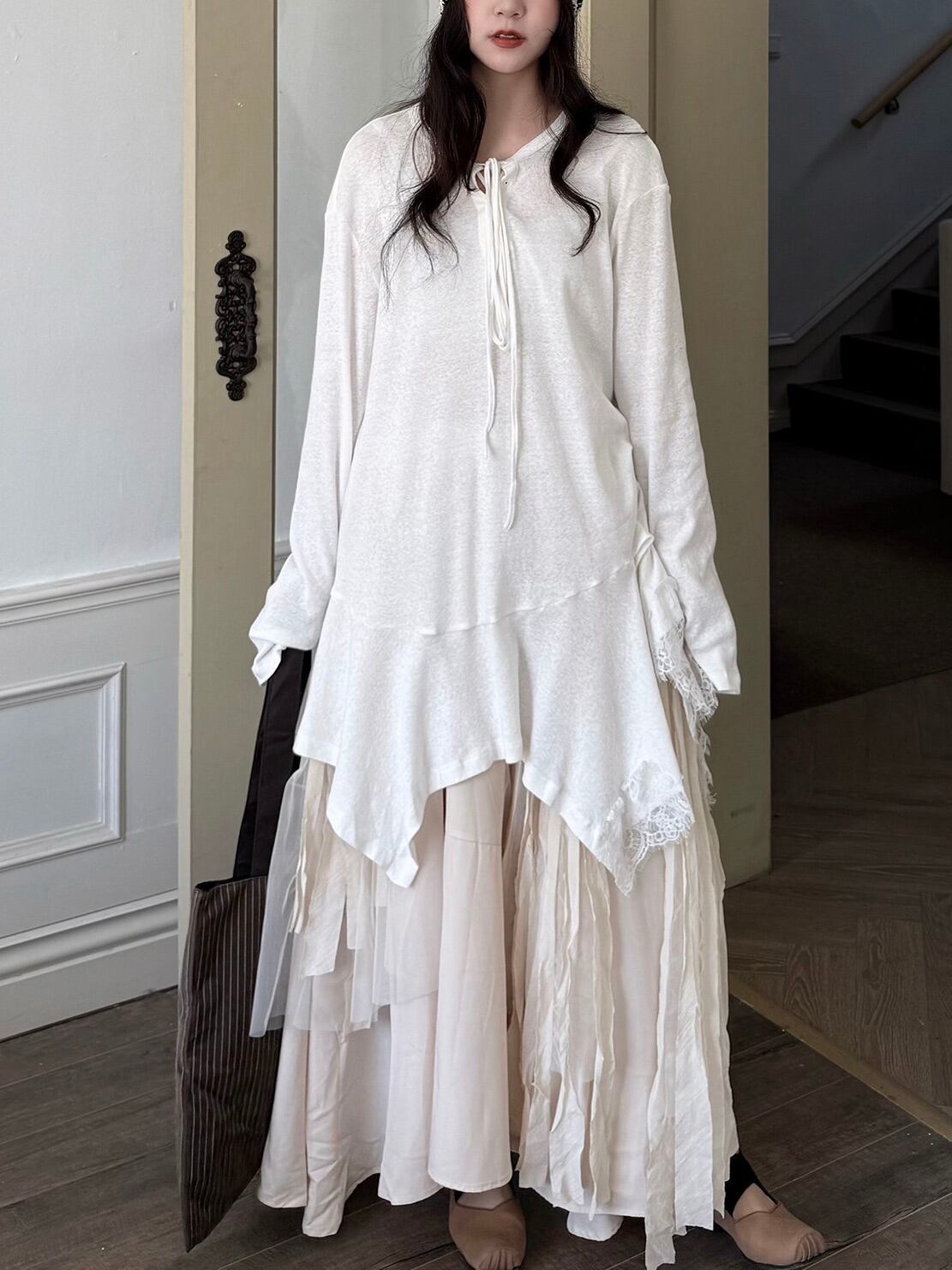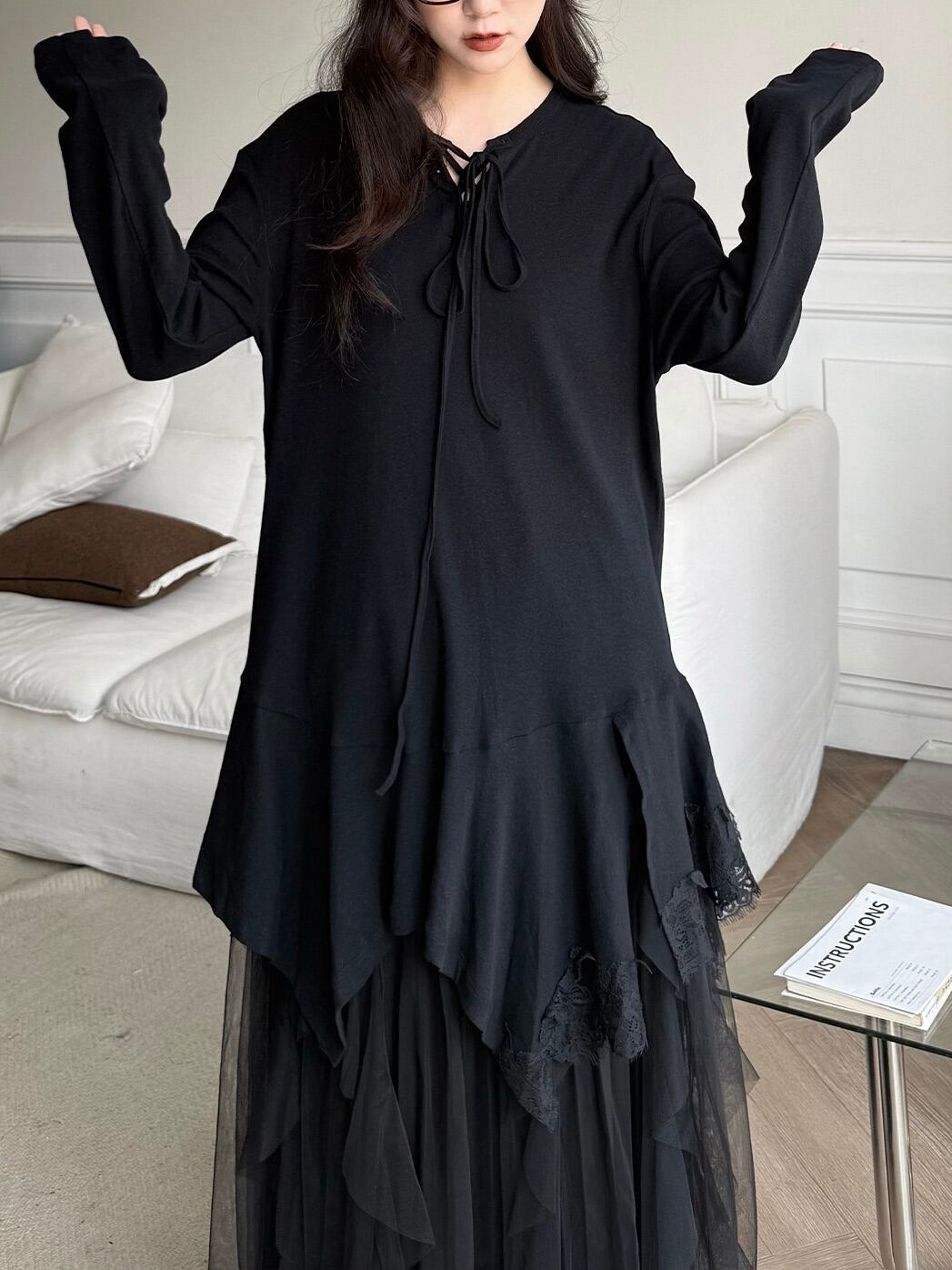 アシンメトリーレイヤードロングスリーブトップ。