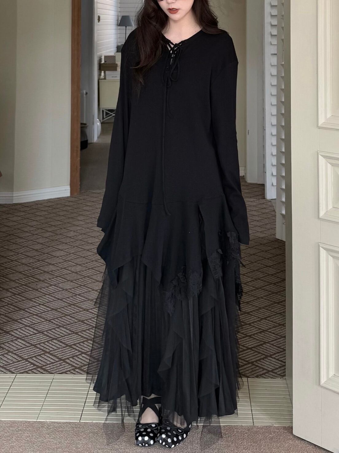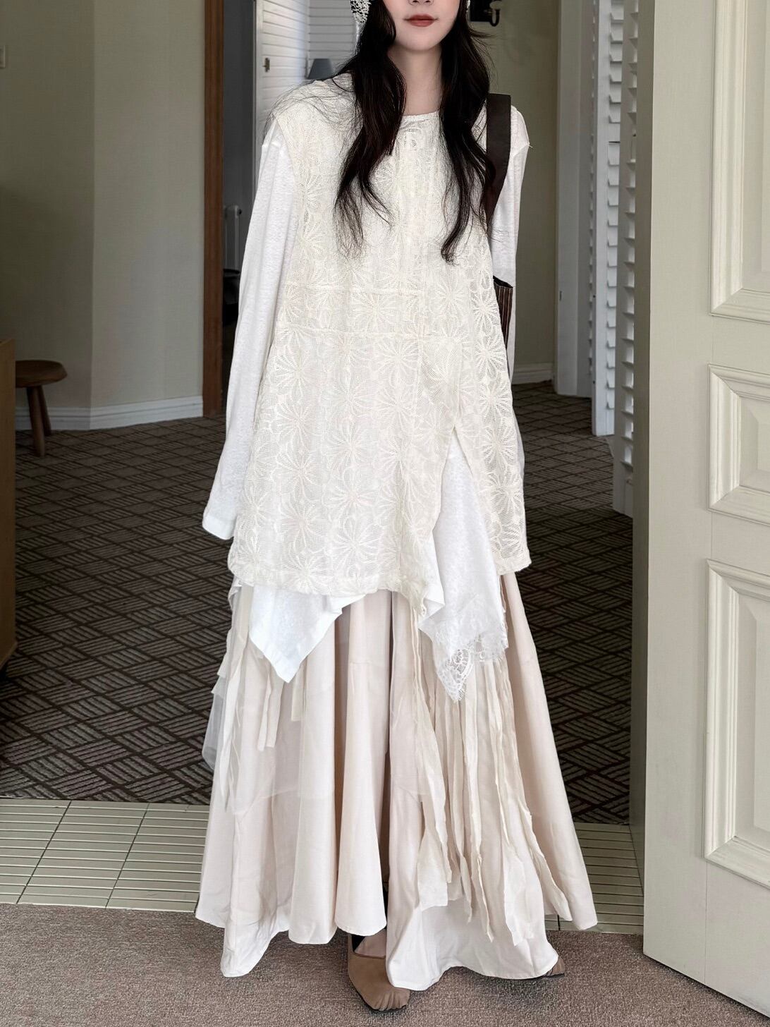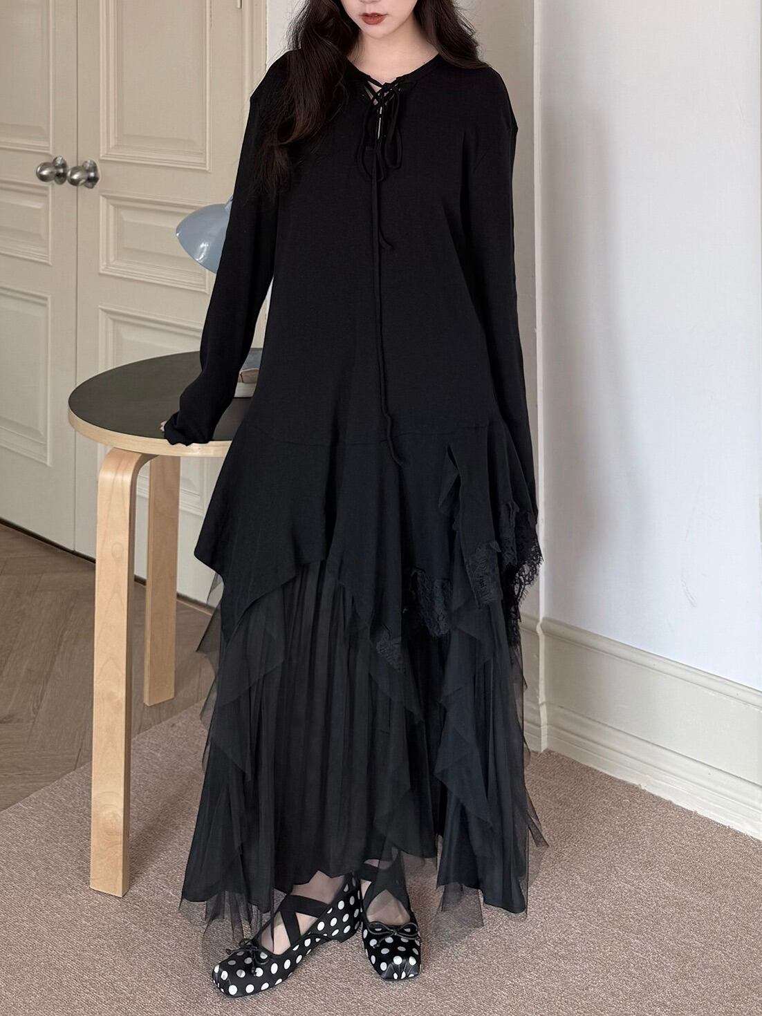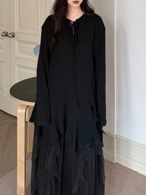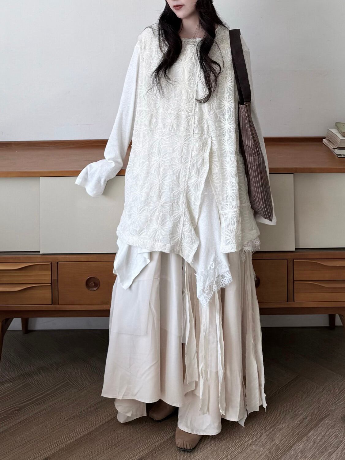 アシンメトリーレイヤードロングスリーブトップ。