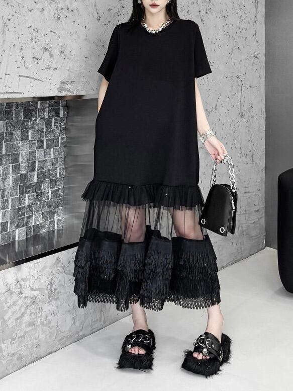 ティアードチュールヘムTシャツミディワンピース。 異素材の重なりが洗練された印象を引き立てる。 さりげない華やぎで大人の余裕を感じさせる。 - Size - M 肩幅:38cm 胸囲:112cm 着丈:125cm 袖丈:21cm ウエスト:112cm L 肩幅:39cm 胸囲:116cm 着丈:126cm 袖丈:22cm ウエスト:116cm XL 肩幅:40cm 胸囲:120cm 着丈:127cm 袖丈:23cm ウエスト:120cm ※1~3cmの誤差がある場合がございます model date 169cm/53kg - Color - ブラック - Material - コットン、メッシュ他 - お届けについて - こちらの商品は海外店舗より直接発送となる為、 ご入金から1~3週間前後で発送致します。 ※商品の状況によっては、3週間以上かかる場合も ございます。 ------------------------------------------------------- - Lilie全商品はこちらから - https://www.lilie.style/ - 人気のアイテムはこちら - https://www.lilie.style/categories/3884141 - ご購入前にこちらをお読みください - https://www.lilie.style/about -------------------------------------------------------
