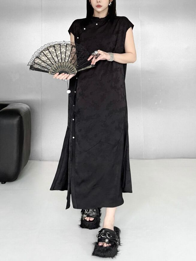ジャカードスタンドカラースリーブレスマキシワンピース。 立体感ある織り柄が気品を際立たせる。 凛とした佇まいで魅力を引き出す。 - Size - M 肩幅:53cm 胸囲:112cm 着丈:125cm 袖口:36cm ウエスト:114cm L 肩幅:54cm 胸囲:116cm 着丈:126cm 袖口:38cm ウエスト:118cm XL 肩幅:55cm 胸囲:120cm 着丈:127cm 袖口:40cm ウエスト:122cm ※1~3cmの誤差がある場合がございます model date 169cm/53kg - Color - ブラック - Material - ジャガードサテン他 - お届けについて - こちらの商品は海外店舗より直接発送となる為、 ご入金から1~3週間前後で発送致します。 ※商品の状況によっては、3週間以上かかる場合も ございます。 ------------------------------------------------------- - Lilie全商品はこちらから - https://www.lilie.style/ - 人気のアイテムはこちら - https://www.lilie.style/categories/3884141 - ご購入前にこちらをお読みください - https://www.lilie.style/about -------------------------------------------------------