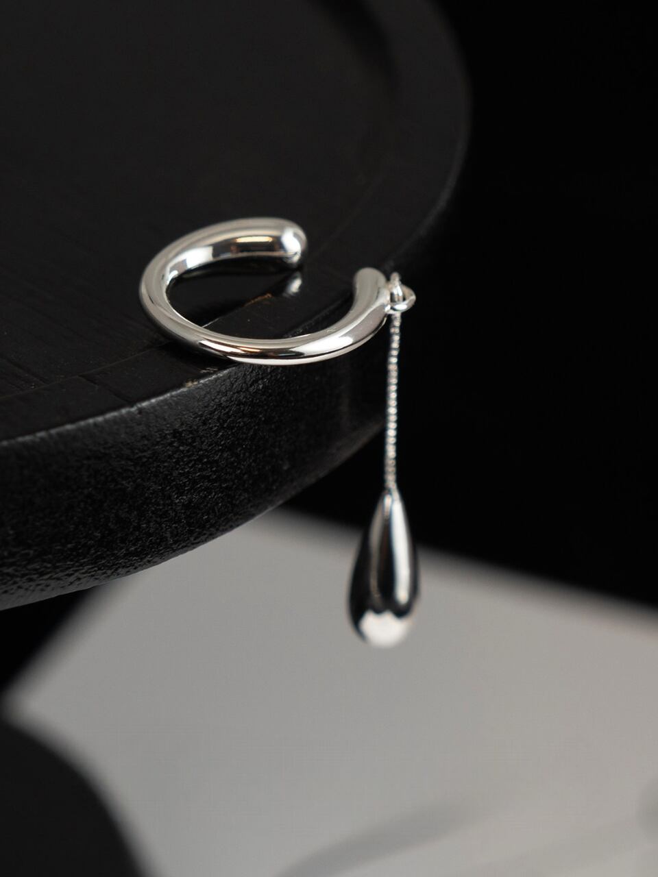 片耳で魅せる軽やかな存在感が印象を引き締める。
