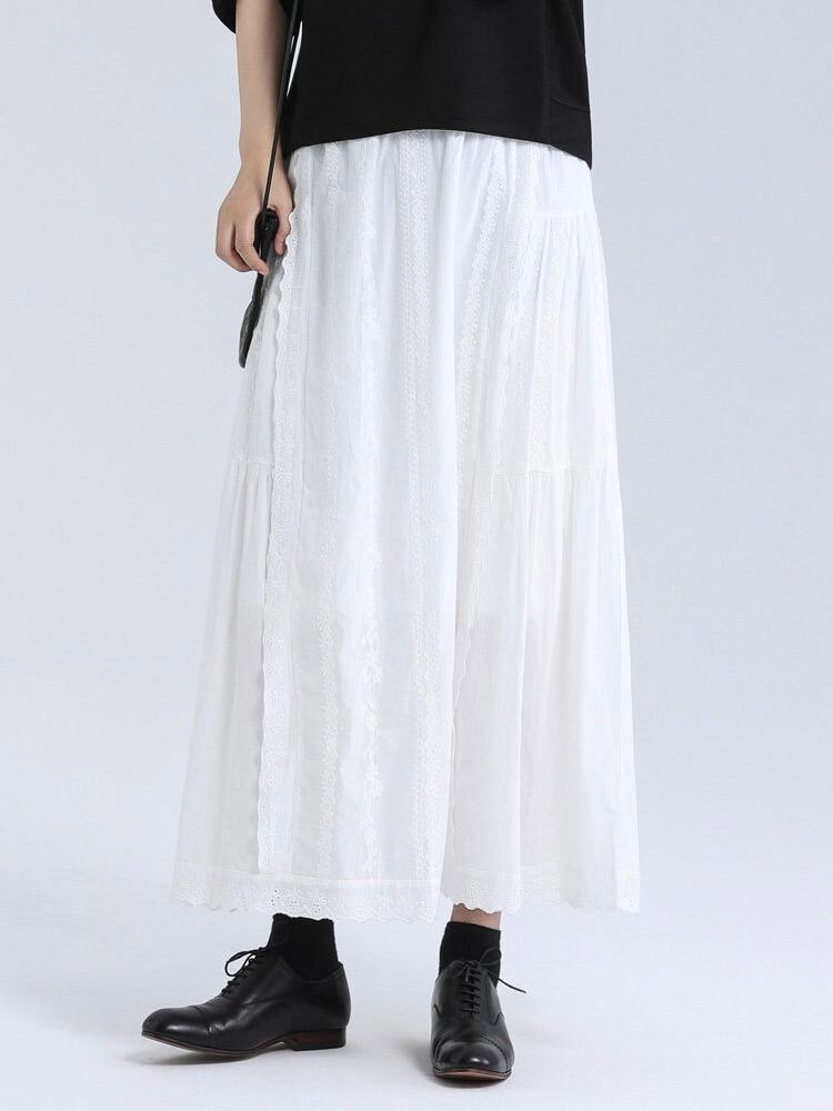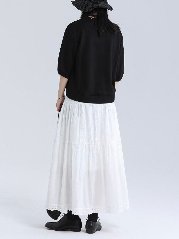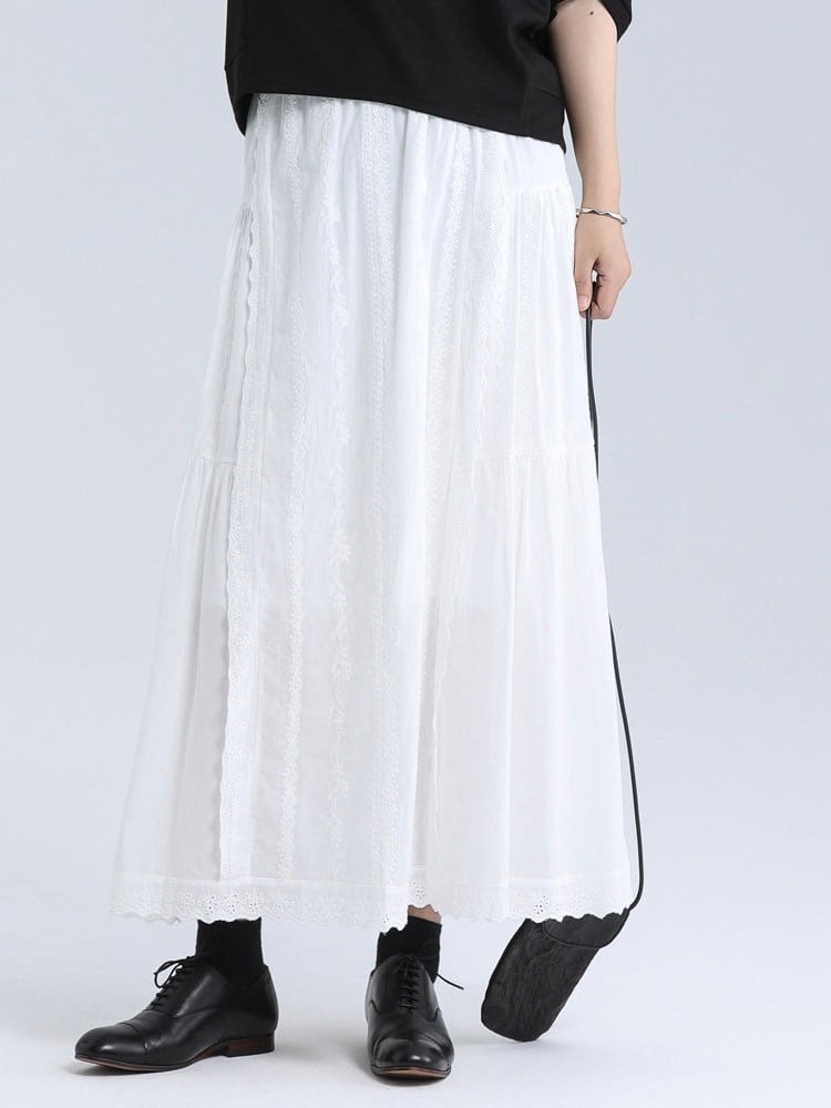 アイレットヘムコットンレースティアードスカート。
