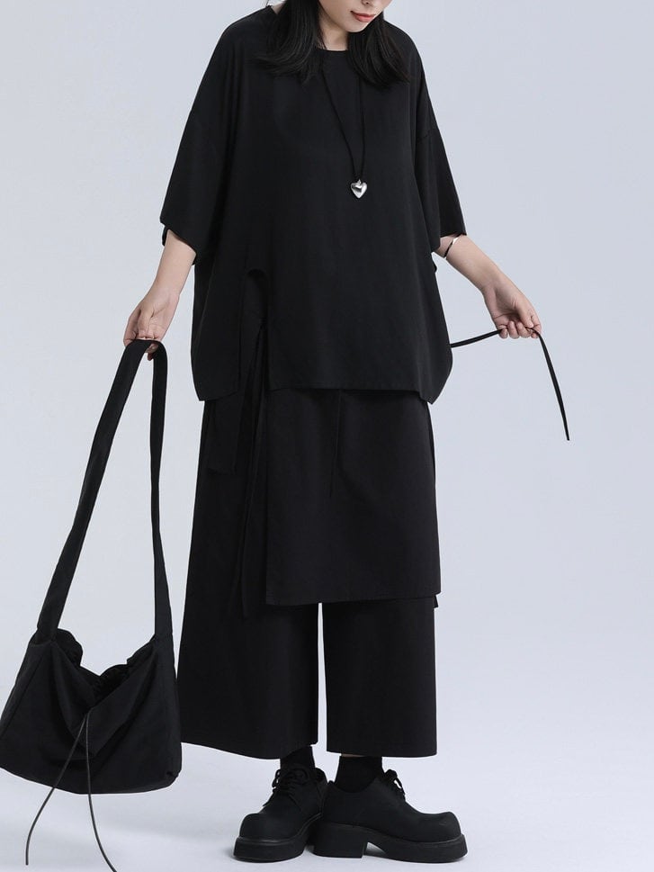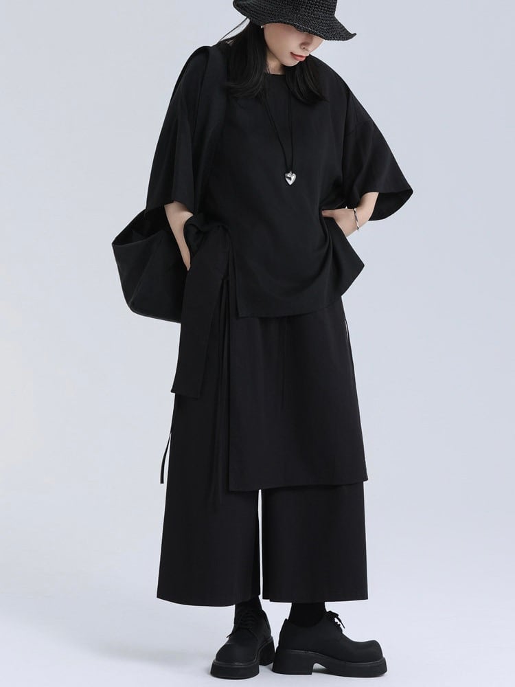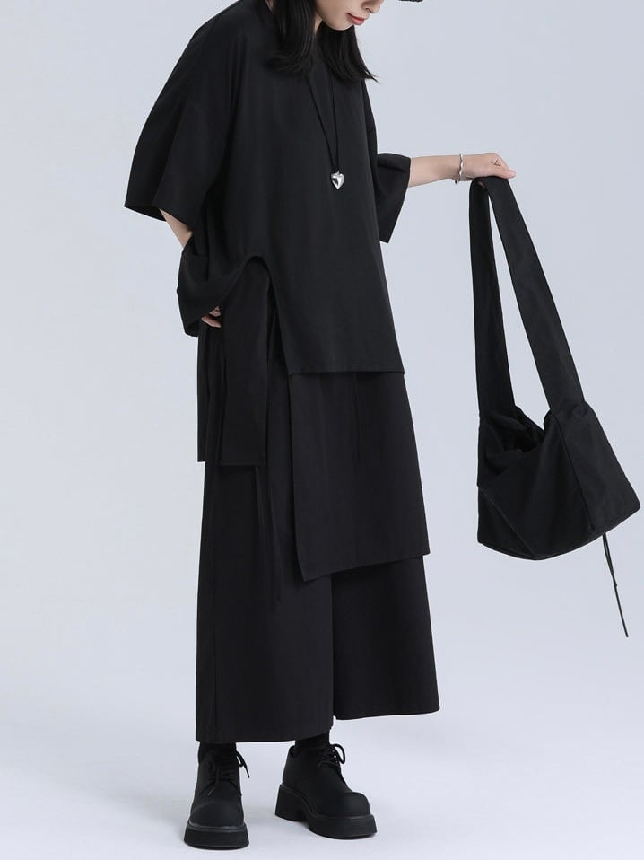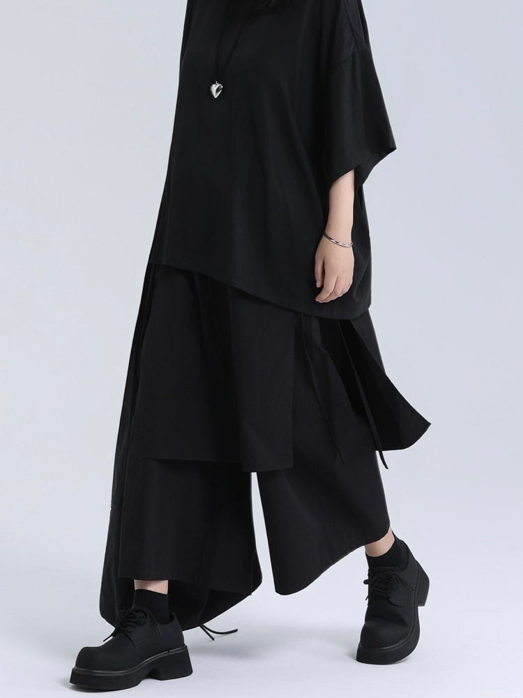 Layered apron wide pants [T2833]