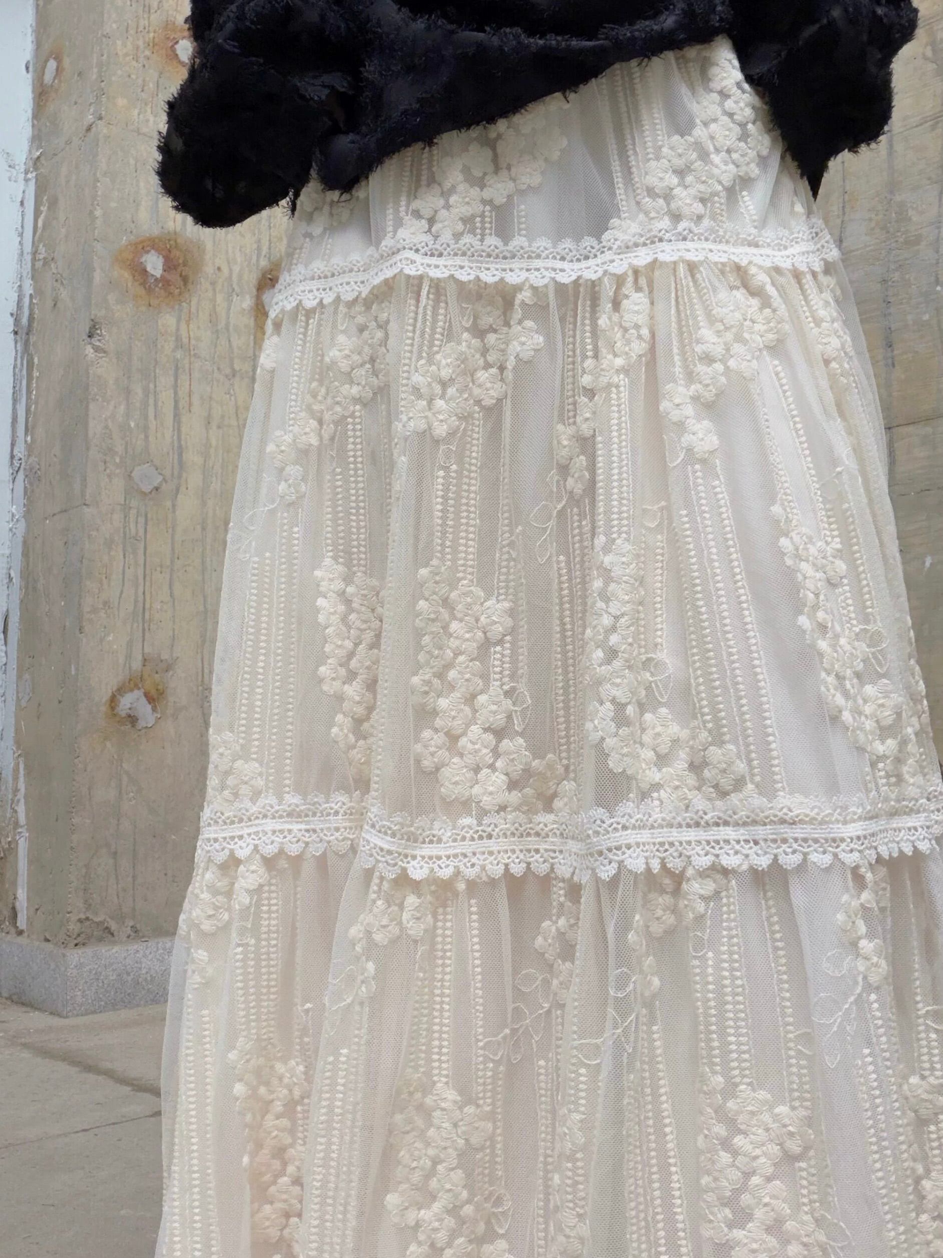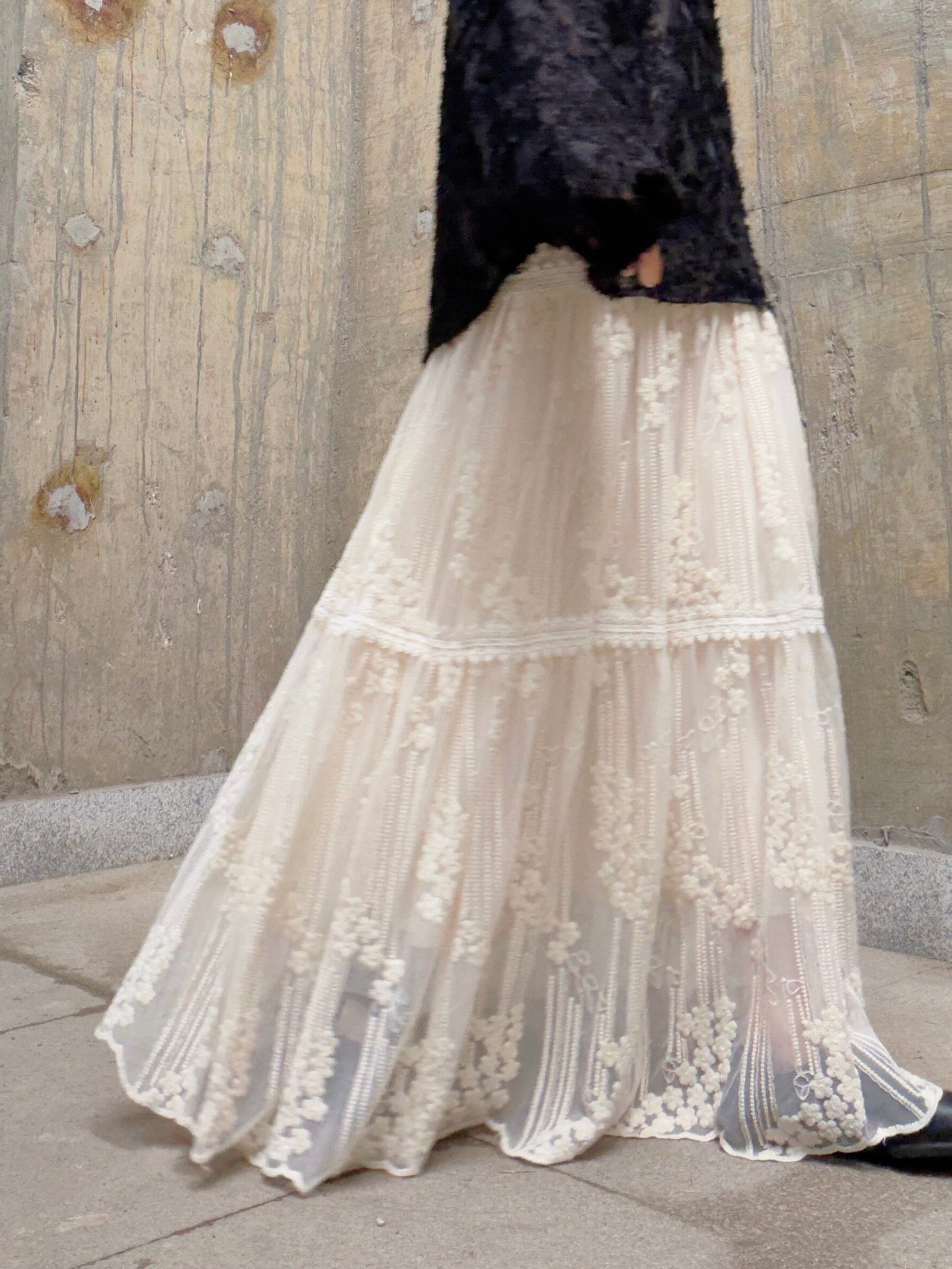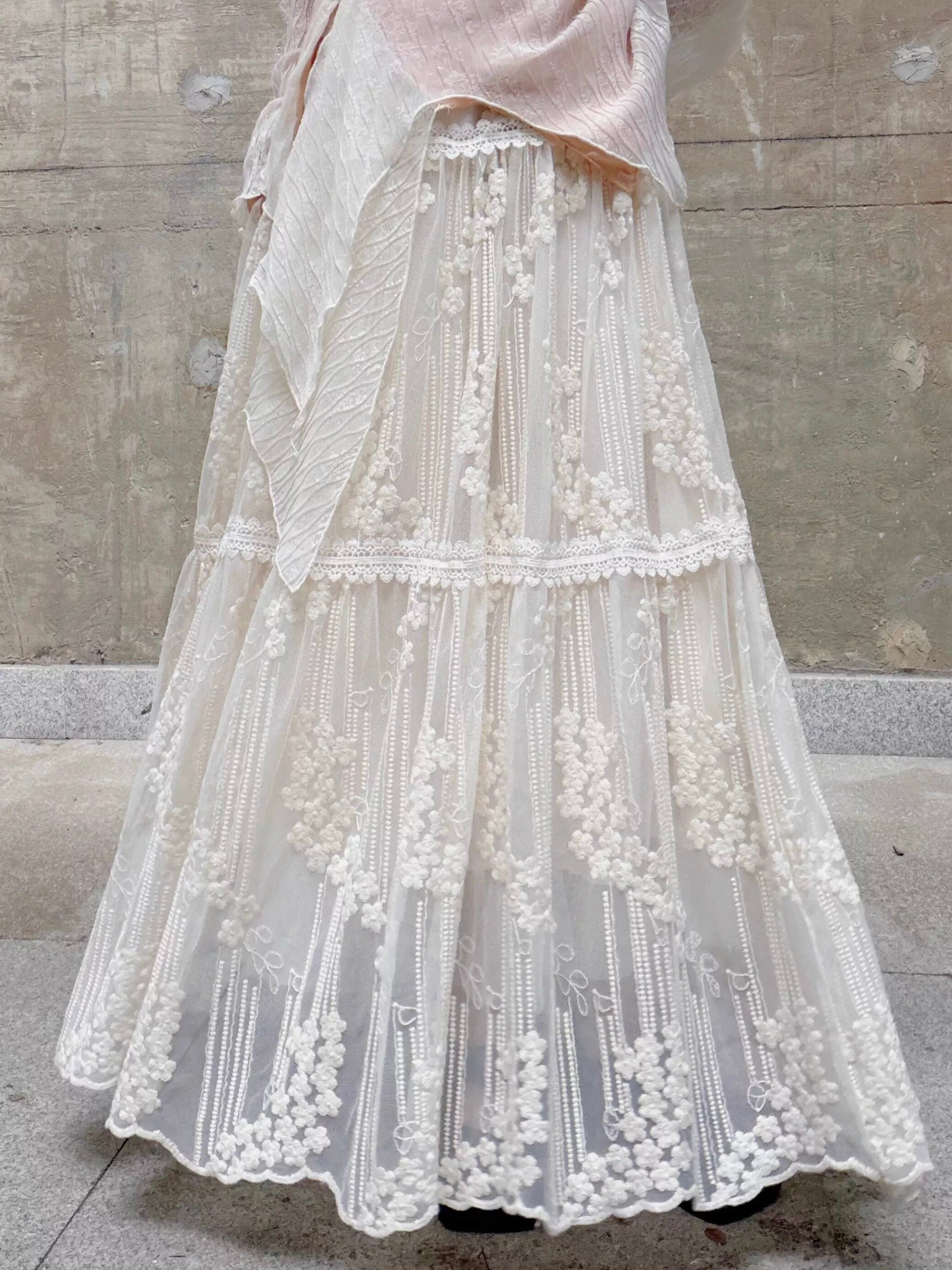 フローラルレースティアードAラインスカート。