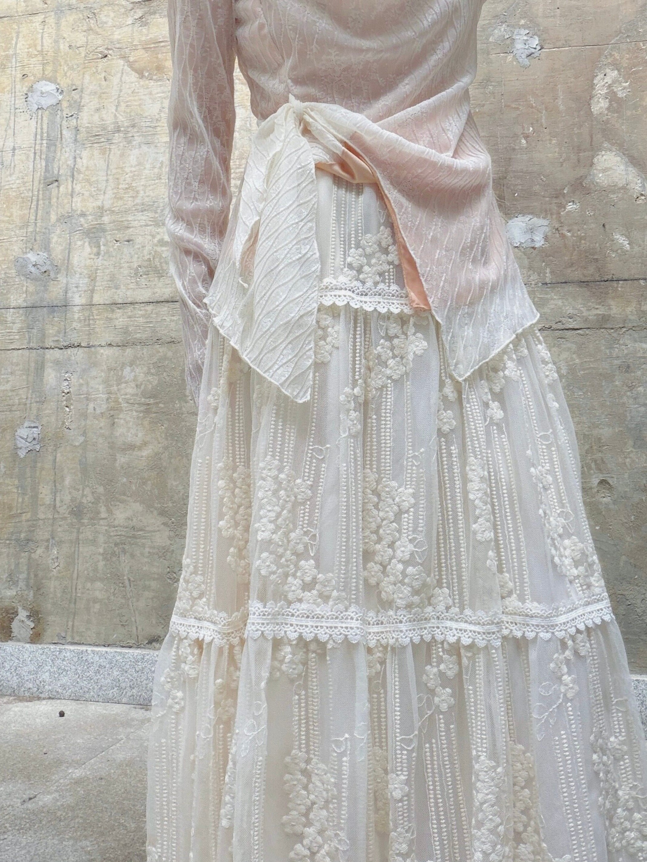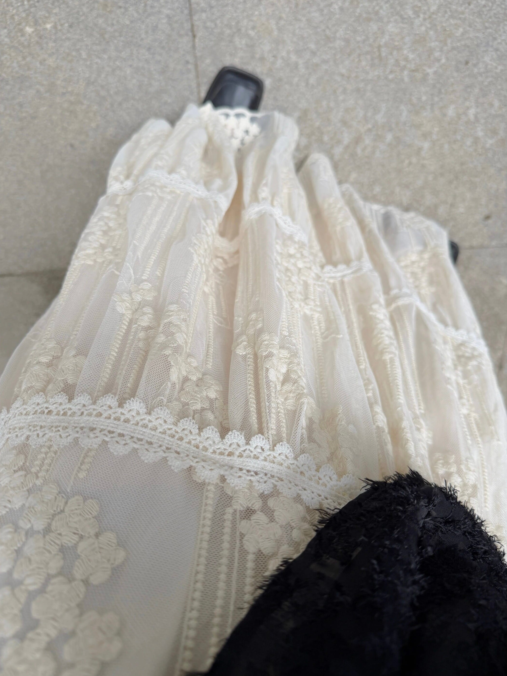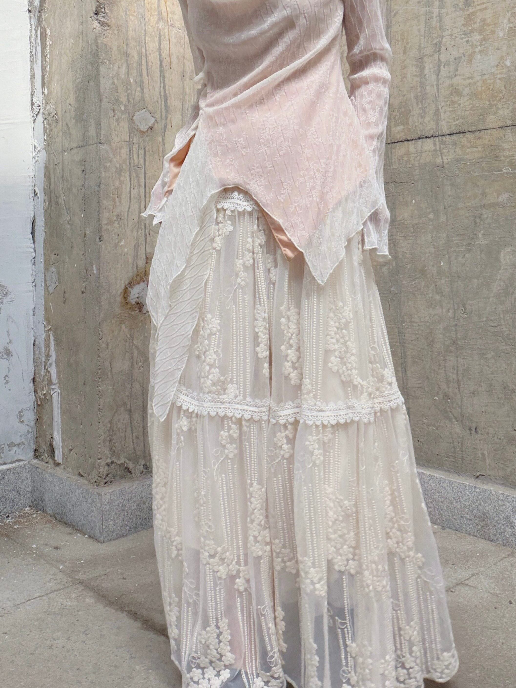 フローラルレースティアードAラインスカート。