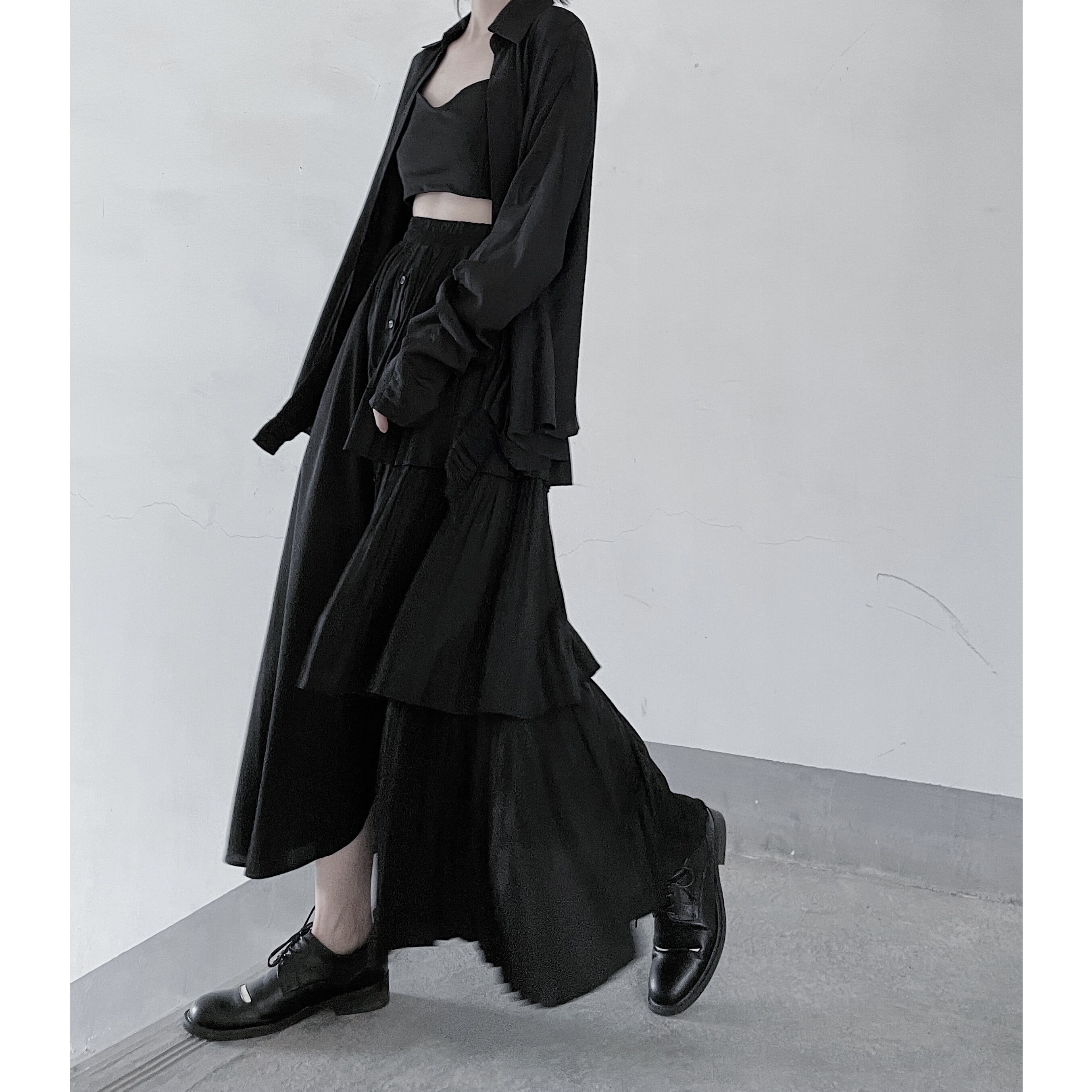 Multilayer frills & silky drape asymmetry skirt [T332]