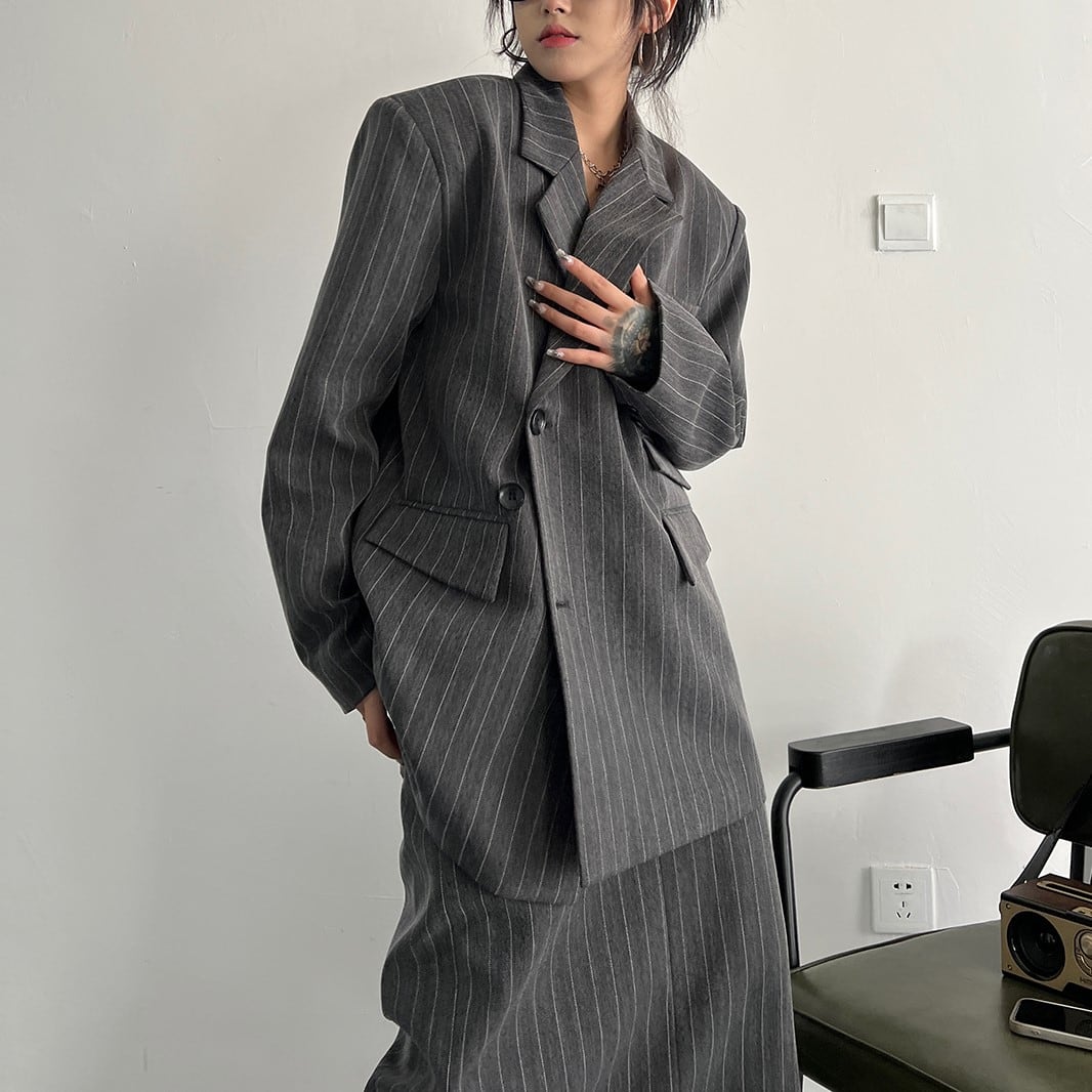 フレンチスタイルのストライプスーツジャケット。 シンプルなストライプのジャケットです。 使いやすいノーカラーでどんな場面でもお使いいただけます。 別売りのスカートと合わせてセットアップスーツとしても◎ - Size - S 肩幅:45cm 胸囲:102cm 着丈:73cm 袖丈:59cm M 肩幅:47cm 胸囲:106cm 着丈:74cm 袖丈:60cm L 肩幅:49cm 胸囲:110cm 着丈:75cm 袖丈:61cm ※1~3cmの誤差がある場合がございます model date 163cm/45kg sサイズ着用 - Color - ダークグレー/ライトグレー - お届けについて - こちらの商品は海外店舗より直接発送となる為、 ご入金から1~3週間前後で発送致します。 ※商品の状況によっては、3週間以上かかる場合も ございます。 ------------------------------------------------------- - Lilie全商品はこちらから - https://www.lilie.style/ - 人気のアイテムはこちら - https://www.lilie.style/categories/3884141 - ご購入前にこちらをお読みください - https://www.lilie.style/about -------------------------------------------------------