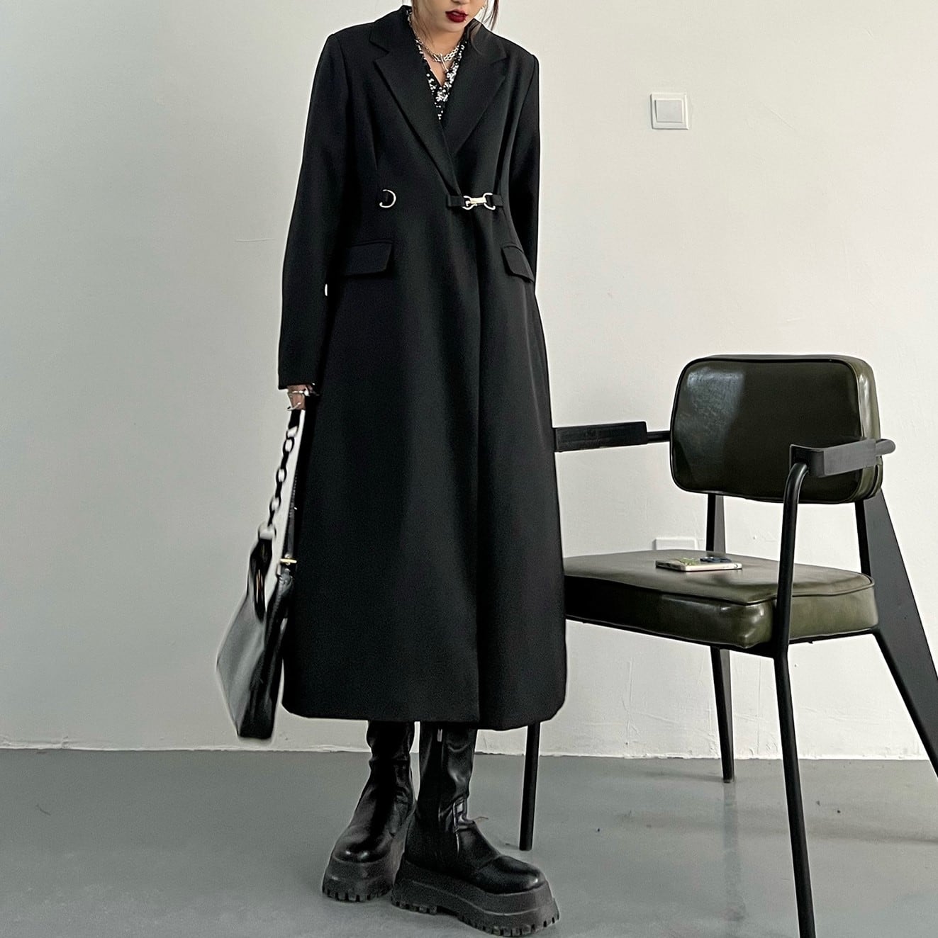 メタルバックルスリムAラインコート。 シンプルなノーカラーのロングコートです。 ウエストベルトのメタルバックルが個性的でオシャレ。 1枚羽織るだけでモードスタイルが完成します。 - Size - S 肩幅:38cm 胸囲:94cm 着丈:110cm 袖丈:60cm M 肩幅:40cm 胸囲:98cm 着丈:111cm 袖丈:61cm L 肩幅:42cm 胸囲:102cm 着丈:112cm 袖丈:62cm ※1~3cmの誤差がある場合がございます model date 163cm/45kg - Color - ブラック - お届けについて - こちらの商品は海外店舗より直接発送となる為、 ご入金から1~3週間前後で発送致します。 ※商品の状況によっては、3週間以上かかる場合も ございます。 ------------------------------------------------------- - Lilie全商品はこちらから - https://www.lilie.style/ - 人気のアイテムはこちら - https://www.lilie.style/categories/3884141 - ご購入前にこちらをお読みください - https://www.lilie.style/about -------------------------------------------------------
