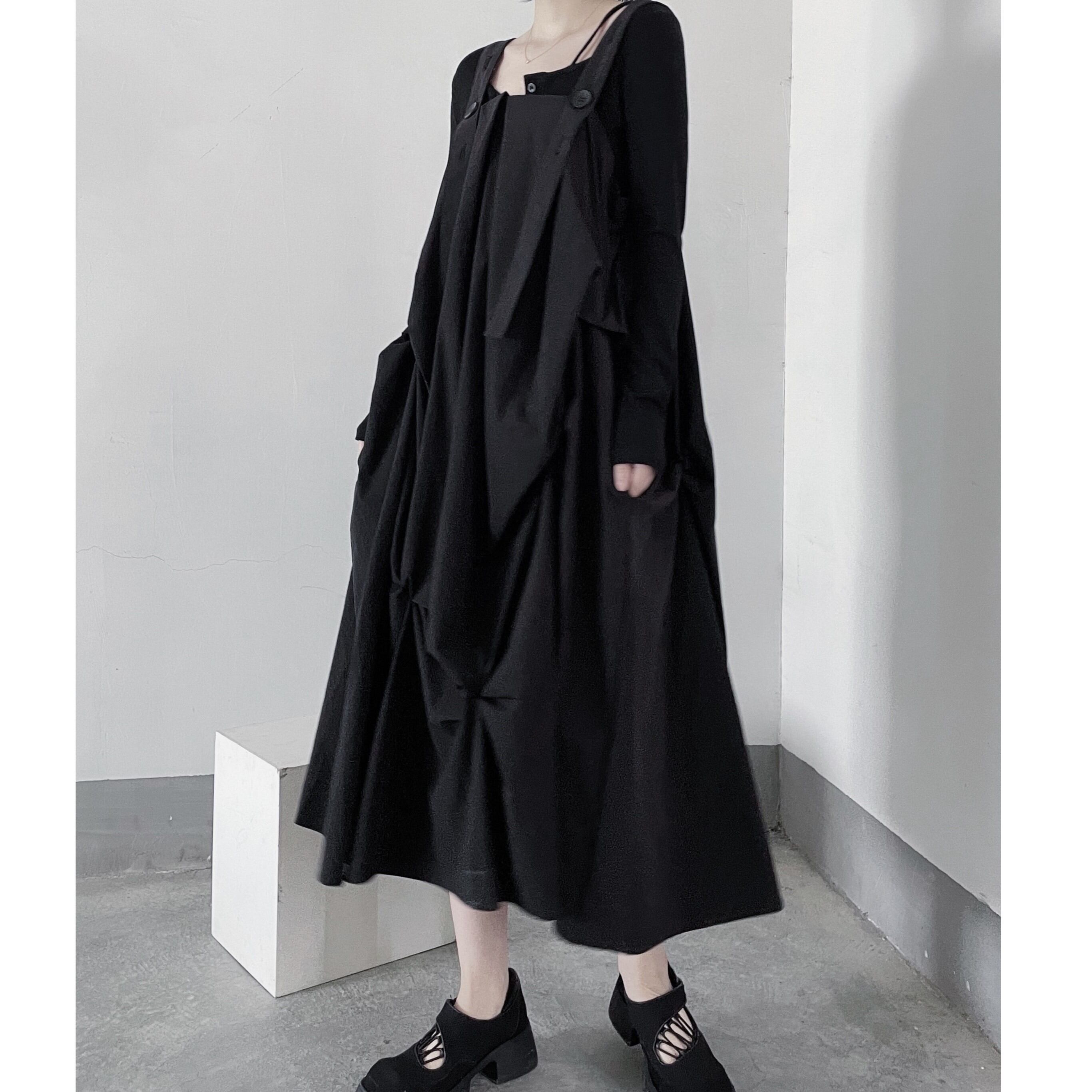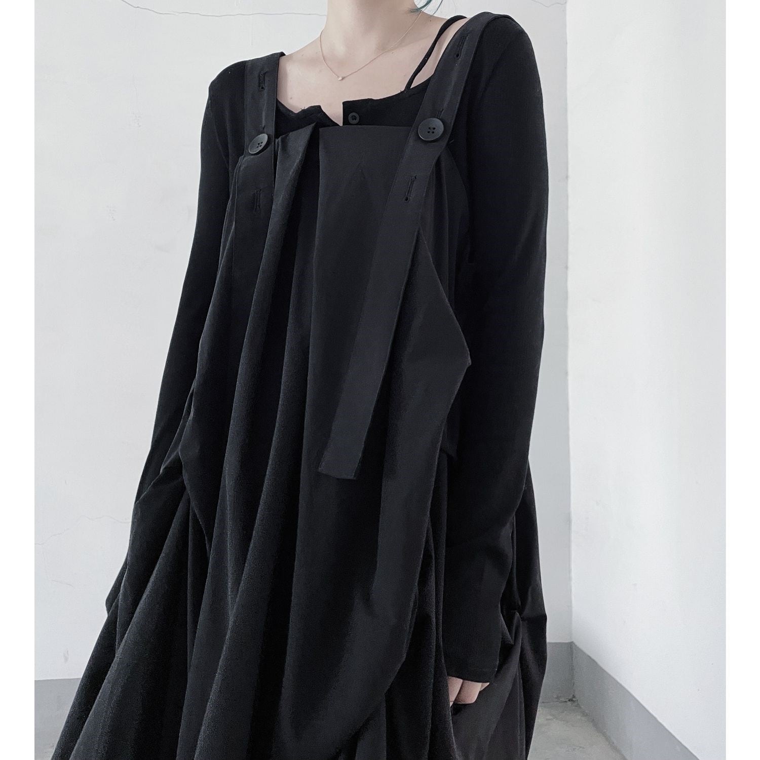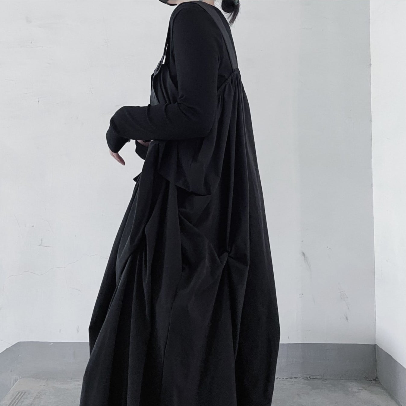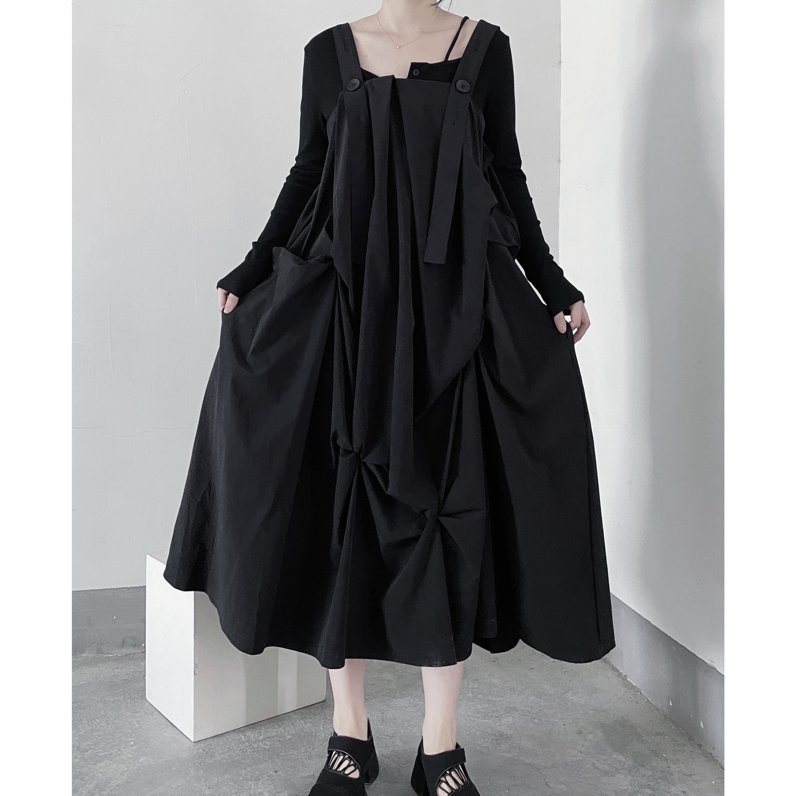 イレギュラーなピンチデザインが目を引くジャンパードレスです。