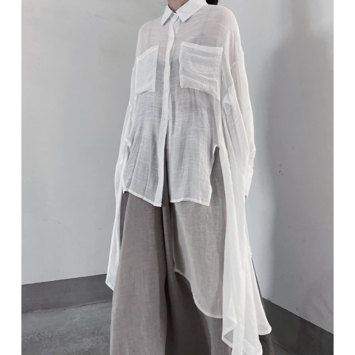アーティスティックレトロスタイルイレギュラーレイヤードリネンスカート。