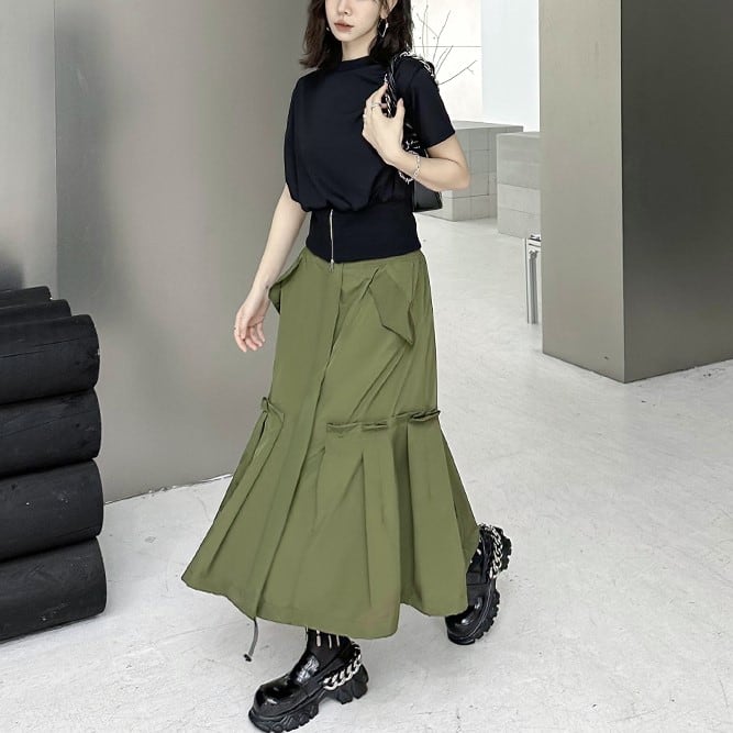 Three-dimensional pocket design A-line skirt 2color [T892]