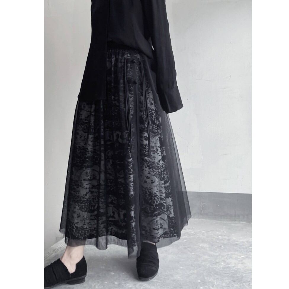 Art pattern layer tulle slit skirt [T925]
