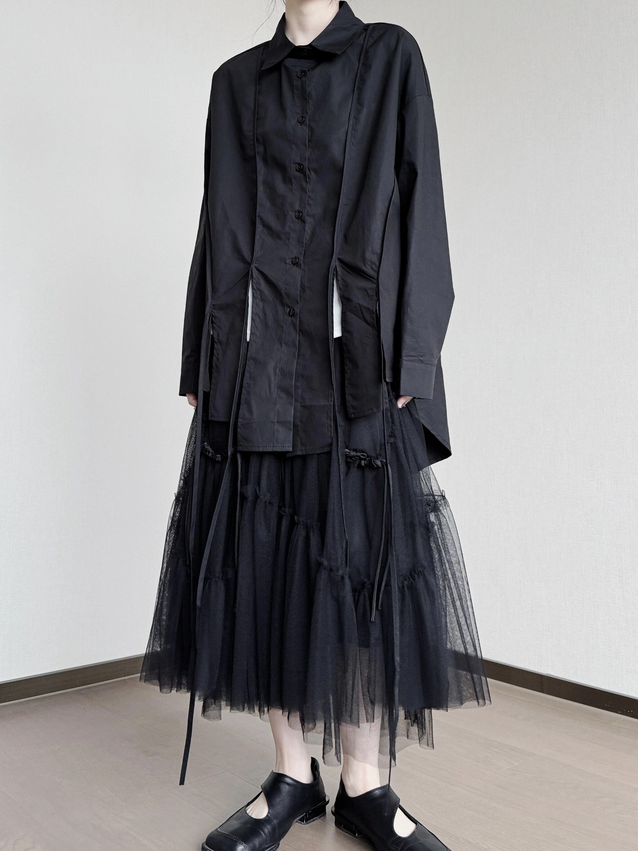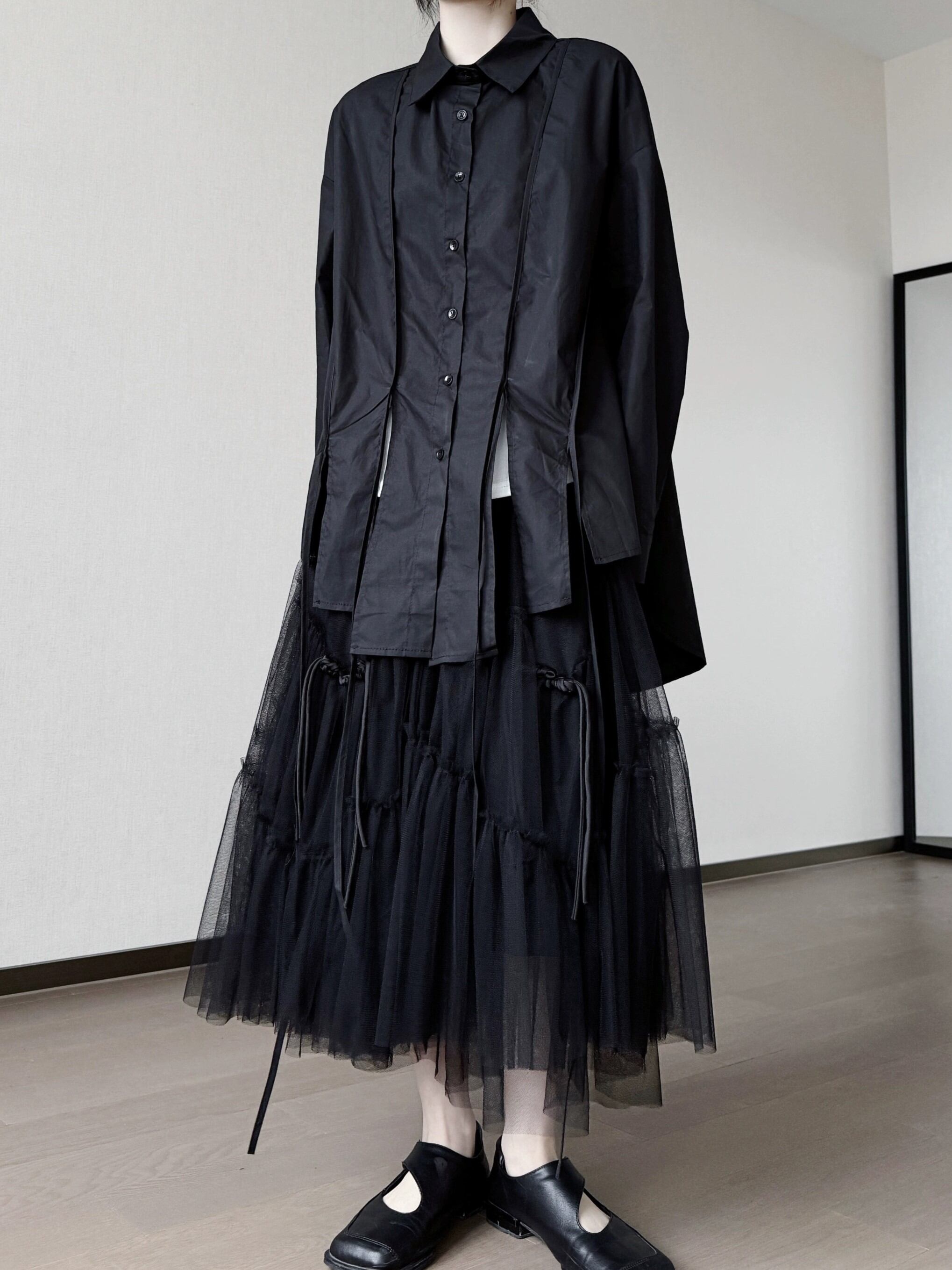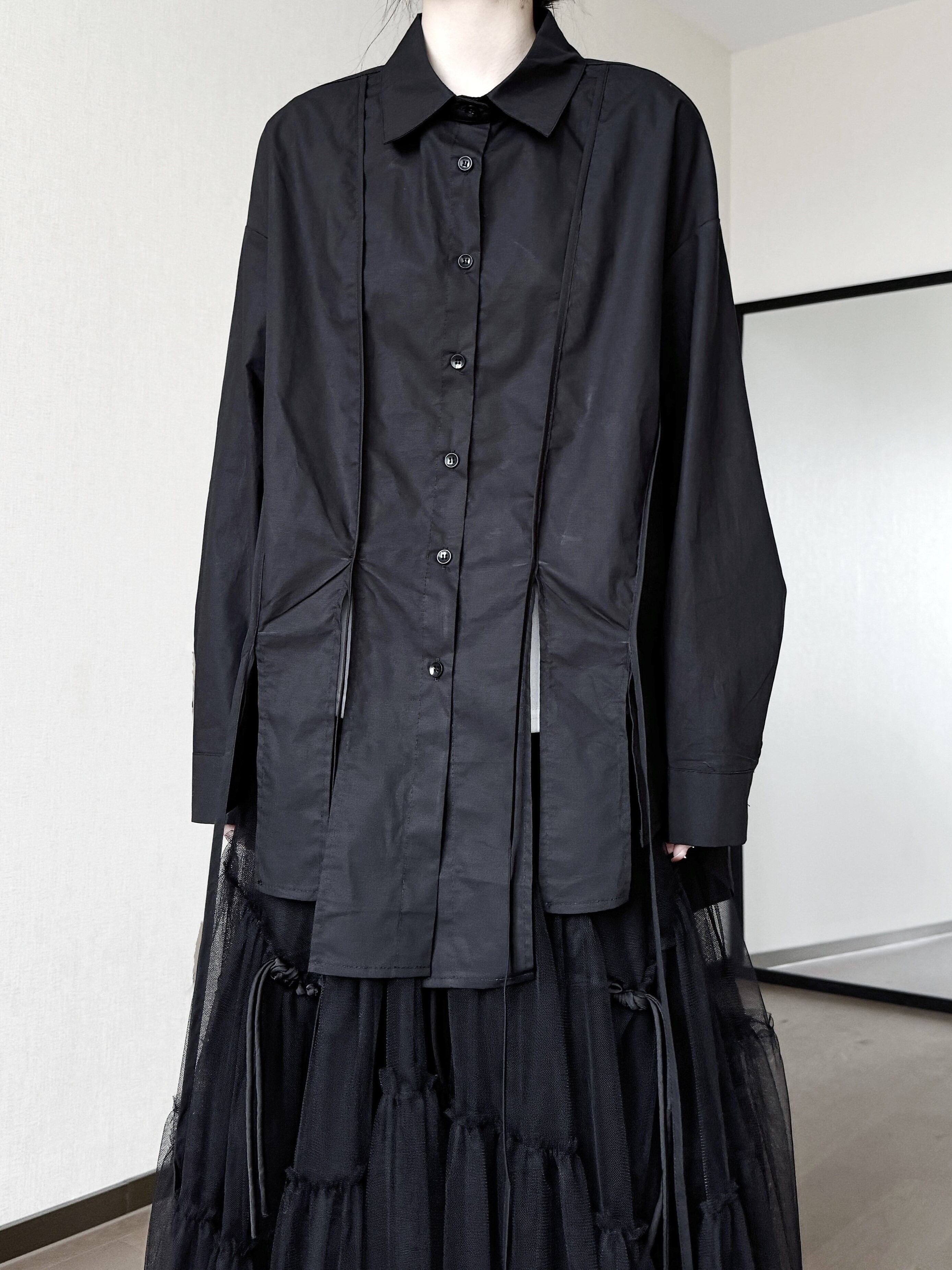 ヘムのスリットが特徴のモードな雰囲気たっぷりのシャツ。
