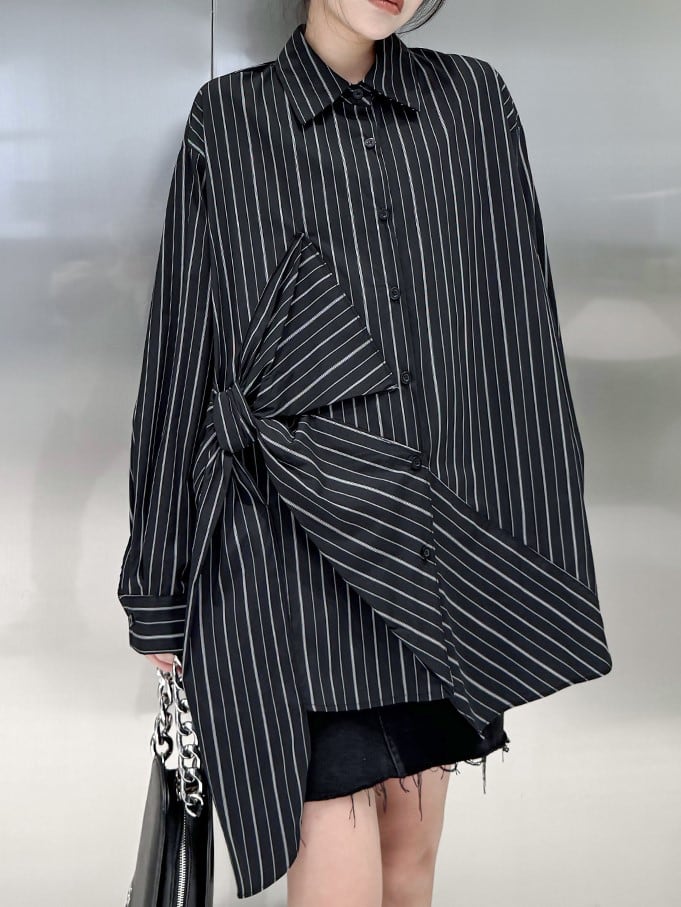 Side ribbon stripe long long sleeve loose shirt [T1534]