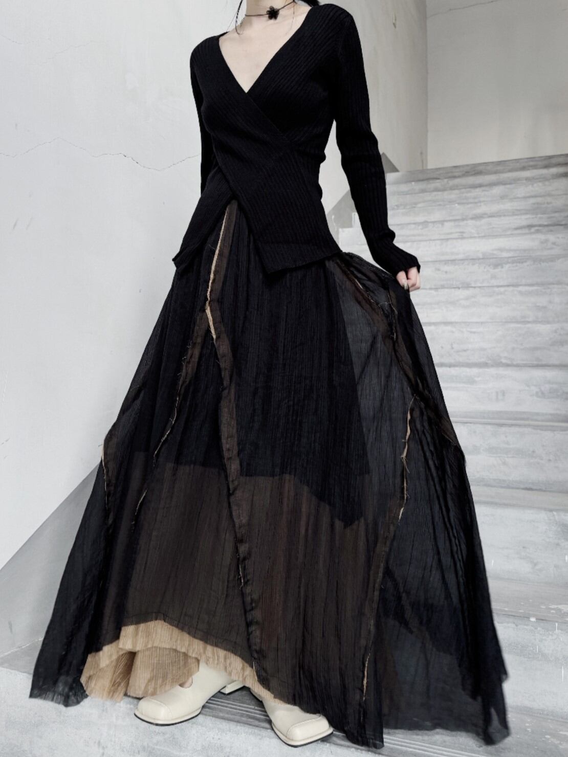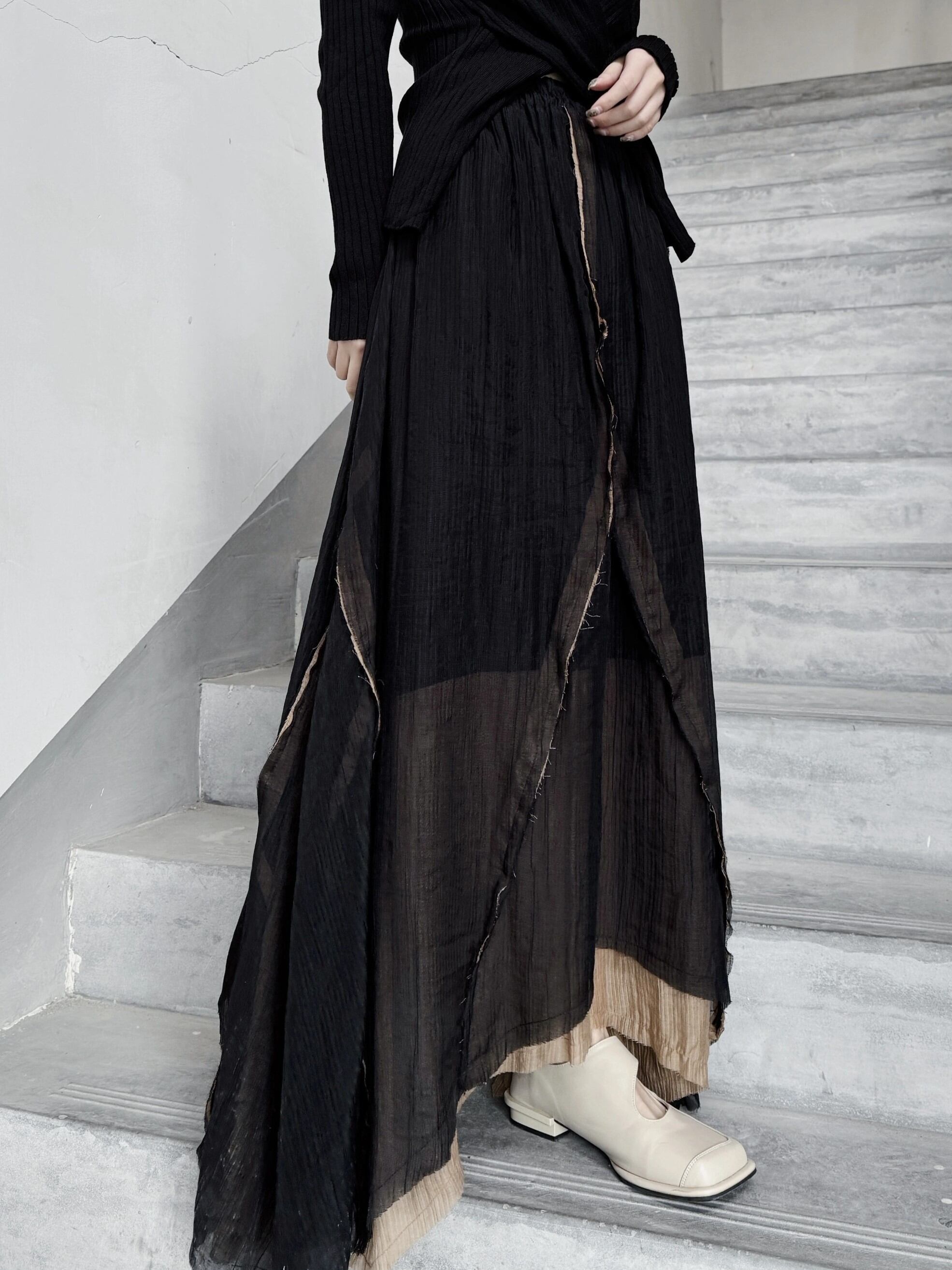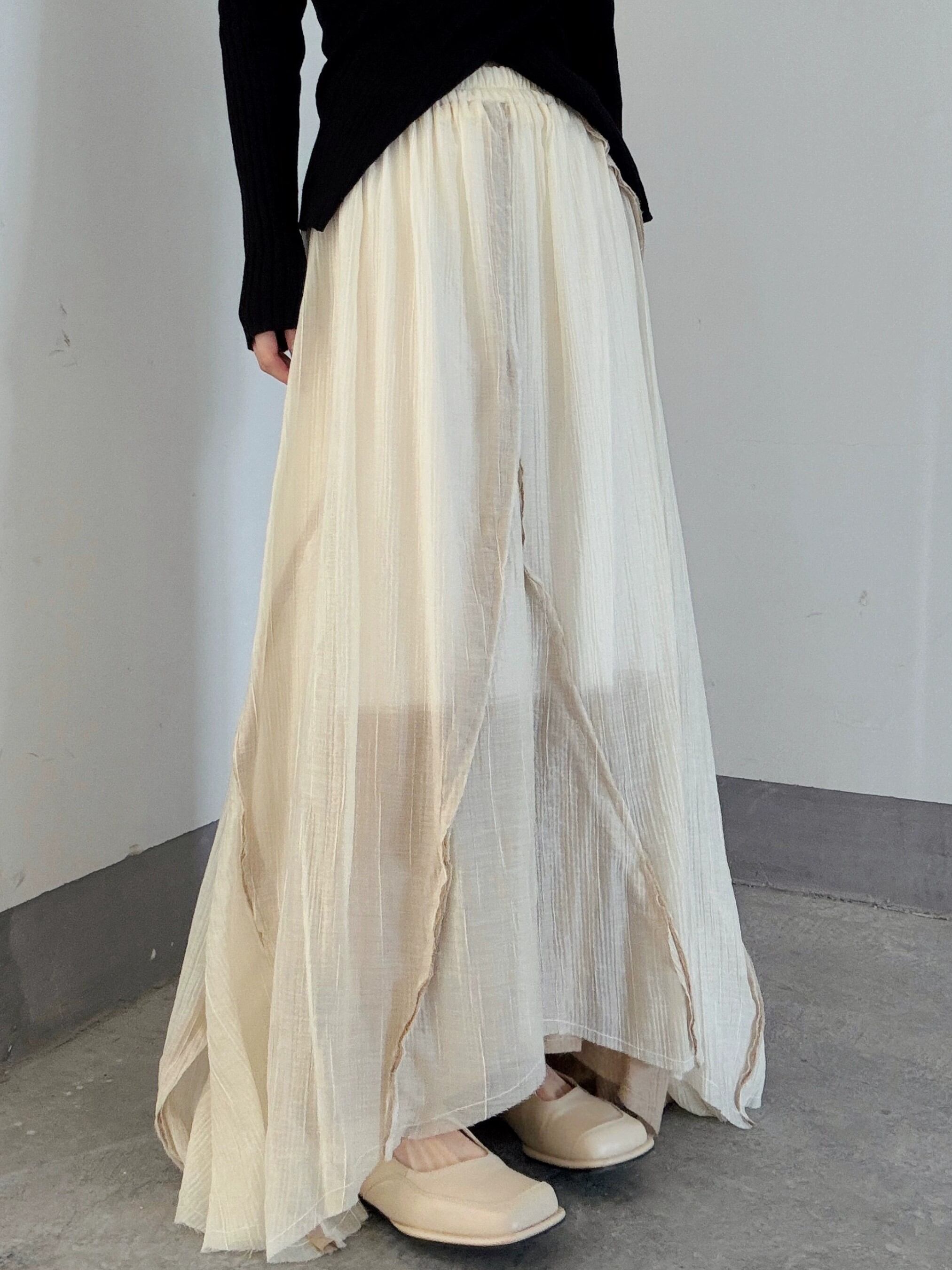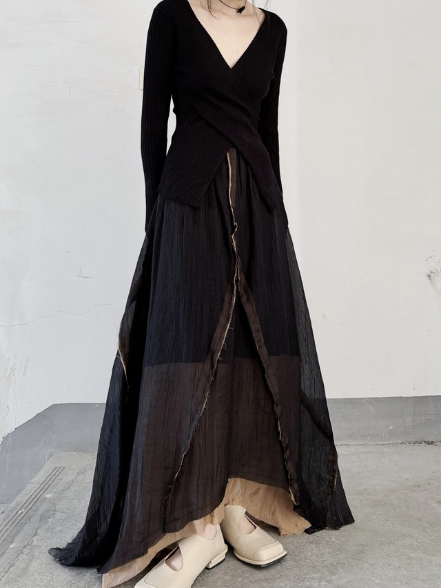 イレギュラー切り替えマキシスカート。