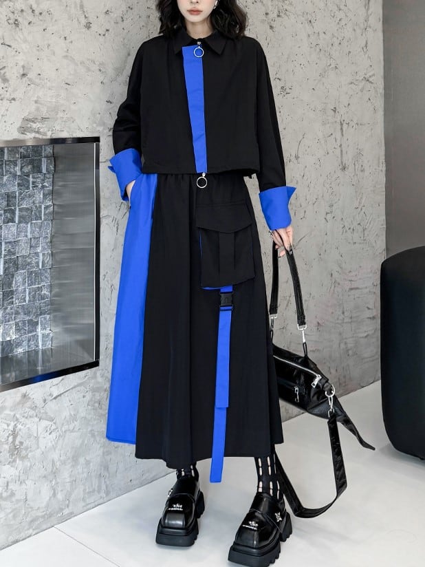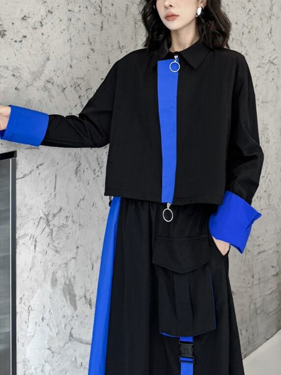 Contrast color short jacket & skirt setup [T1771]