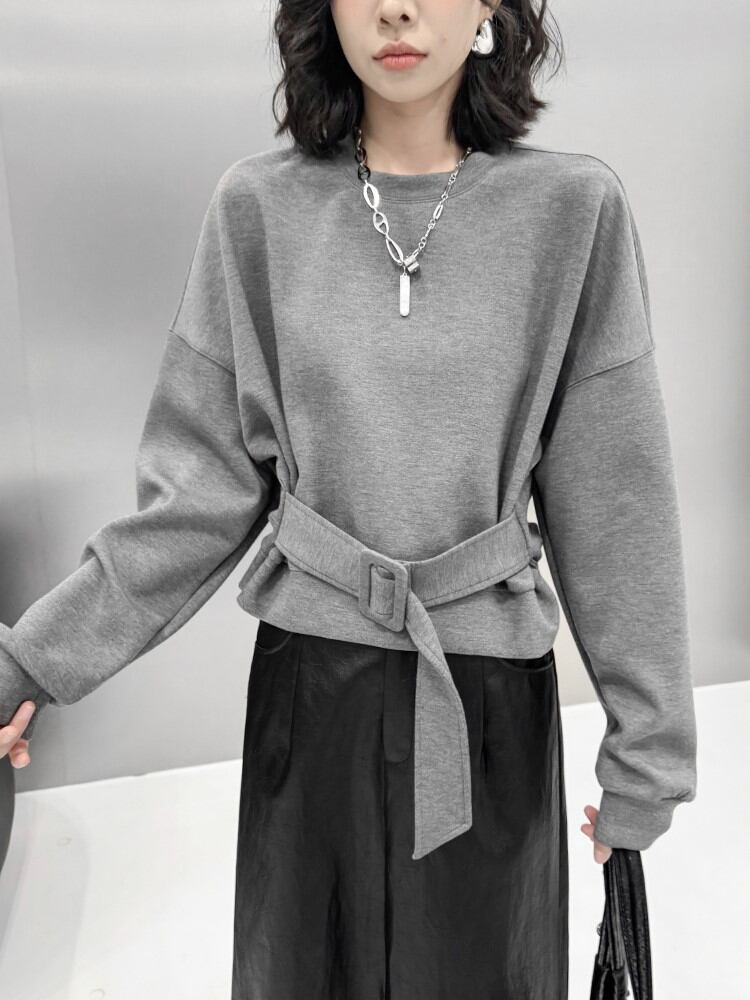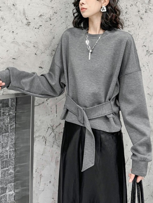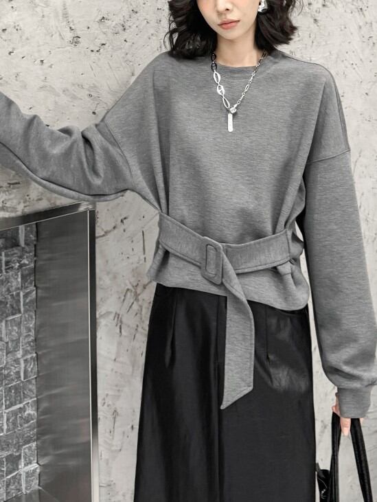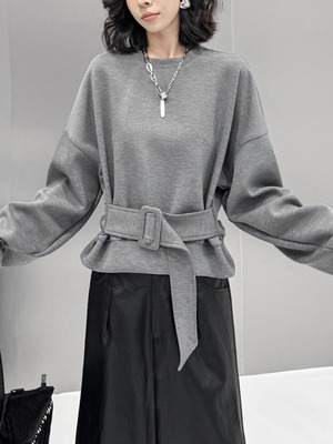 Waist belt drop shoulder sweat tops 2color [T1893]