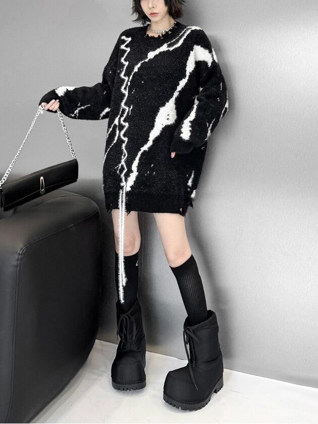 ホワイトラインダメージルーズニット。